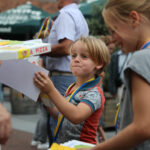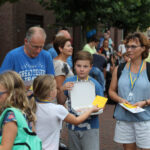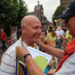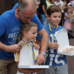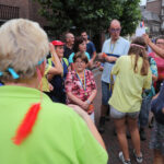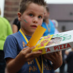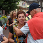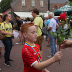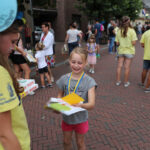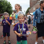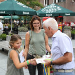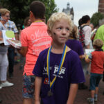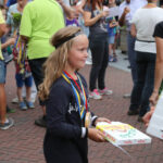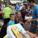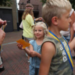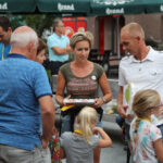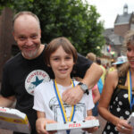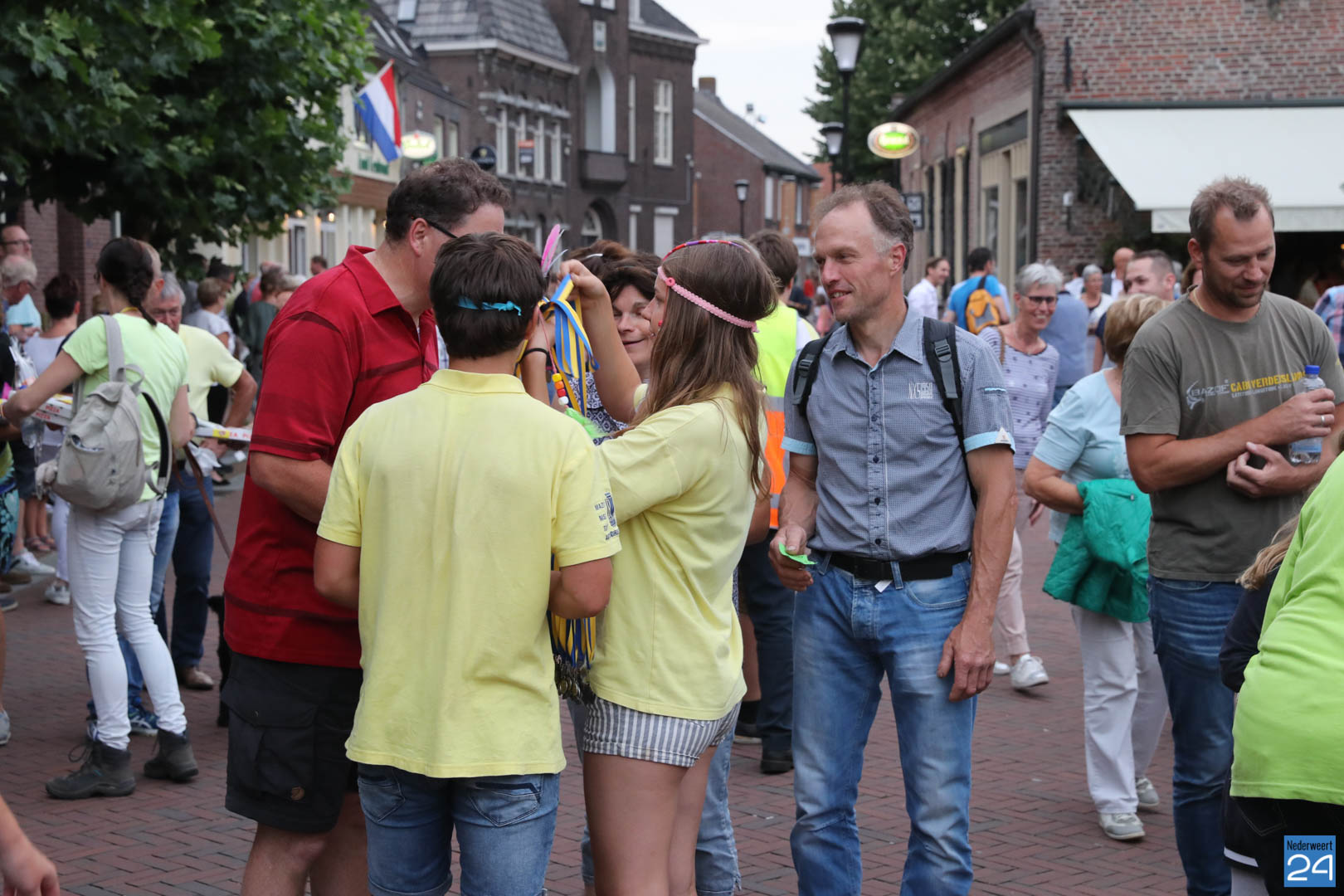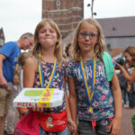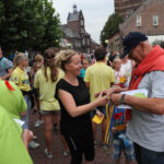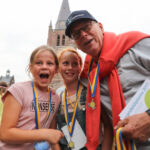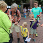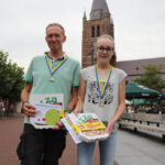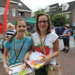 Vanavond is de Wandelvierdaagse Nederweert nieuwe stijl onthaald op het Lambertushof in Nederweert. Om 19:15 uur kwamen de eerste twee deelnemers, Tessa en Harry Frankhuizen binnen. Ze hadden elke dag de 7 kilometer gelopen en waren net als gisteren als eerste binnen. Ze werden, net als alle andere deelnemers, vrolijk onthaald door wethouder Henk Geraats. Daarna volgenden alle 650 deelnemers. Ze kregen na de bloemen van familie en vrienden, allen een eremedaille, een wandeldiploma én een snoep-pizza.