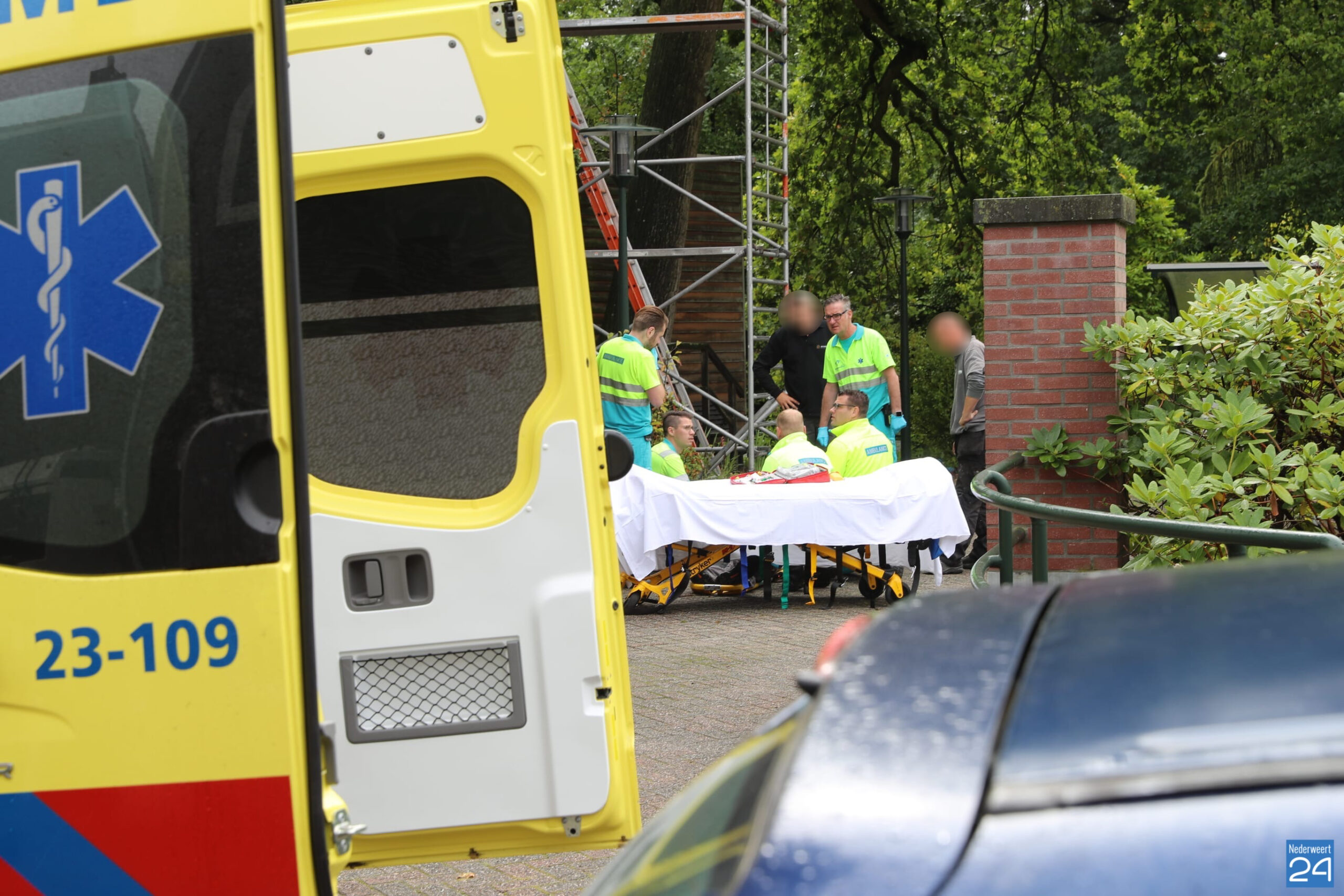 Donderdagmorgen is een man van een steiger gevallen bij het Franciscus Hospice in Weert. Het ongeval gebeurde rond kwart voor 11.