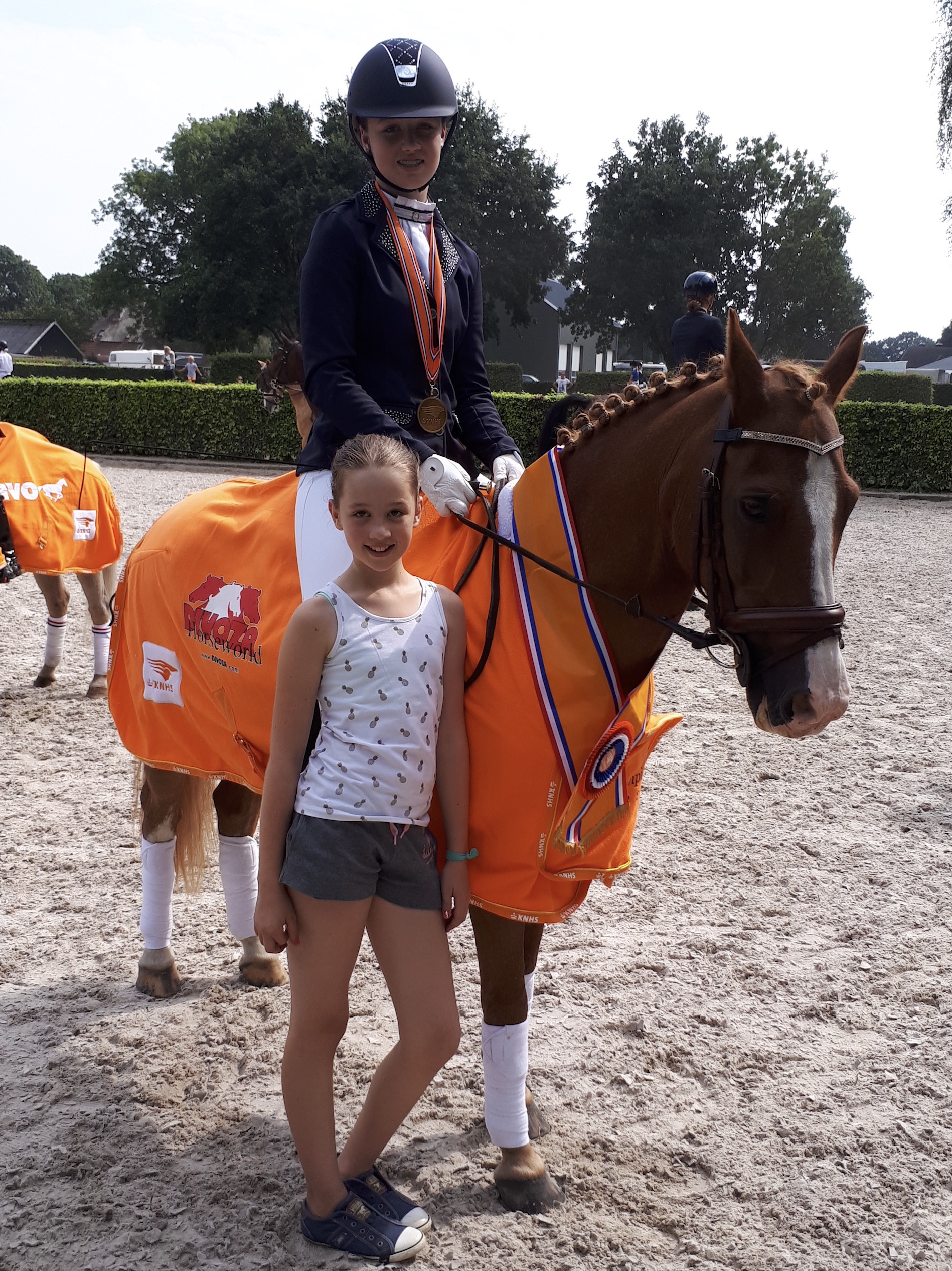 Op zaterdag 26 augustus vond in Ermelo de Hippiade voor pony’s plaats. Anniek Vanhove uit België reed met haar pony Frits in de klasse C-L2 dressuur naar een percentage van 70,67%. Dit bleek ruim voldoende om na Limburgs kampioen ook gehuldigd te worden als Nederlands kampioen in haar klasse.