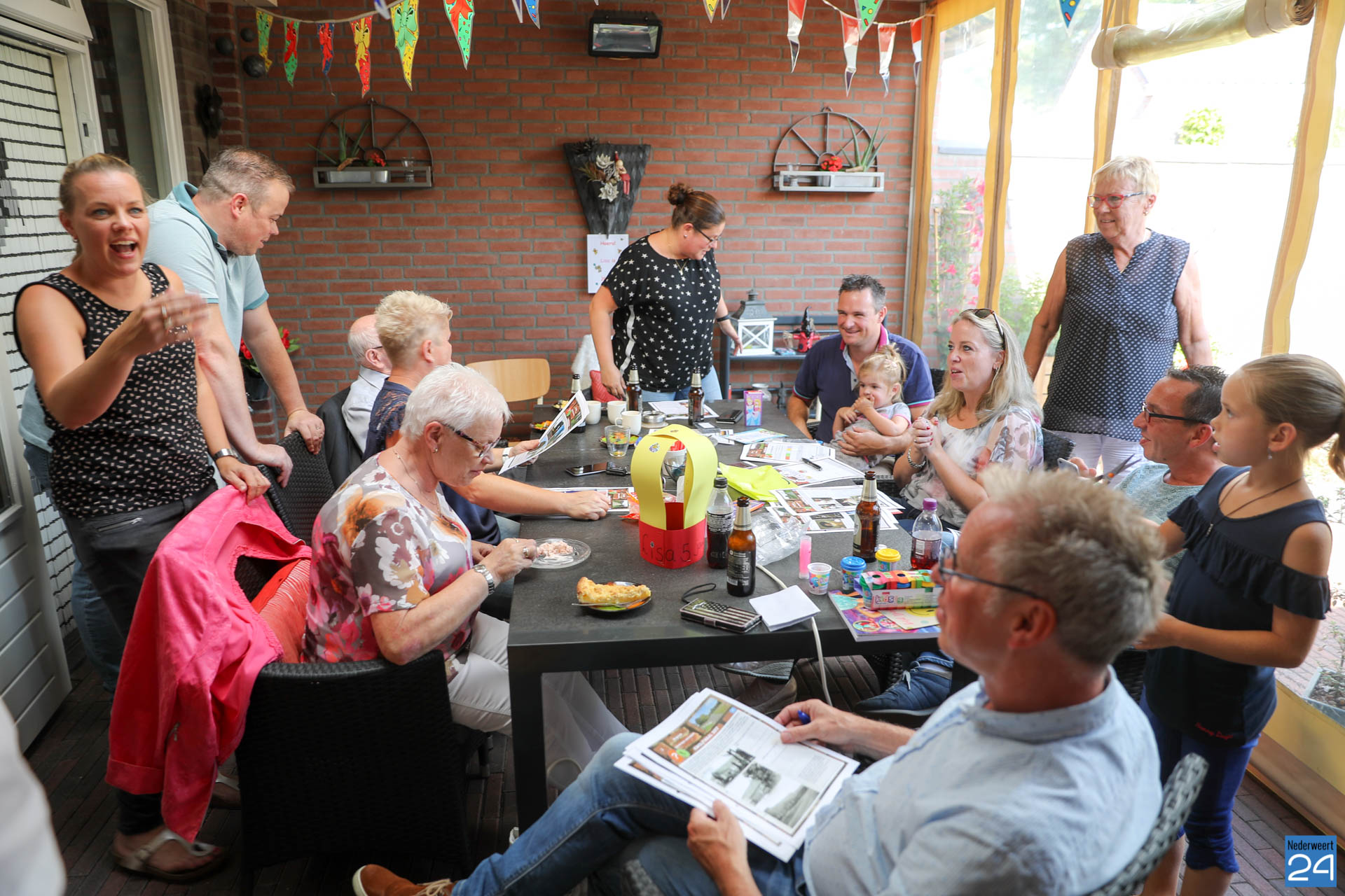 Dit jaar doen 18 teams mee met zo’n 200 deelnemers. In de praktijk betekend dat dat zowat 600 personen betrokken zijn bij het spel. De oudste deelnemers, de 97-jarige Tinus Brentjens zat er ook al weer klaar voor. Samen met zijn kleinkinderen en familie in de tuin om moeilijke, ludieke en soms historische vragen op te lossen.