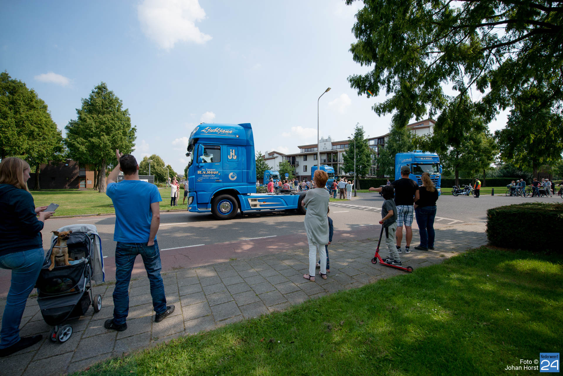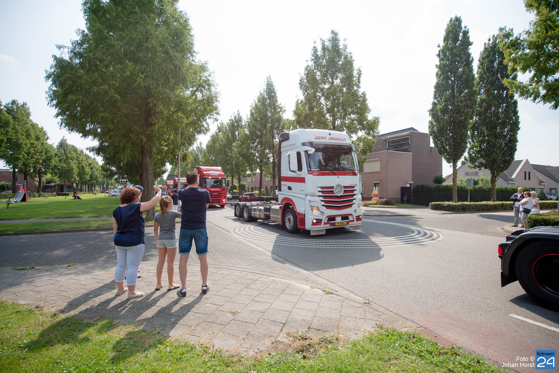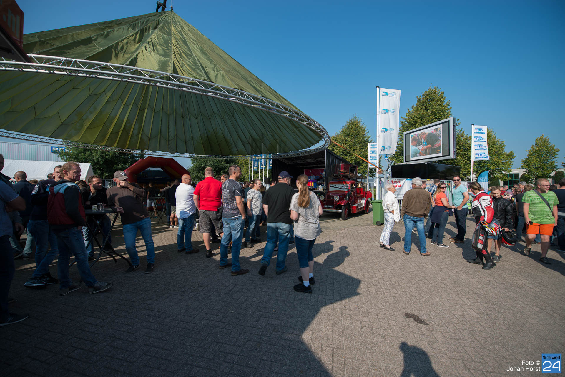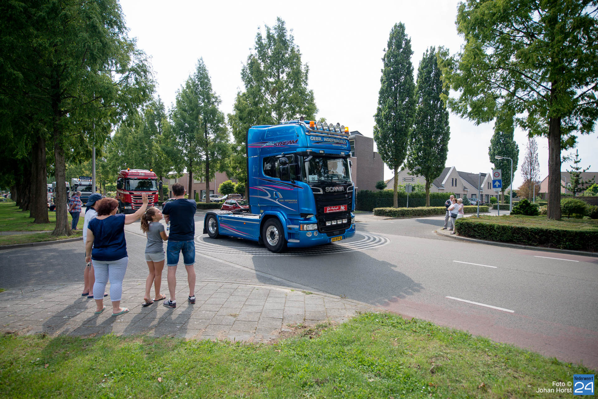 Om kwart over twaalf vertrok de stoet om koers te zetten voor een rondje door de regio. Na een ere(haag)douche van de brandweer op de Pannenweg in Nederweert waren ze rond half vier weer terug op het feestpaviljoen bij Verhuurbedrijf Lumar BV op industrieterrein Kampershoek.