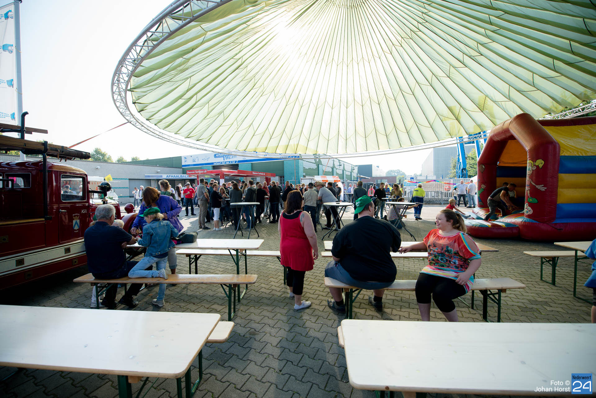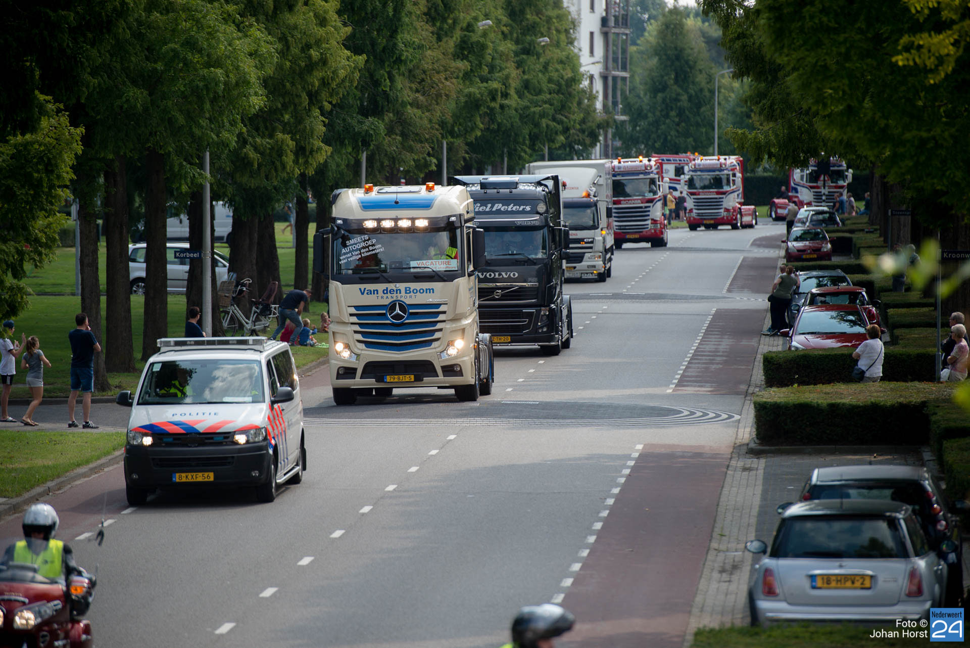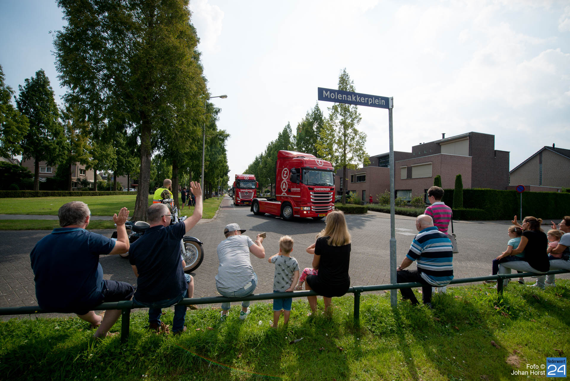 Om kwart over twaalf vertrok de stoet om koers te zetten voor een rondje door de regio. Na een ere(haag)douche van de brandweer op de Pannenweg in Nederweert waren ze rond half vier weer terug op het feestpaviljoen bij Verhuurbedrijf Lumar BV op industrieterrein Kampershoek.
