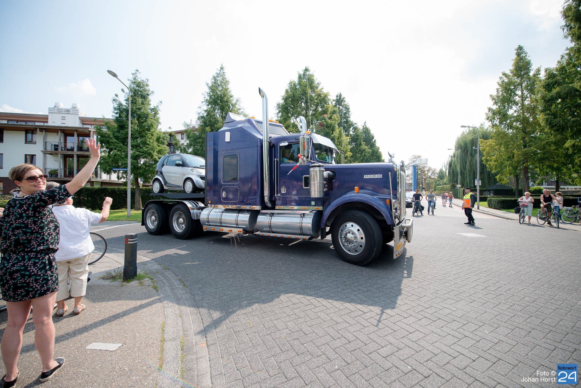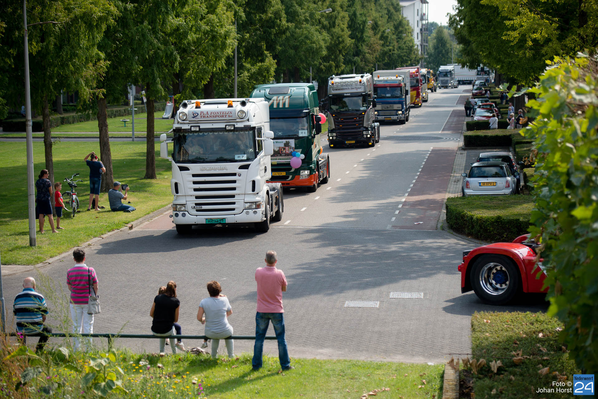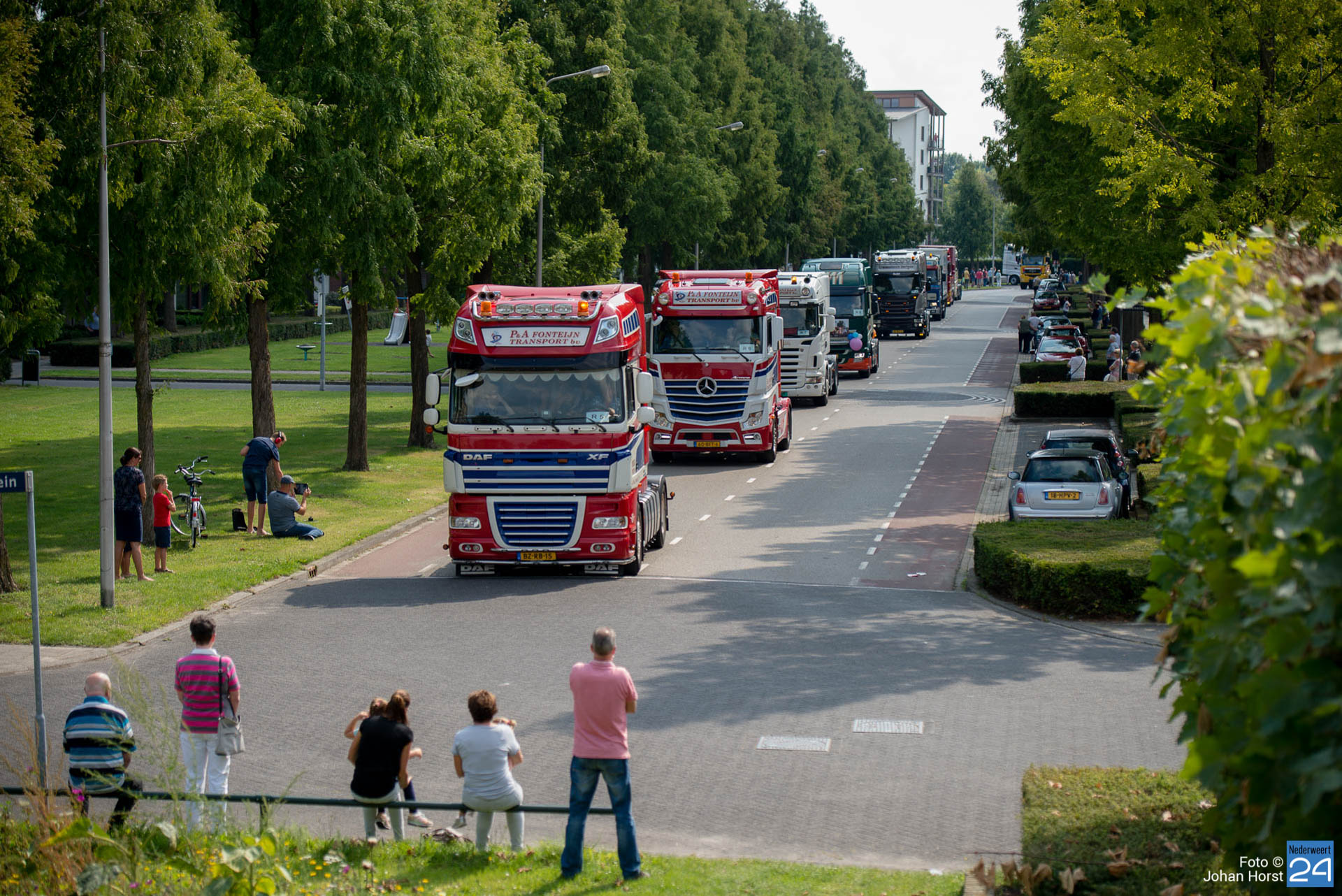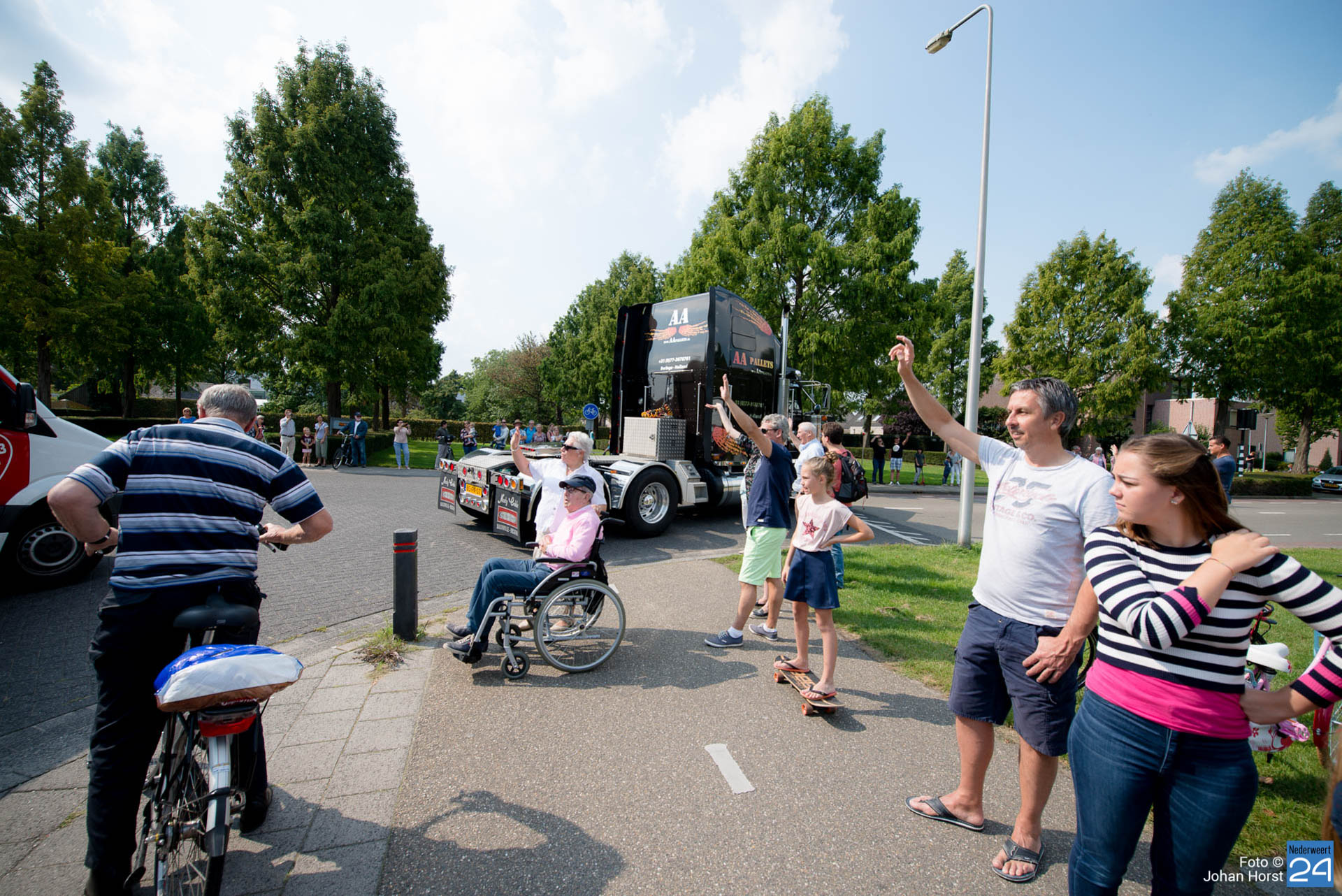 Om kwart over twaalf vertrok de stoet om koers te zetten voor een rondje door de regio. Na een ere(haag)douche van de brandweer op de Pannenweg in Nederweert waren ze rond half vier weer terug op het feestpaviljoen bij Verhuurbedrijf Lumar BV op industrieterrein Kampershoek.