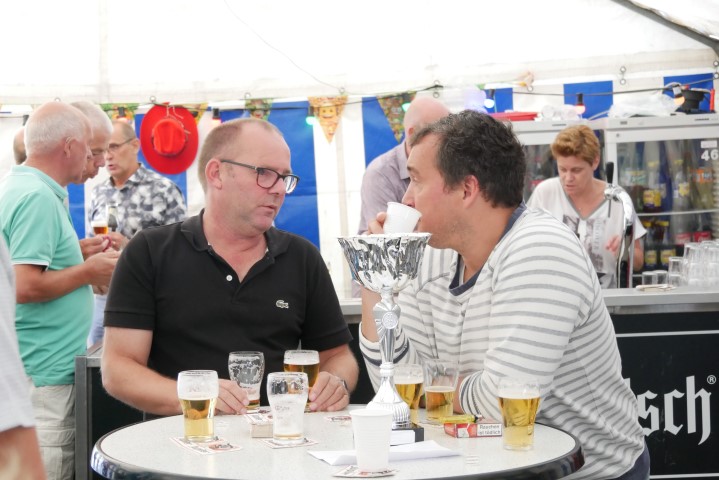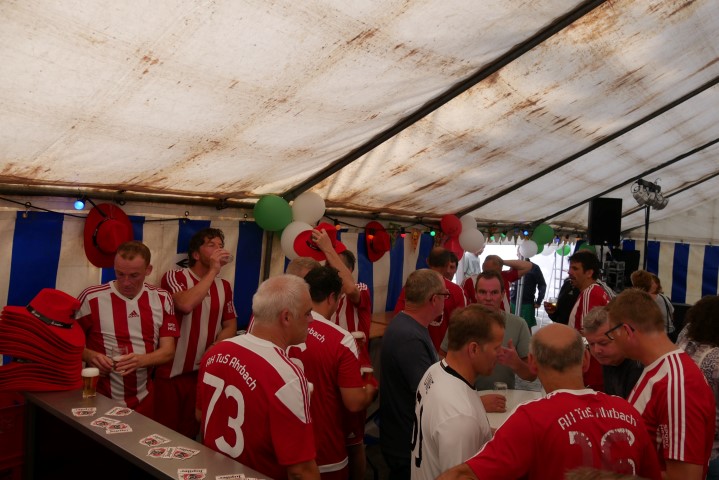 Na de ontvangst van de gasten op zaterdagmiddag werd de traditionele interland gespeeld, helaas moest de beker na een 4-1 nederlaag meegegeven worden naar het Westerwald. Uiteraard werd er niet lang om getreurd en de nederlaag verwerkt met een koel glas bier en een heerlijke barbecue. Het jubileum van de veteranen werd ingepast in het seizoensopeningsfeest van Eindse Boys en daar was het gezellig. Opvallend veel jeugdige leden waren aanwezig en ook zij wisten net als de ouderen de 60 & 70tees band Chewy & The Locals te waarderen. Tot in de kleine uurtjes werd gefeest waarna de volgende dag een bezoek werd gebracht aan Eynderhoof.