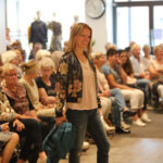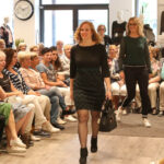 Na een heerlijke kop koffie was het tijd voor de modellen om de catwalk te betreden. De collectie van InBtween bestaat o.a. uit modische en zeer draagbare kleding met een goede pasvorm. Het was een prachtige show met modellen van eigen bodem en natuurlijk de mogelijkheid om aan de stofjes te voelen. Na de show hielp iedereen mee om de stoelen aan de kant te zetten om zo ruimte te maken om in de kledingrekken te snuffelen en de zojuist geshowde kledingstukken te passen.
