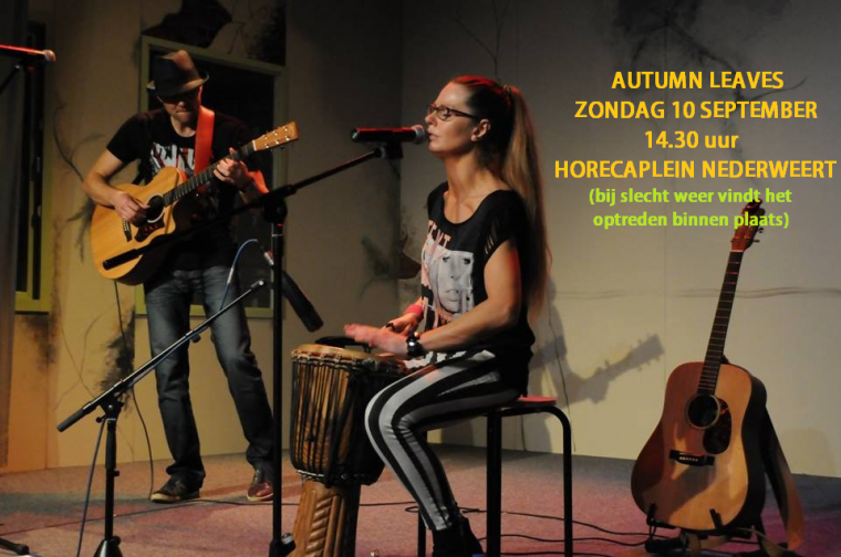 Zondagmiddag 10 september, tijdens de Dag van de Toren, kun je op het Horecaplein Nederweert genieten van een optreden van het Singer/songwritter duo uit Budel “Autumn Leaves”. Autoumn Leaves speelt naast hun eigennummer o.a. bekende covers voorzien van een eigen jasje. Het optreden begin Tom 14.40 uur.