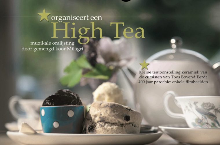 De High Tea begint om 14.00 uur en vindt plaats in Zaal Wetemans. Iedereen is van harte welkom. Kaartjes kosten € 17,50 en zijn tot 24 september verkrijgbaar bij: