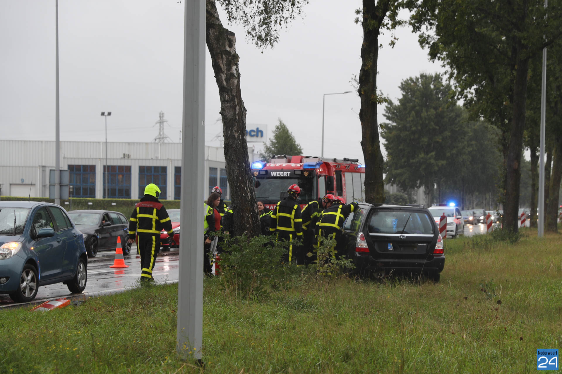 Een personenauto reed vanuit Nederweert richting Weert. De andere auto kwam vanaf de snelweg A2. Het punt is door verkeerslichten geregeld maar door nog onbekende oorzaak zijn ze met elkaar in botsing gekomen. De auto die vanaf de snelweg kwam spinde omdat de auto vanuit Nederweert deze net van achter aantikte. Beide inzittenden zijn door het ambulancepersoneel nakeken.
