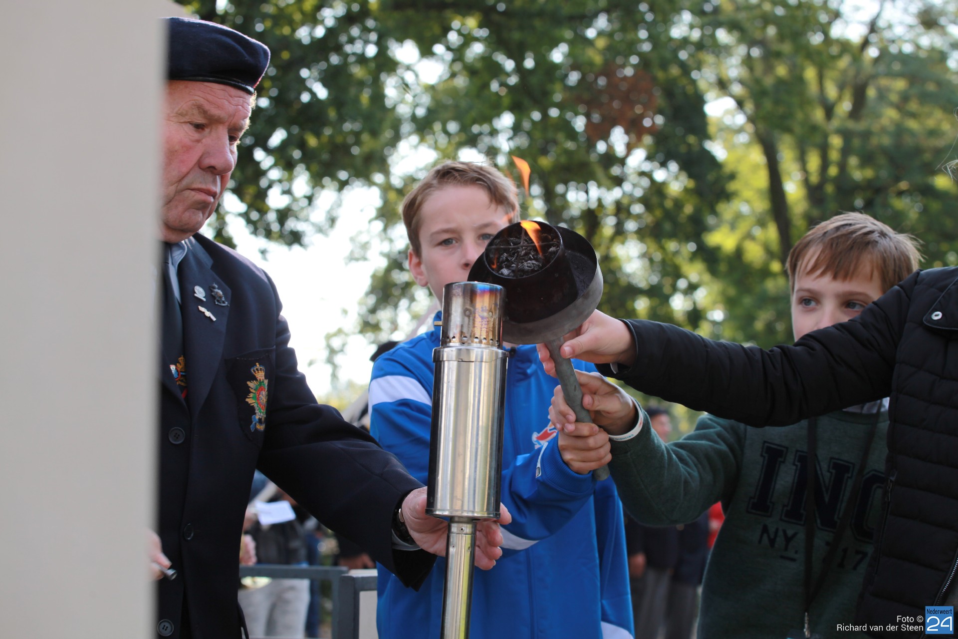 Om te blijven herdenken, organiseerden zij allerlei activiteiten, waaronder het Scholenproject. De kinderen hadden vandaag bijzondere taakjes, zoals het voorlezen van een gedicht, het vasthouden van de vlaggen, het maken van foto’s of het houden van interviews met omstanders. Op deze manier werd het vuur, als het ware, doorgeven aan de volgende generatie.