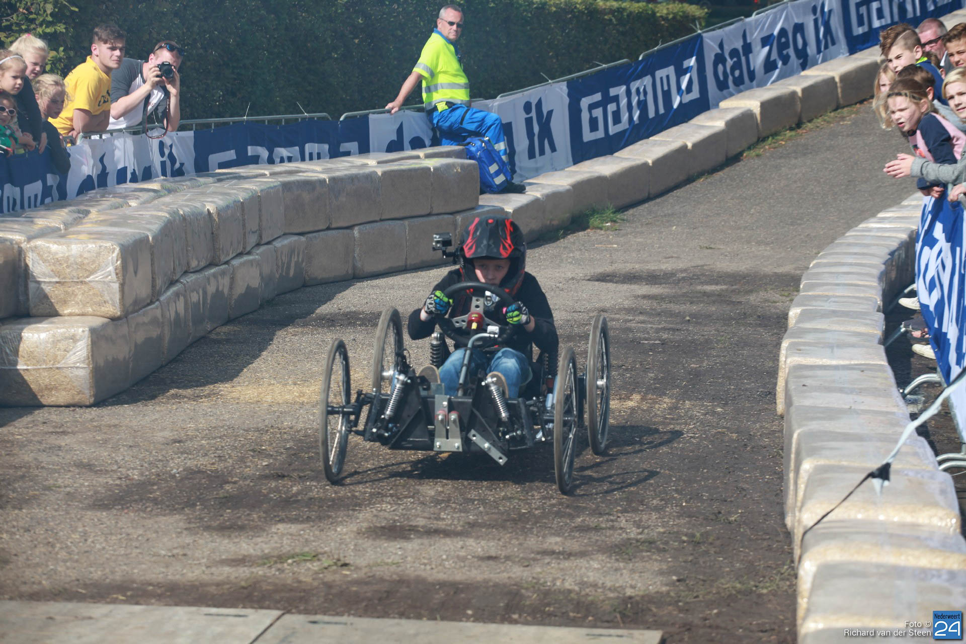 Zondagmiddag konden deelnemers en publiek genieten van de allereerste editie van de GAMMA NK Zeepkistenrace. Na twee eerdere succesvolle zeepkistenrace-edities besloot de organisatie om nog meer spektakel te bieden en er een Nationaal Kampioenschap aan te verbinden. Met een heerlijk temperatuurtje en een stralend zonnetje was het goed toeven in en rondom Brug 15 bij de Zuid-Willemsvaart in Nederweert.