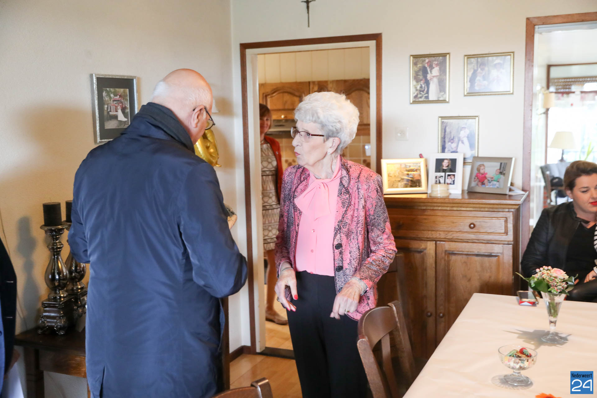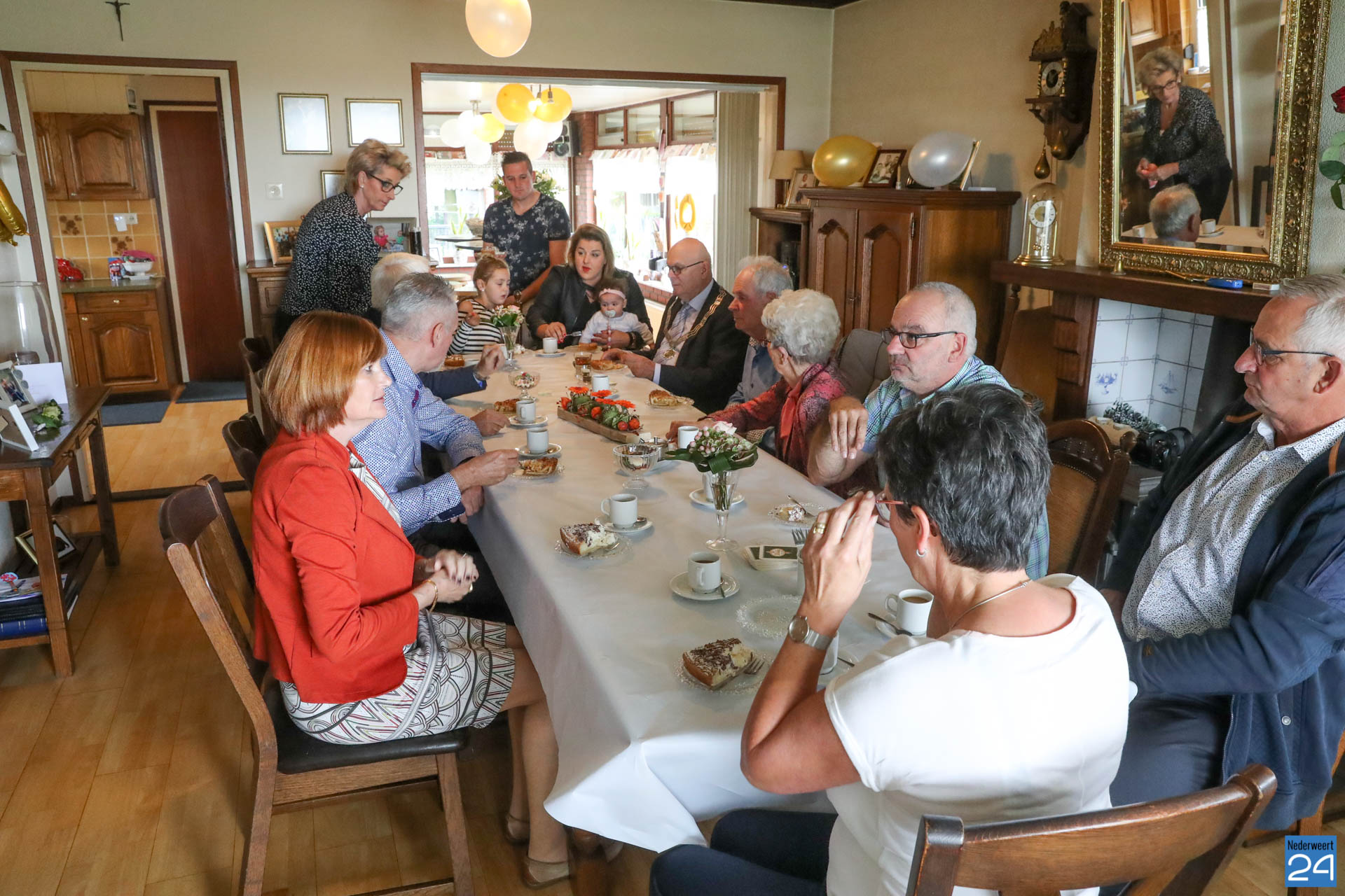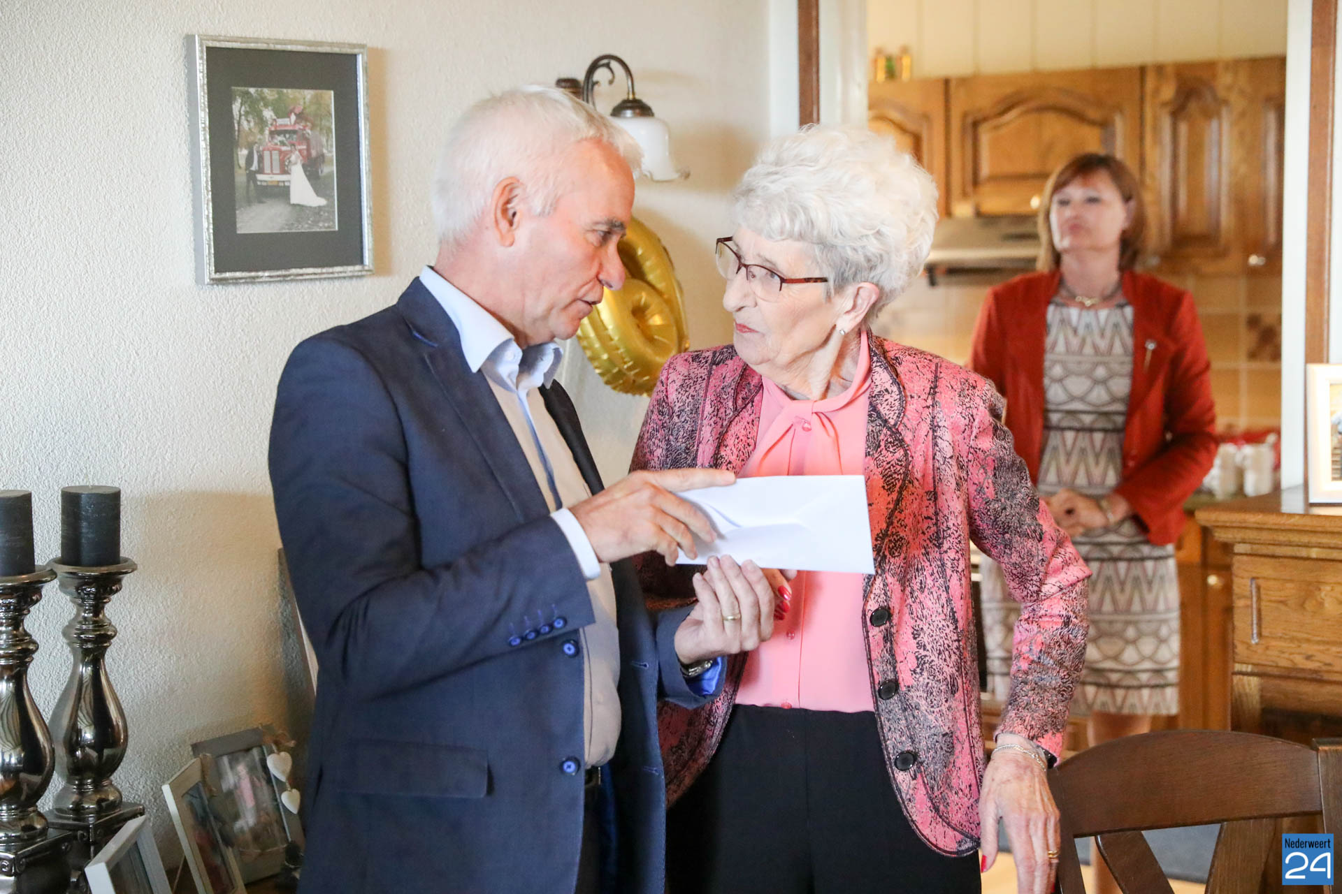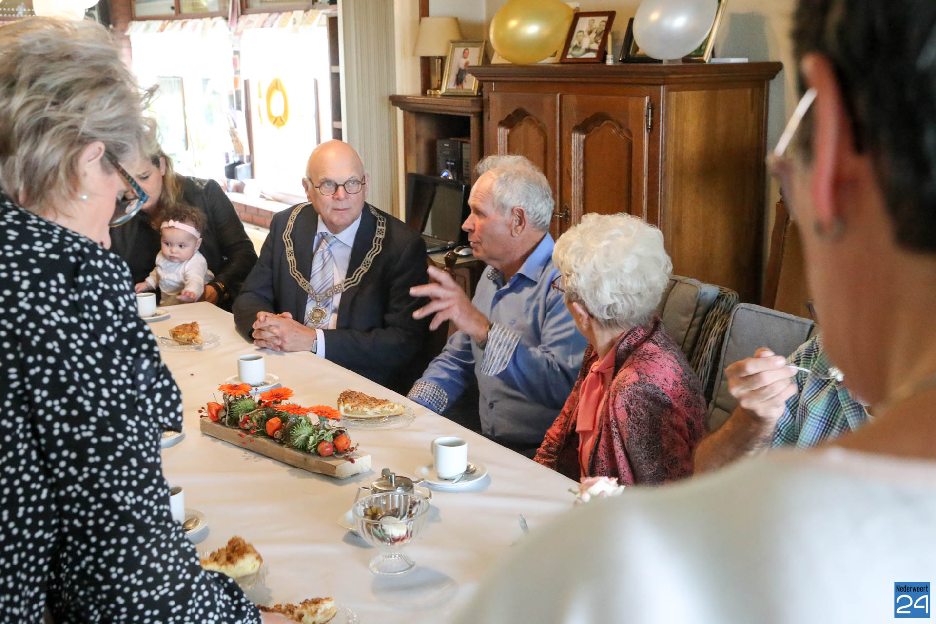 Maandagmiddag hebben burgemeester Evers en wethouder Geraats een bezoek gebracht aan het diamanten bruidspaar Theu en Griet Tullemans-Meulen. Met een flinke fruitmand gingen ze langs bij het paar om de felicitaties over te brengen namens het gemeentebestuur.