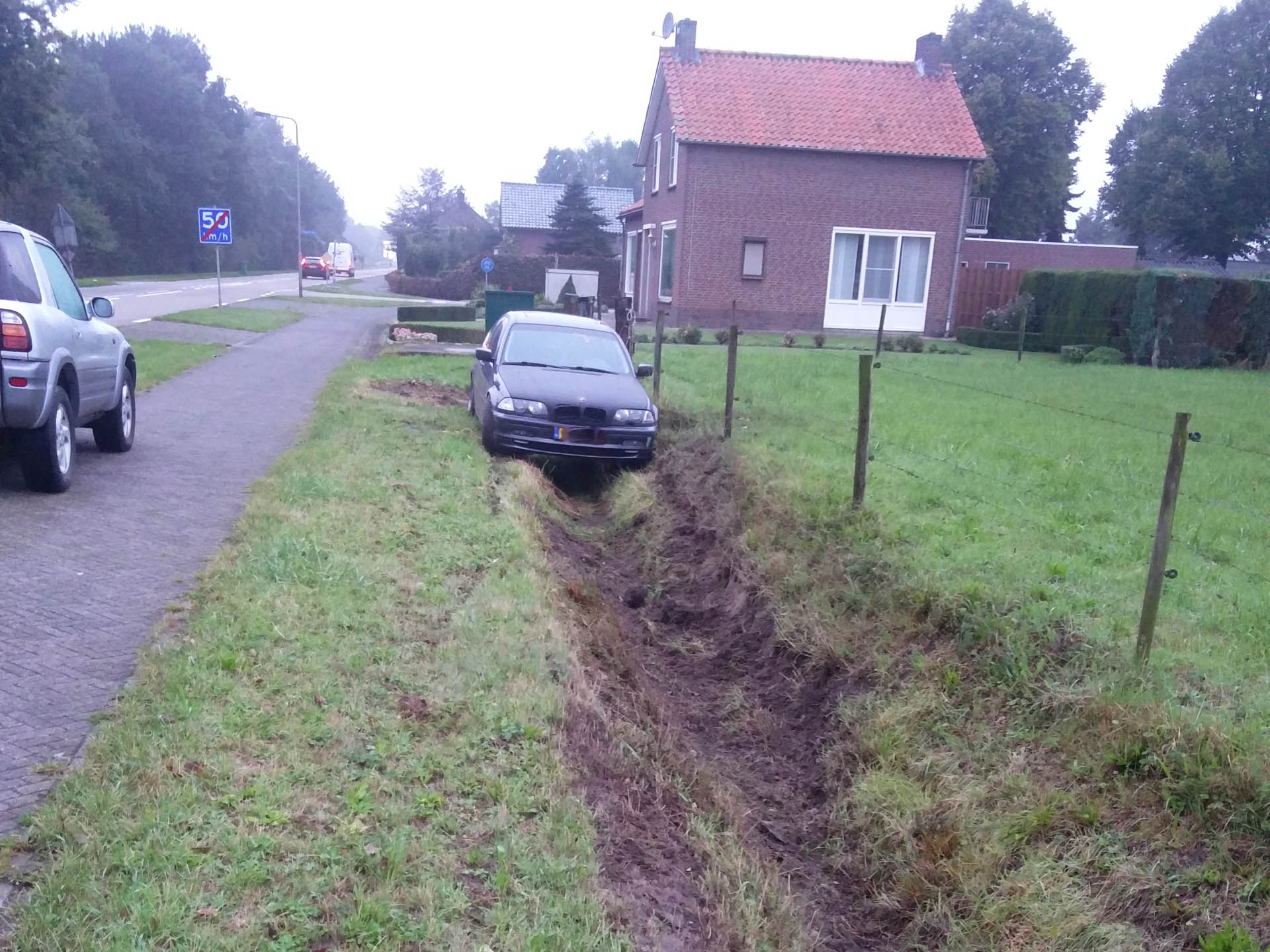Het is niet bekend wat de oorzaak van de slippartij is geweest. Niemand raakte gewond en de auto is door een bekende met een tractor uit de sloot getrokken.
