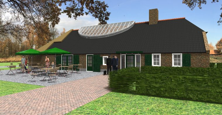 De Peelboerderij in Ospel wordt grondig verbouwd en krijgt een glazen dak. Coen van der Zanden van restaurant de Dorpsherberg gaat de catering voor zijn rekening nemen. Marijke Vaes, manager van het buitencentrum De Pelen, vertelt vol enthousiasme over het initiatief waar ze al jaren aan werken. “Met deze extra dependance krijgen we er een prachtige ruimte voor vergaderingen, lezingen, trouwerijen of zelfs uitvaarten bij. Het is een prachtige plek om luxe te vergaderen met duurzame en biologische streekgebonden producten die passen binnen het concept Buitengewoon Lekker van Staatsbosbeheer.