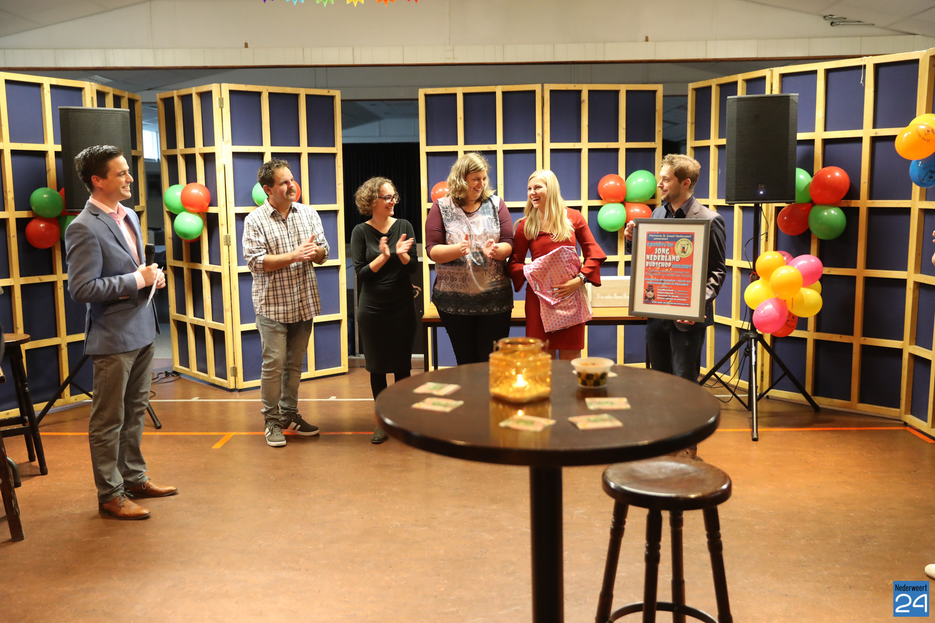 Zaterdagavond was iedereen welkom op de receptie voor het 50-jarig bestaan. Deze receptie werd ‘gruuëts‘ geopend door Harmonie St. Joseph Nederweert met de aanbieding van een “Gruuëts op Jong Nederland Budschop Concert“. “Jong Nederland is al 50 jaar actief voor de jeugd van Nederweert, dat verdient een concert” volgens Jos Willekens, voorzitter van de harmonie.