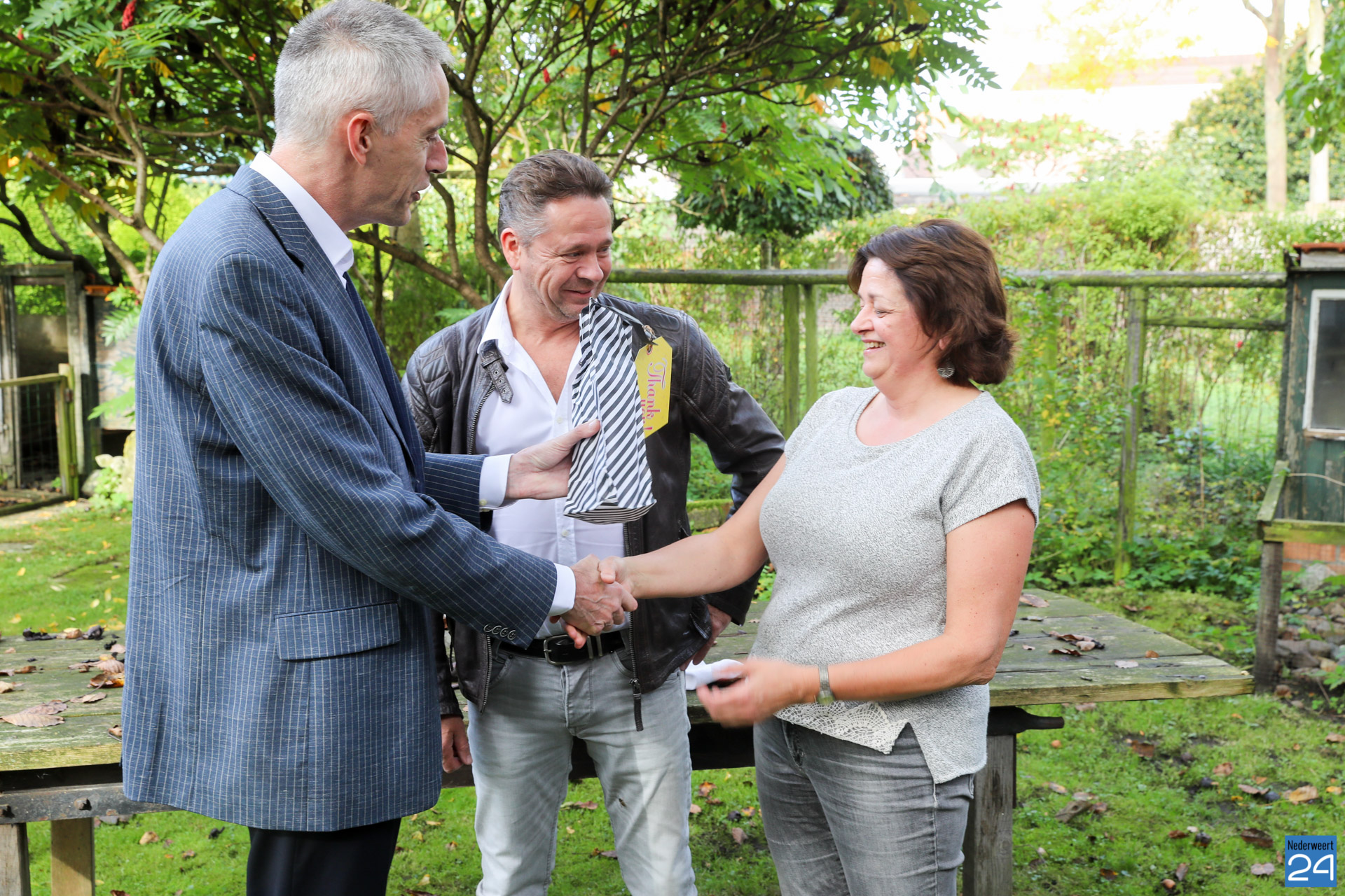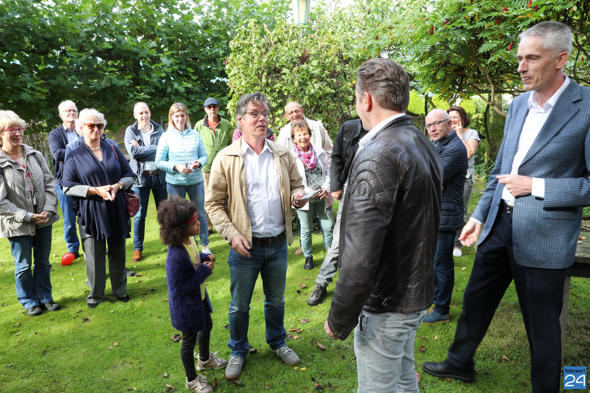 Wie ook in het herfstzonnetje werd gezet was mevrouw Thea Bongers. Haar prachtige monumentale boerderij in de Kerkstraat (het zogenaamde ‘Huis van de Twaalf Ambachten’) maakt al jarenlang deel uit van de cultuurhistorische rondleiding. Een bezoek aan het interieur van de schuur uit 1787 en de lommerrijke nostalgische tuin daarachter, vormt al jarenlang een van de grootste hoogtepunten uit de excursie. Voor haar onverminderde gastvrijheid kreeg Thea een presentje aan geboden uit handen van Alfons Bruekers, al meer dan zeven jaar de gids van de historische rondleidingen.