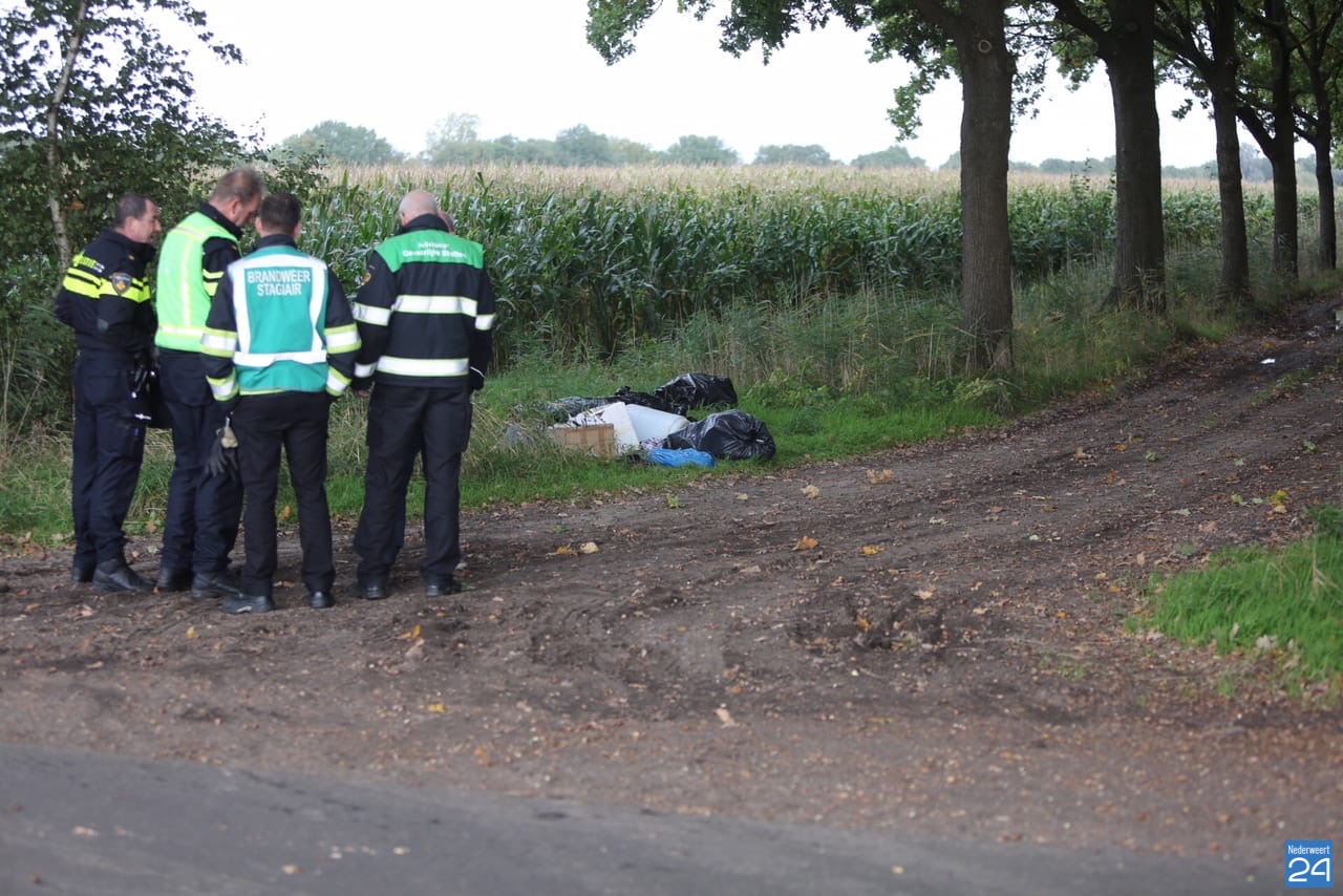 Een voorbijganger heeft maandagochtend drugsafval ontdekt op de Jan Smitlaan, net op de gemeentegrens van Nederweert en Someren.