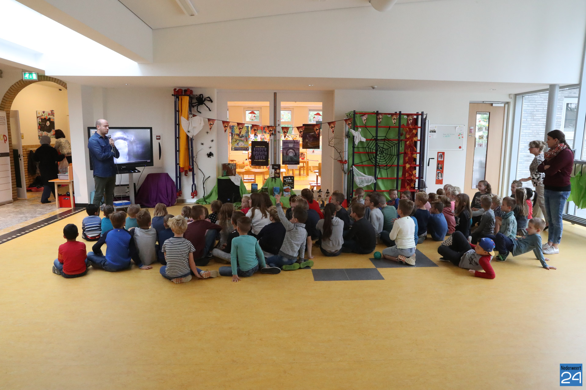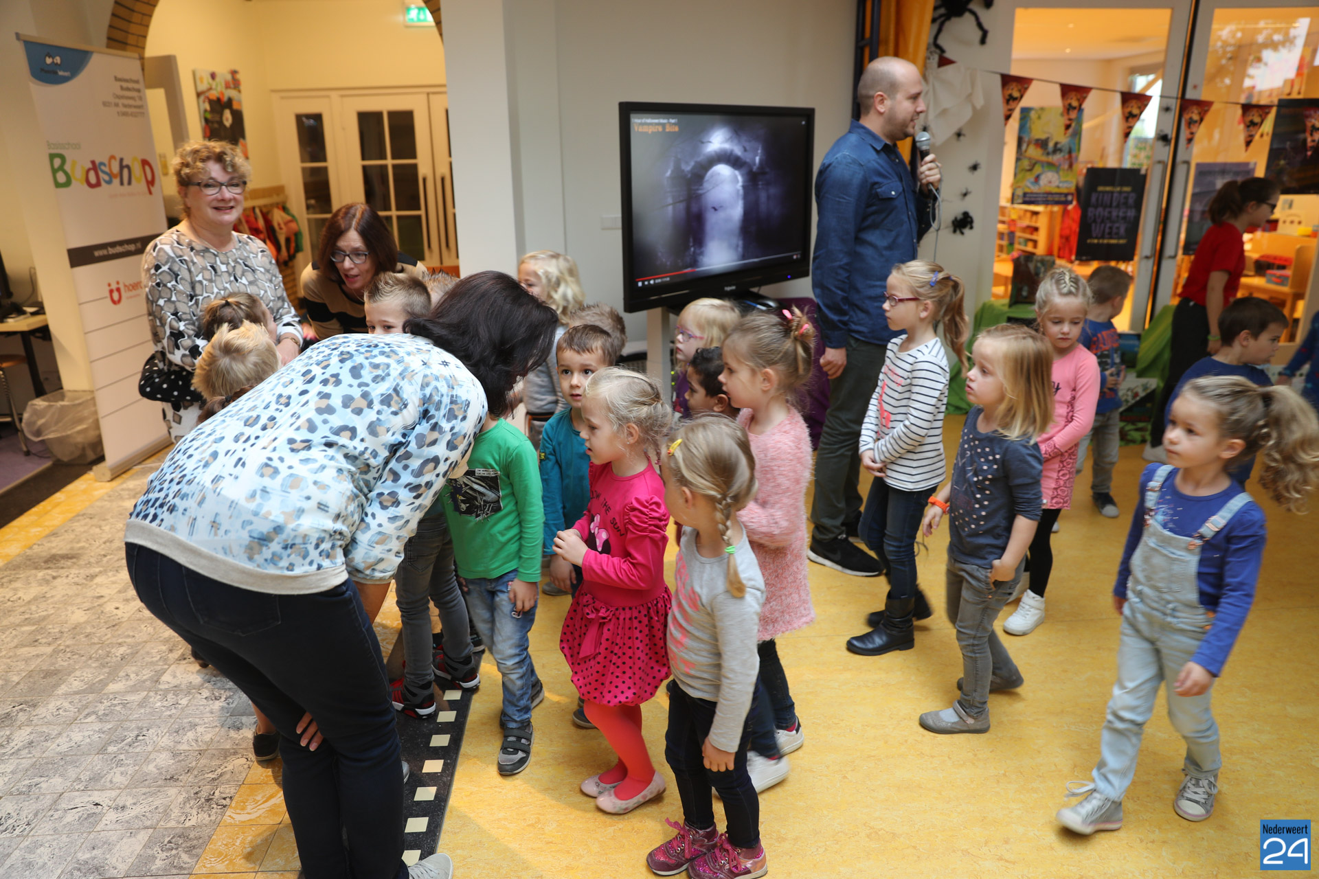 Op basisschool Budschop in Nederweert werd woensdag de Kinderboekenweek met het thema “Griezelen, Gruwelijk eng!“, feestelijk geopend. Na de opening door meester Niels gingen de kinderen in hun eigen klas op zoek naar letters die samen een woord vormden. Met de letters konden ze de kluis met boeken openen en kon er gelezen worden.