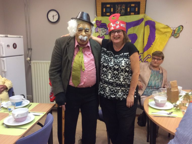 Gerlinde Muffels werd afgelopen dinsdagmiddag door Abraham in het zonnetje gezet. Abraham, ofwel Herman van Velthoven, bedankte haar, namens alle gasten van het eetpunt “Ontmoeten doet Groeten”, voor haar enthousiaste inzet.