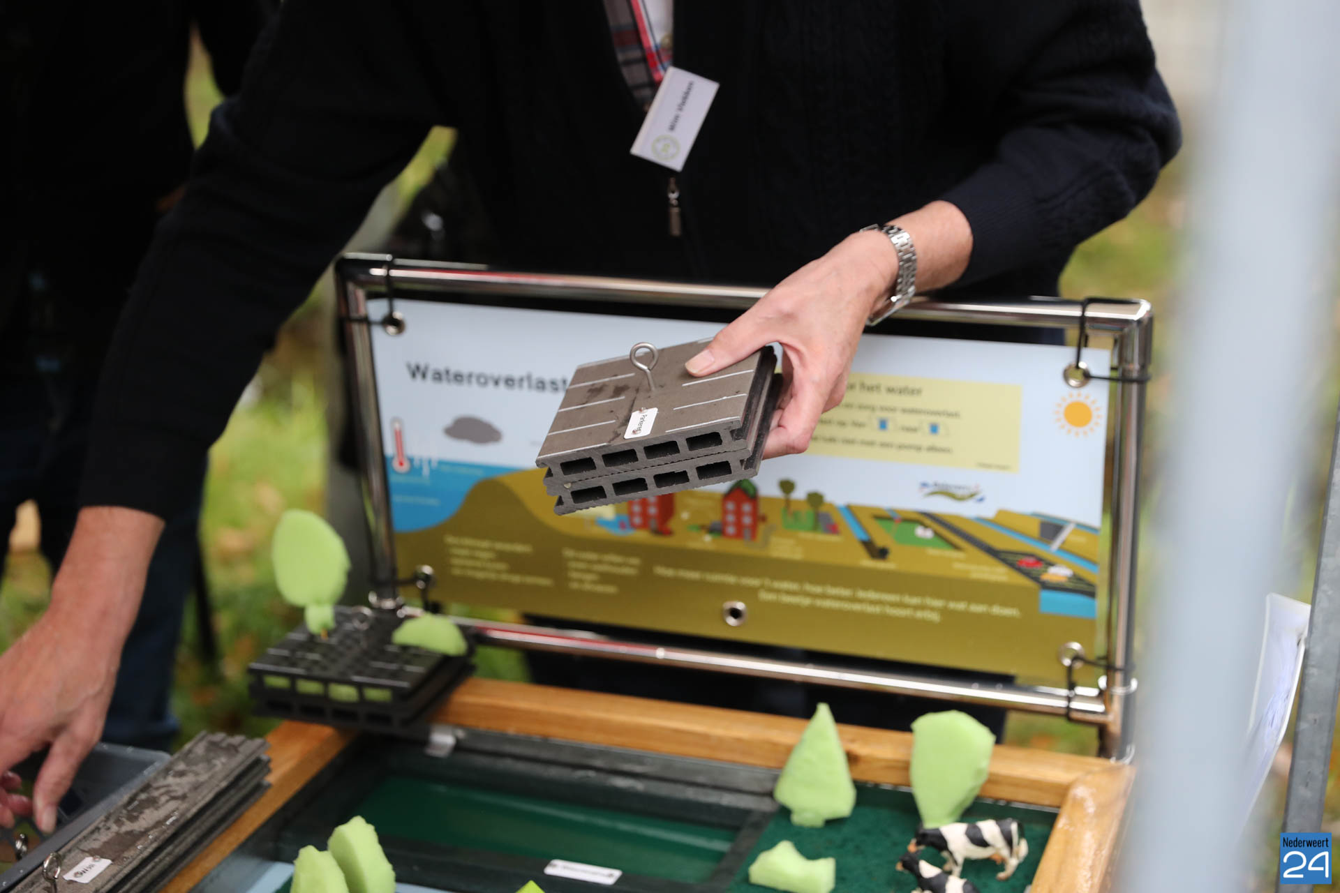 “Het doel is om te laten ervaren dat ieder een rol heeft in het klimaatbestendig maken van zijn omgeving,” aldus bestuurslid van Waterschap Limburg, Joke Kersten. “Belangrijk is dat ook kinderen zien en ontdekken hoe water werkt” Met dit model krijgt het NMC een passend cadeau waarmee heel gemakkelijk met bezoekers, van jong tot oud, het gesprek kan worden aangegaan.
