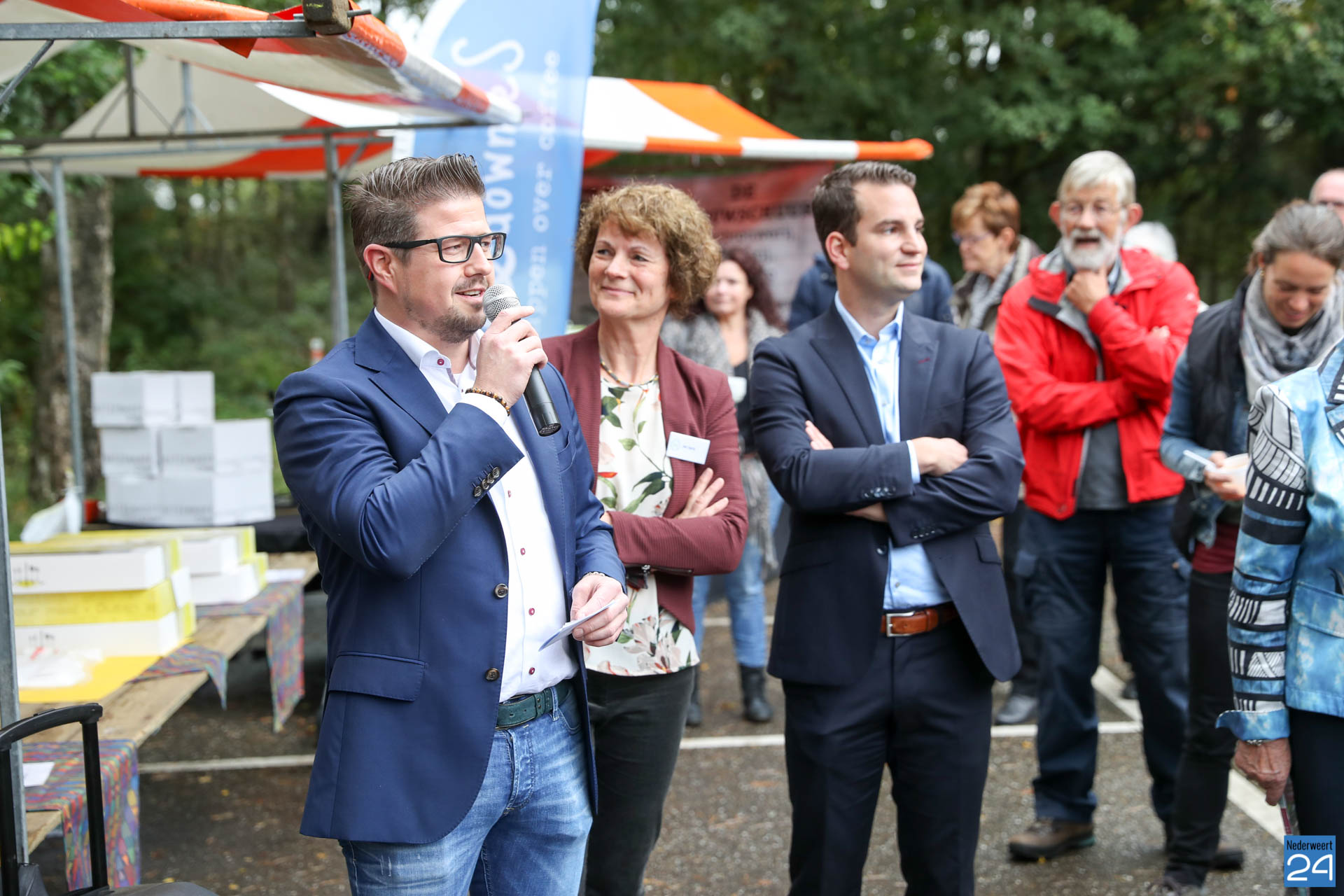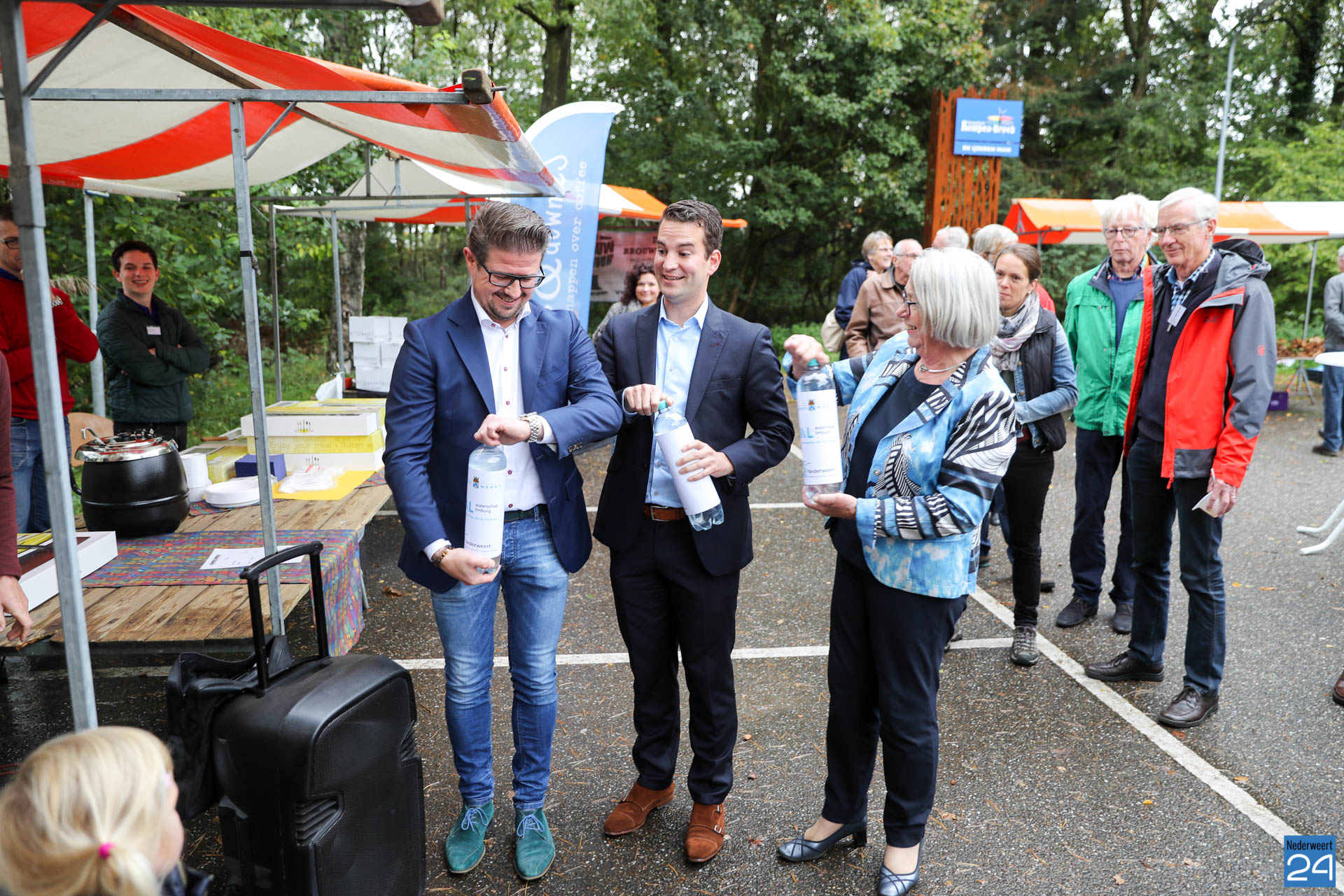 Met het simuleren van een stevige bui en het demonstreren van een aantal ‘droge voeten’-maatregelen dopen de wethouders Martijn van den Heuvel (Weert), Rick van Meel (Nederweert) en bestuurslid Joke Kersten (Waterschap Limburg) de educatietafel op 8 oktober om 14.00 uur en dragen die over aan het bestuur van het NMC.