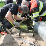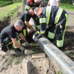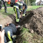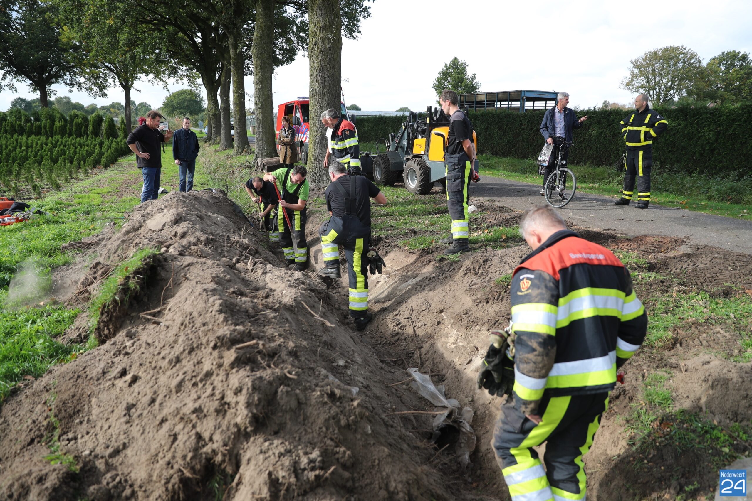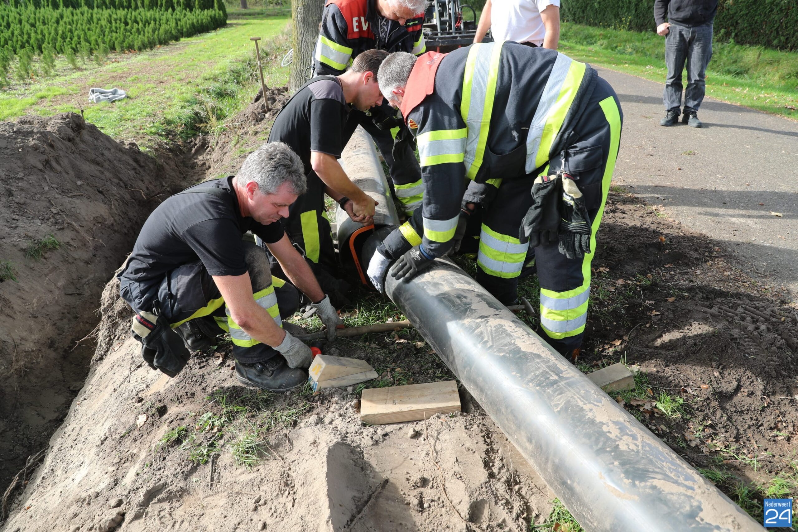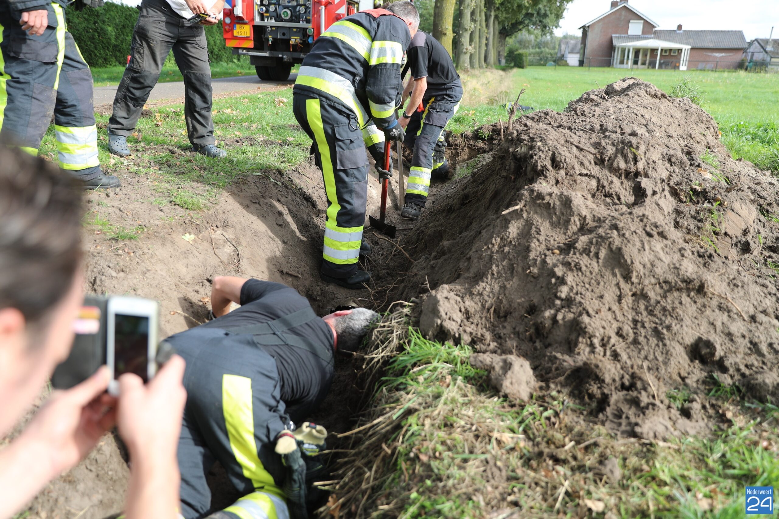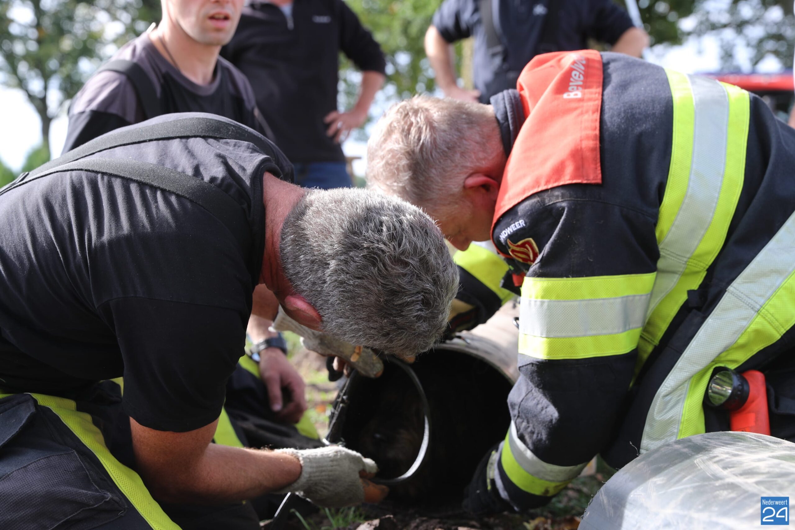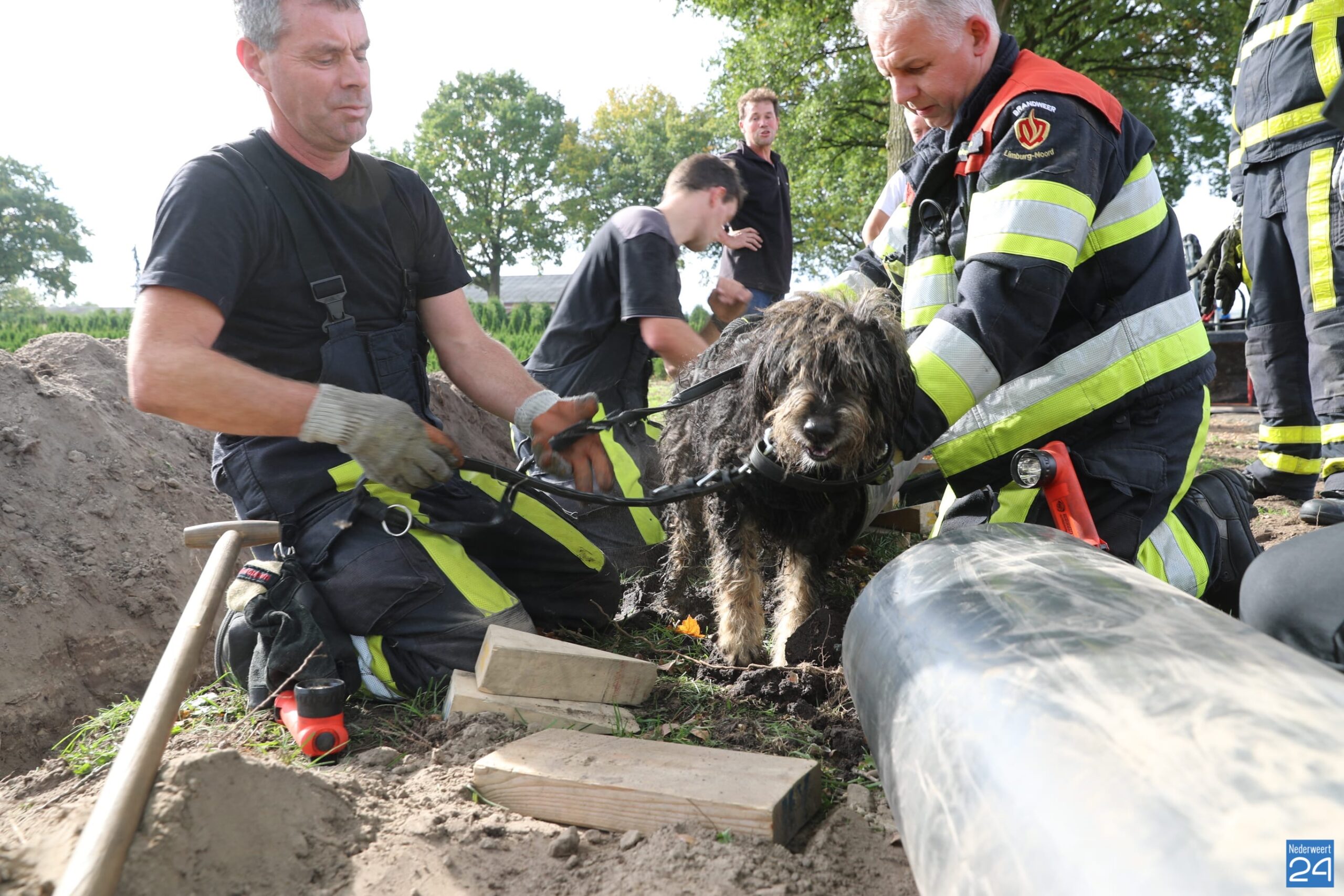 Een buurtbewoner heeft met een graafmachine de buis vrij gegraven waarna de brandweer met een schep de laatste beetjes zand weg kon scheppen zodat de buis eruit gehaald kon worden. Daarna is de buis open gezaagd zodat de hond er veilig uit gehaald kon worden.