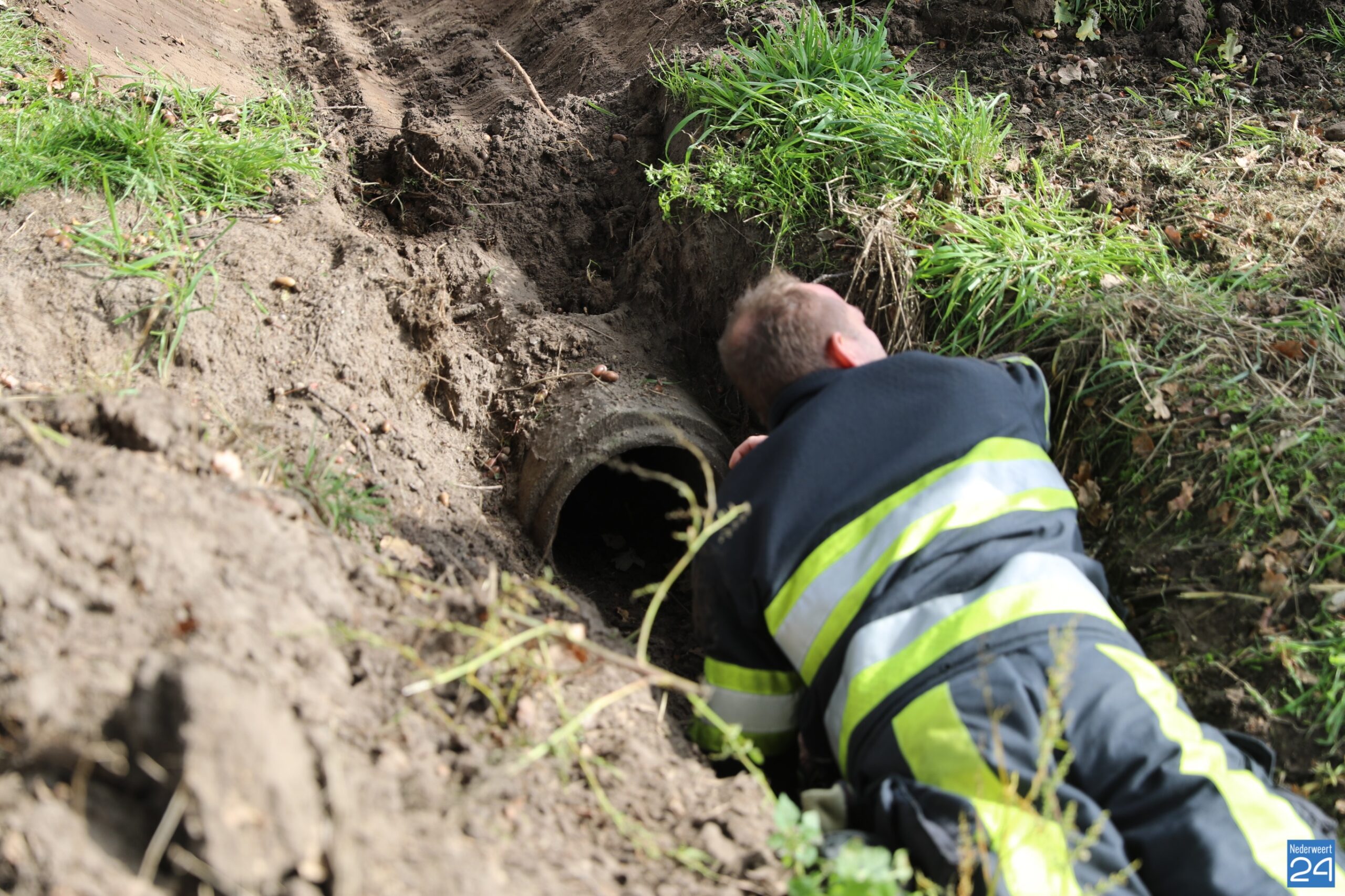De brandweer van Meijel heeft donderdagmiddag een hond, die vastzat in een duiker langs de Katsberg, uit zijn benarde positie gered. Een wandelaar hoorde de hond en waarschuwde de hulpdiensten.