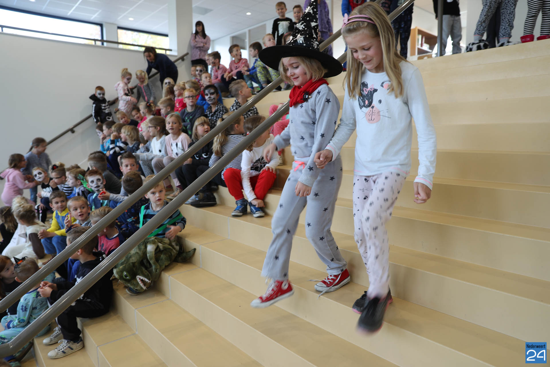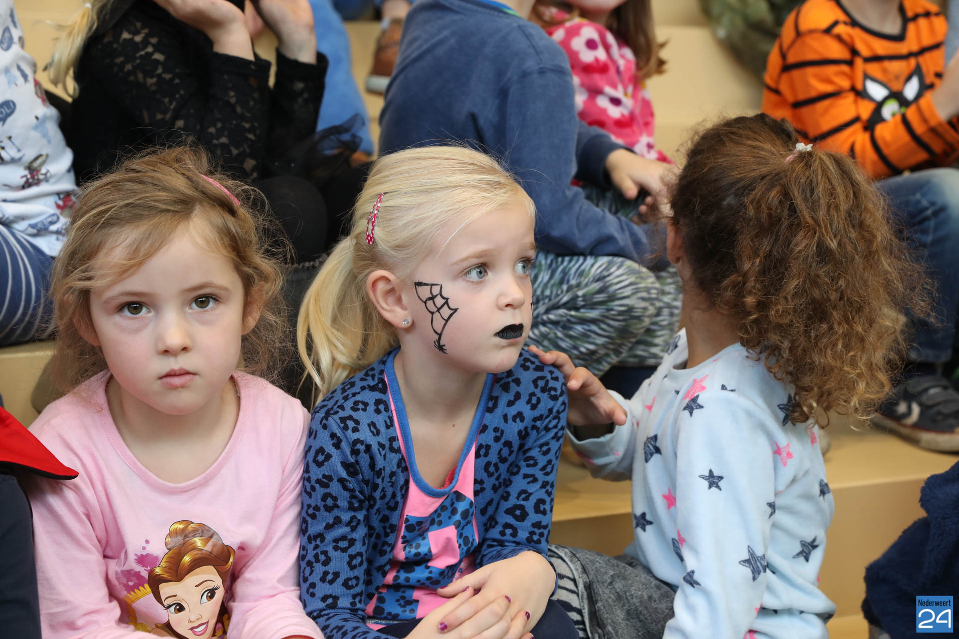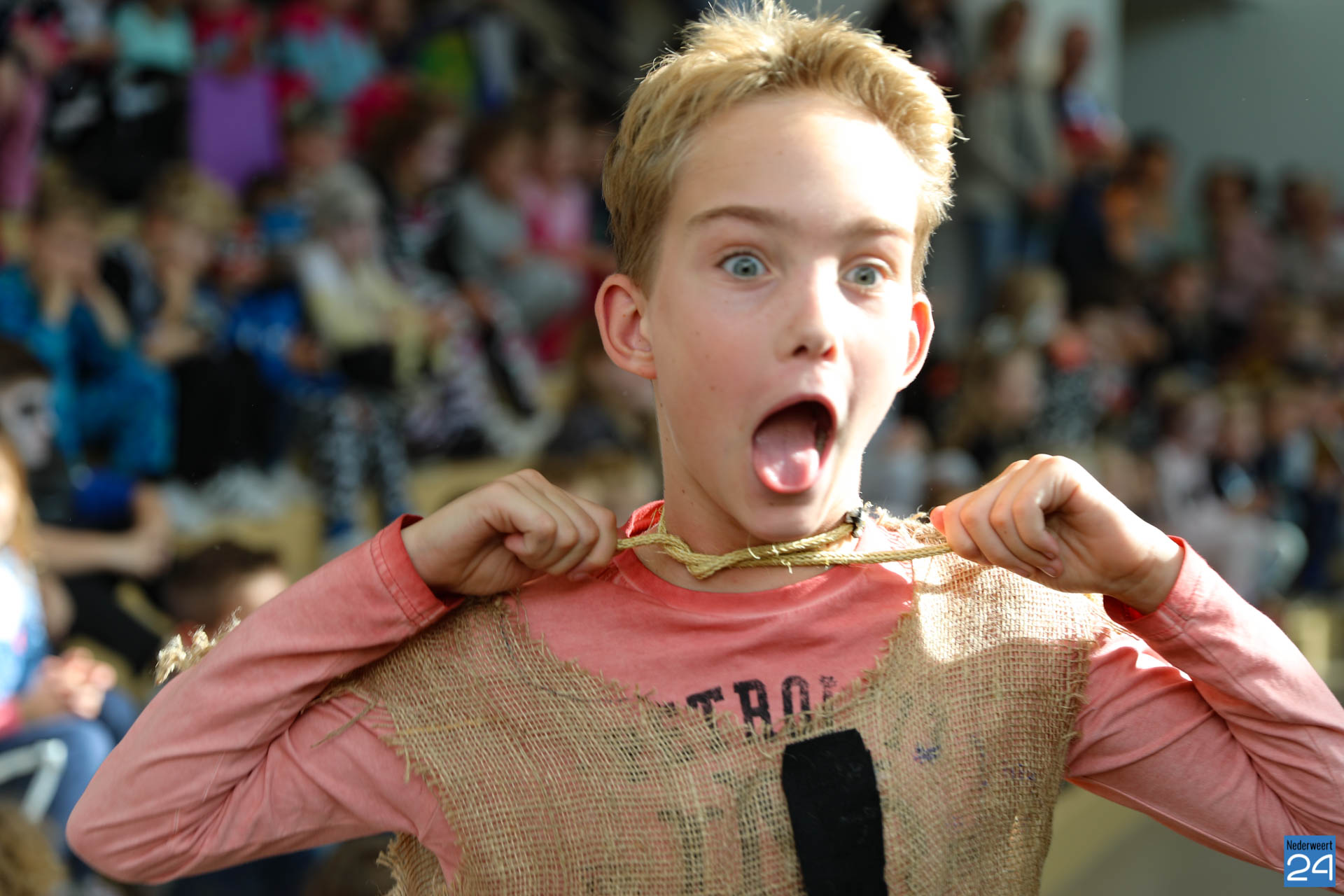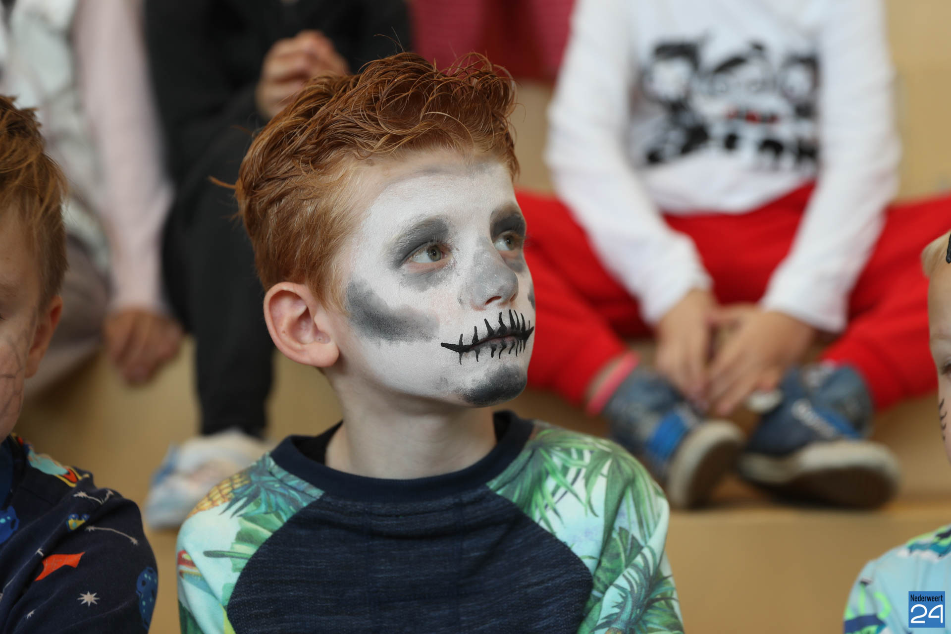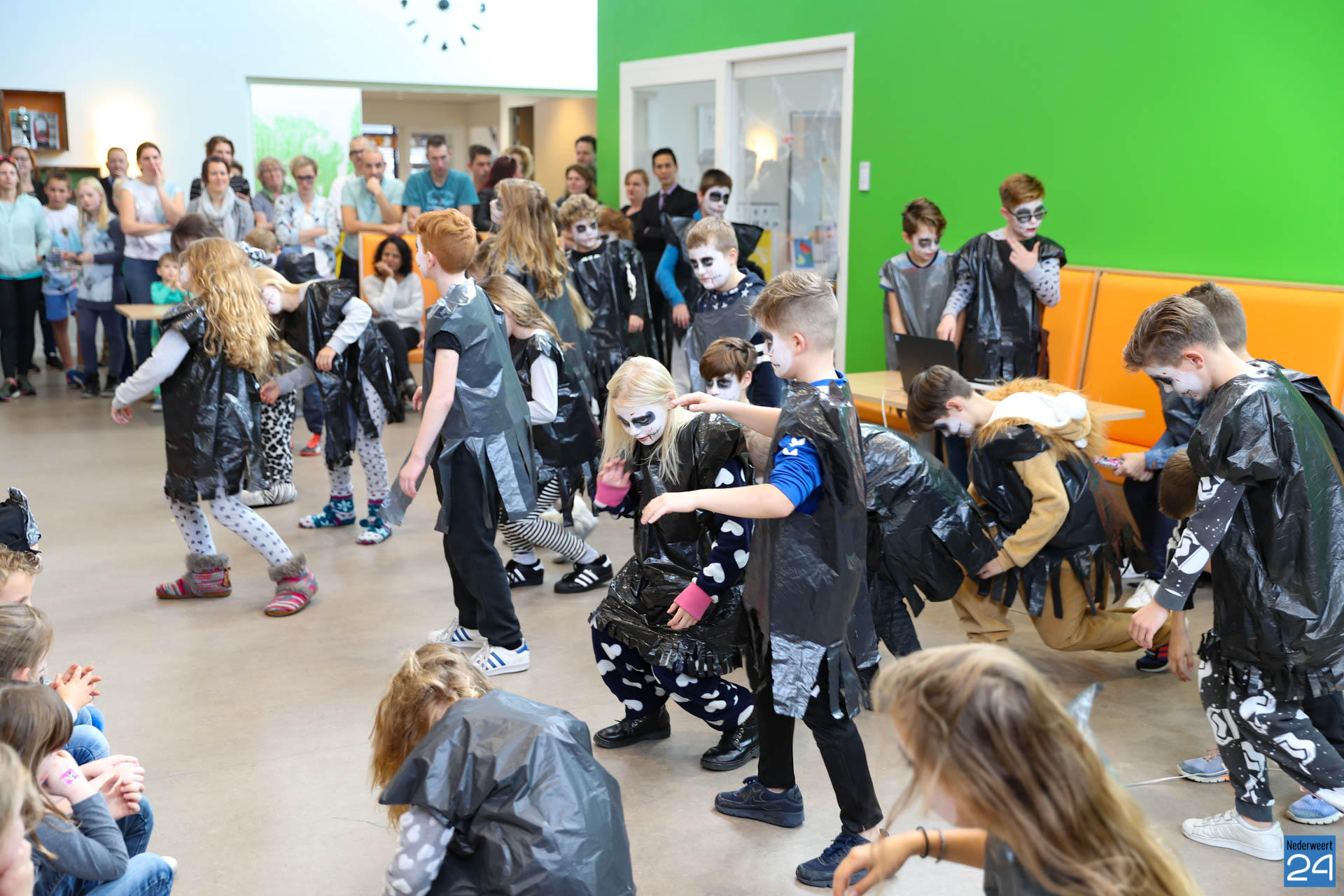 De groepen 2 t/m 4 sloten de Kinderboekenweek af door te showen hoe ze waren verkleed en samen het dansje te dansen van de Kinderboekenweek. Ook bij de bovenbouw hebben ze de laatste weken gewerkt aan het thema: Gruwelijk eng! Vandaag slot de Bovenbouw voor het eerst af met een periodesluiting waarin ze aan andere groepen en ouders presenteren wat ze hebben gemaakt, geleerd en gedaan. Natuurlijk waren ze allemaal schitterend verkleed en maakten ze er samen een feestje van. Verschillende optredens passeerden de revue. Groep 6 had een toneelstukje voorbereid en groep 5 zong een lied, misschien wel het toekomstige “schoollied“.