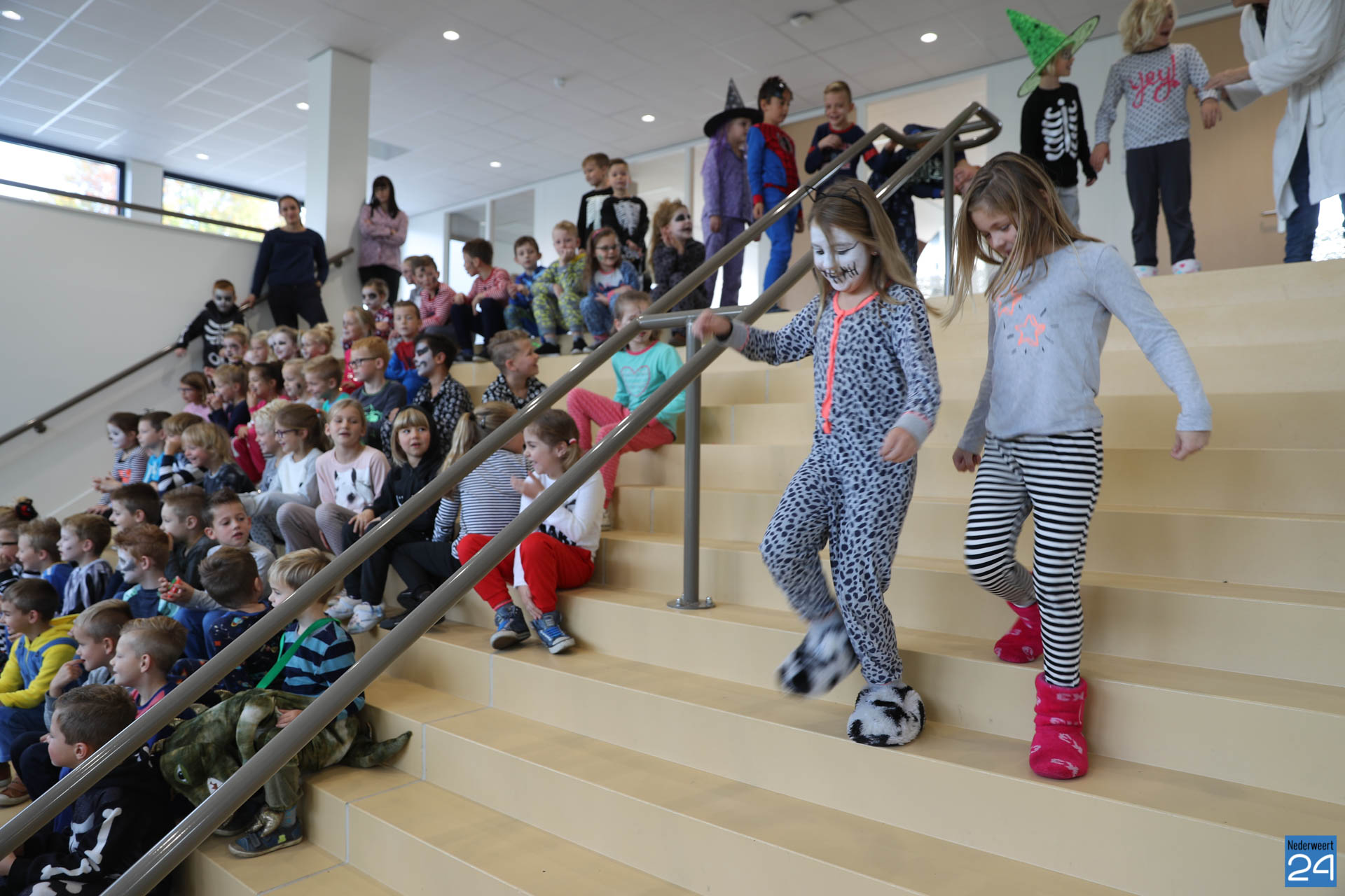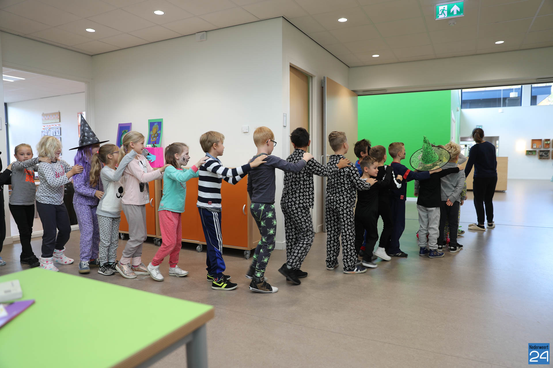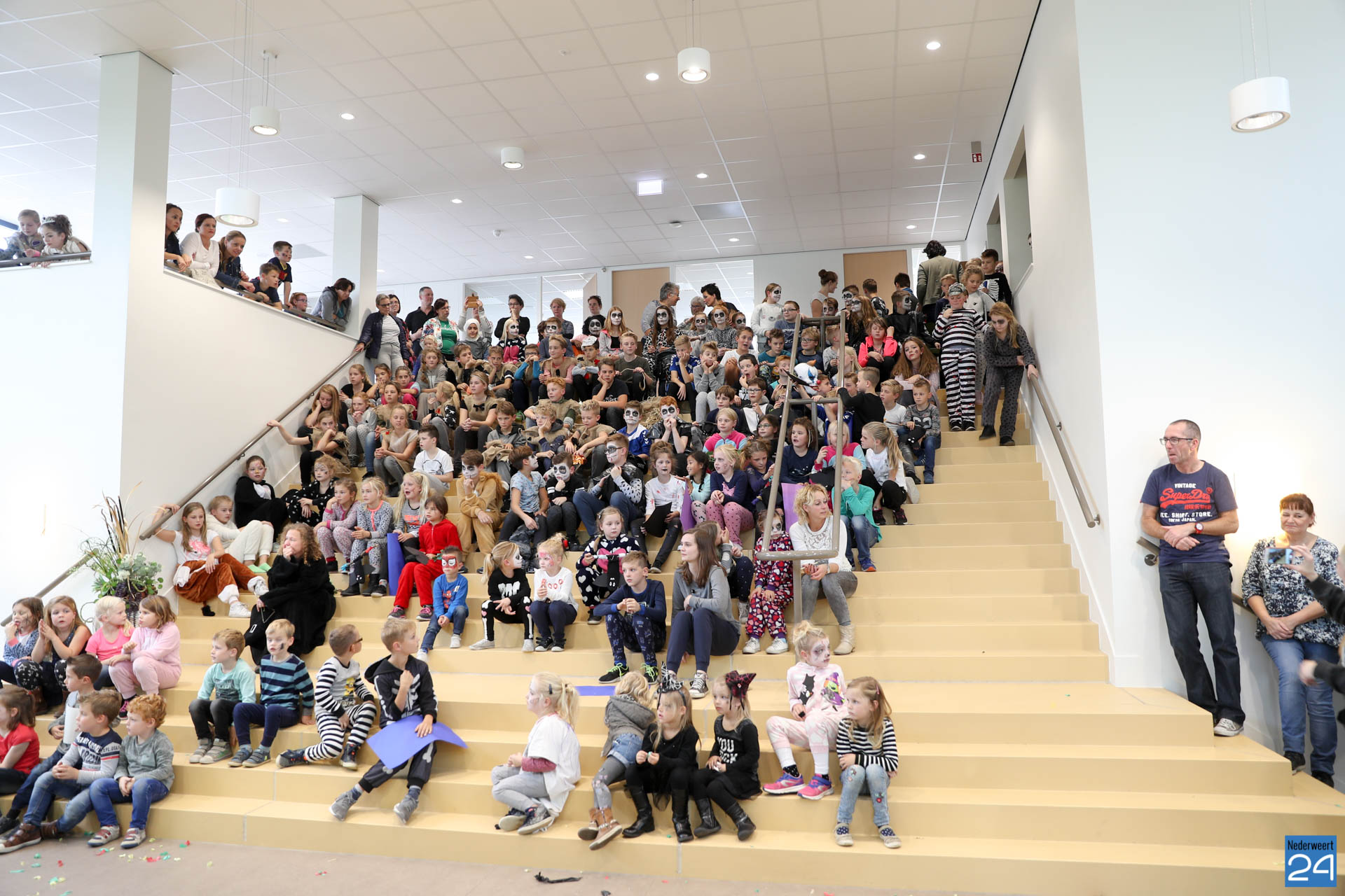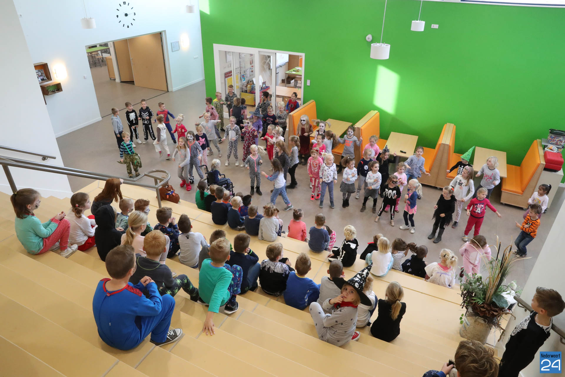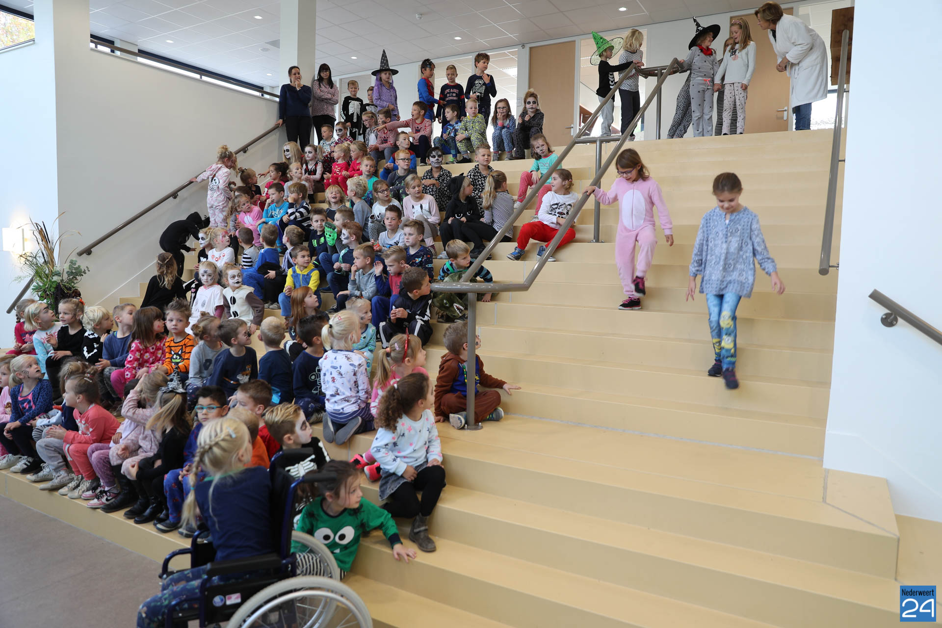 De groepen 2 t/m 4 sloten de Kinderboekenweek af door te showen hoe ze waren verkleed en samen het dansje te dansen van de Kinderboekenweek. Ook bij de bovenbouw hebben ze de laatste weken gewerkt aan het thema: Gruwelijk eng! Vandaag slot de Bovenbouw voor het eerst af met een periodesluiting waarin ze aan andere groepen en ouders presenteren wat ze hebben gemaakt, geleerd en gedaan. Natuurlijk waren ze allemaal schitterend verkleed en maakten ze er samen een feestje van. Verschillende optredens passeerden de revue. Groep 6 had een toneelstukje voorbereid en groep 5 zong een lied, misschien wel het toekomstige “schoollied“.