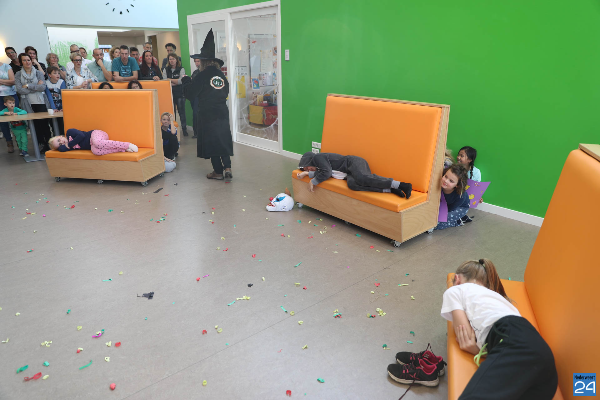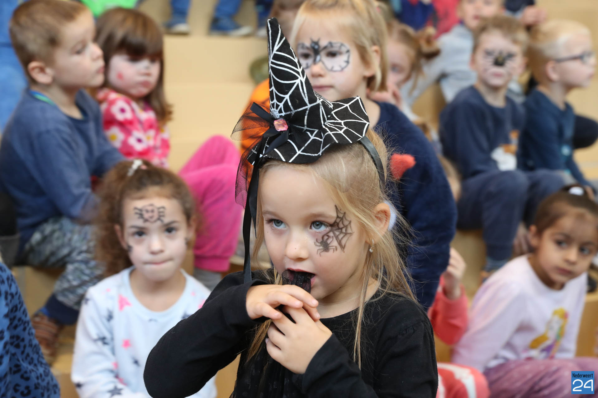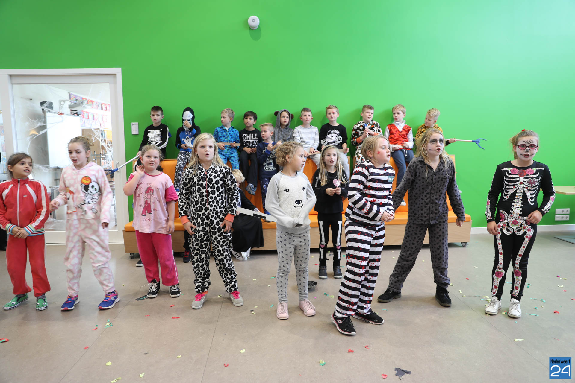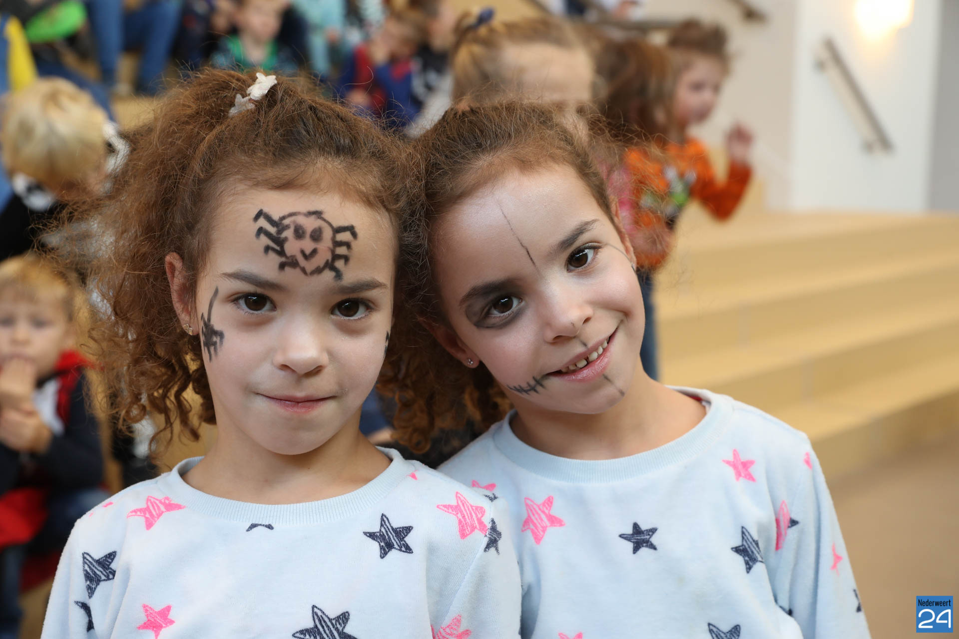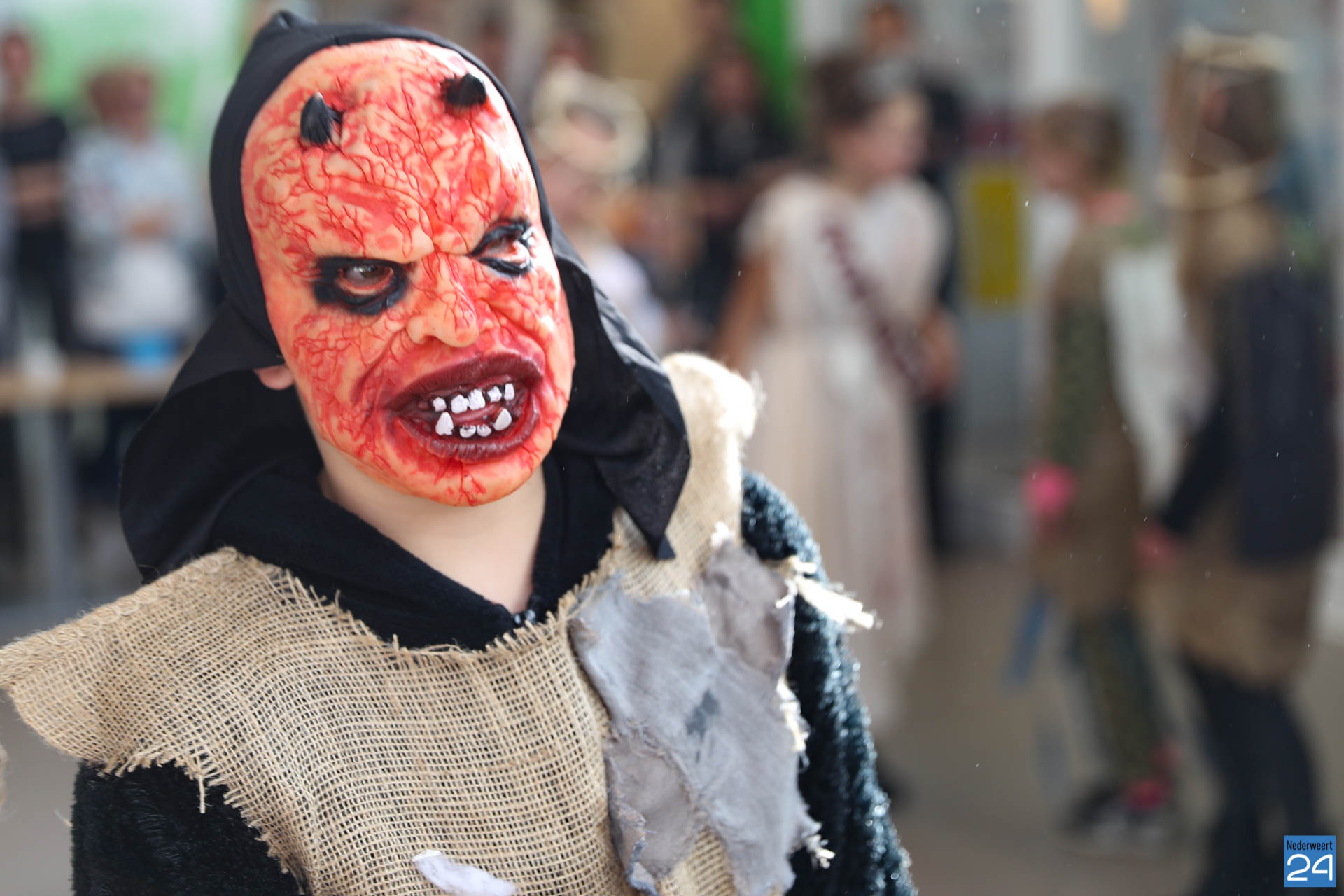 De groepen 2 t/m 4 sloten de Kinderboekenweek af door te showen hoe ze waren verkleed en samen het dansje te dansen van de Kinderboekenweek. Ook bij de bovenbouw hebben ze de laatste weken gewerkt aan het thema: Gruwelijk eng! Vandaag slot de Bovenbouw voor het eerst af met een periodesluiting waarin ze aan andere groepen en ouders presenteren wat ze hebben gemaakt, geleerd en gedaan. Natuurlijk waren ze allemaal schitterend verkleed en maakten ze er samen een feestje van. Verschillende optredens passeerden de revue. Groep 6 had een toneelstukje voorbereid en groep 5 zong een lied, misschien wel het toekomstige “schoollied“.