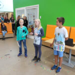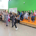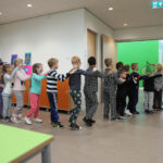 De groepen 2 t/m 4 sloten de Kinderboekenweek af door te showen hoe ze waren verkleed en samen het dansje te dansen van de Kinderboekenweek. Ook bij de bovenbouw hebben ze de laatste weken gewerkt aan het thema: Gruwelijk eng! Vandaag slot de Bovenbouw voor het eerst af met een periodesluiting waarin ze aan andere groepen en ouders presenteren wat ze hebben gemaakt, geleerd en gedaan. Natuurlijk waren ze allemaal schitterend verkleed en maakten ze er samen een feestje van. Verschillende optredens passeerden de revue. Groep 6 had een toneelstukje voorbereid en groep 5 zong een lied, misschien wel het toekomstige “schoollied“.