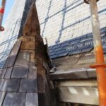 - Aansluiting van de trappentoren aan de toren , hout en lood vervangen.