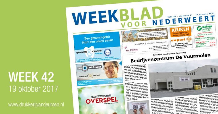 Lees elke week het Weekblad voor Nederweert van Drukkerij van Deursen online op Nederweert24. Klik hier om het “Weekblad voor Nederweert” op je mobiel te lezen.