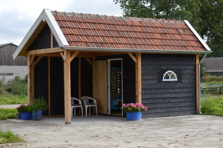 Op de boerderij aan de Houtsberg 23 in Leveroy kun je de producten kopen, maar kun je ook rauwe melk via een ‘melktap‘ krijgen. Beide staan in een nieuwe, kleine, kapschuur naast de weg.