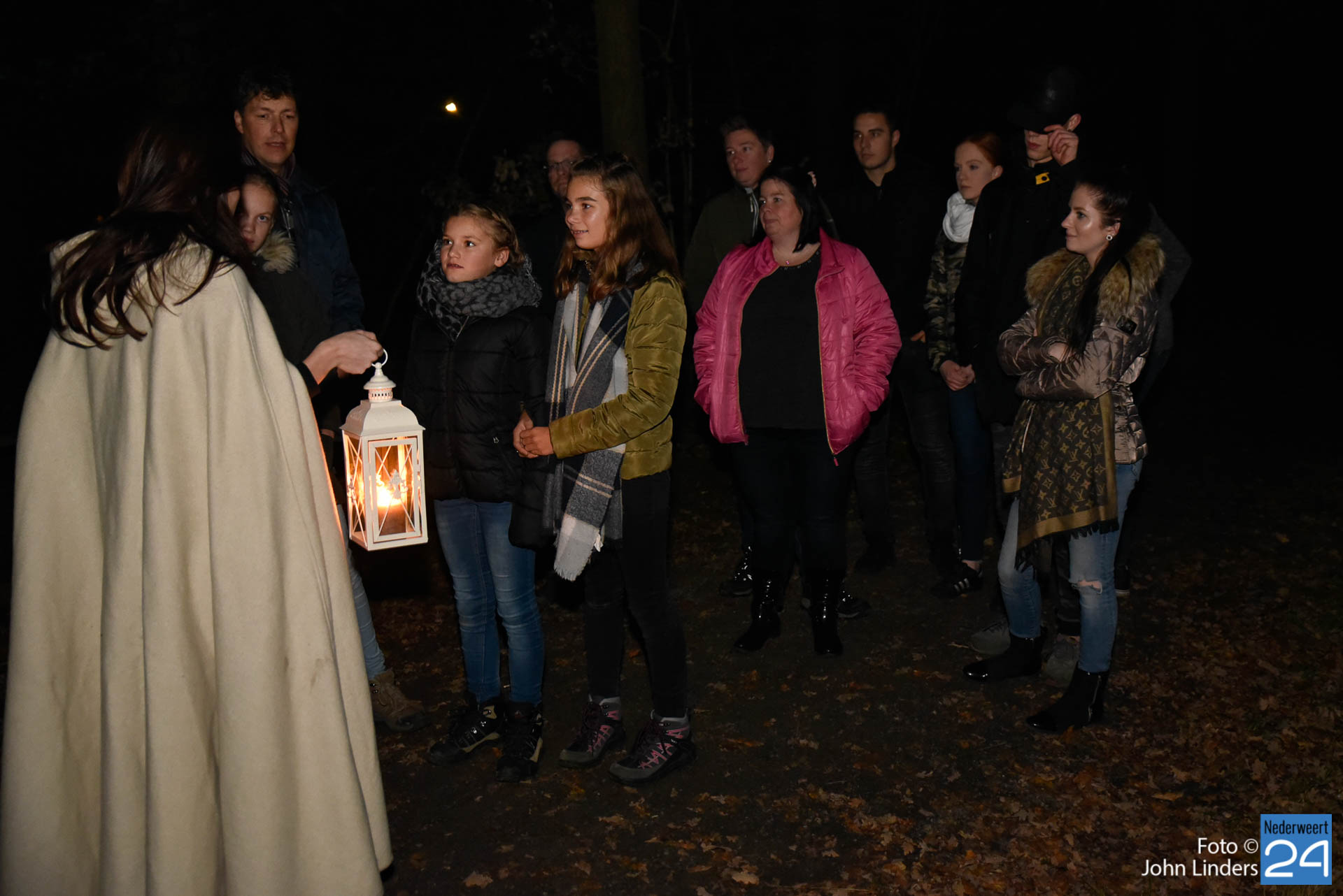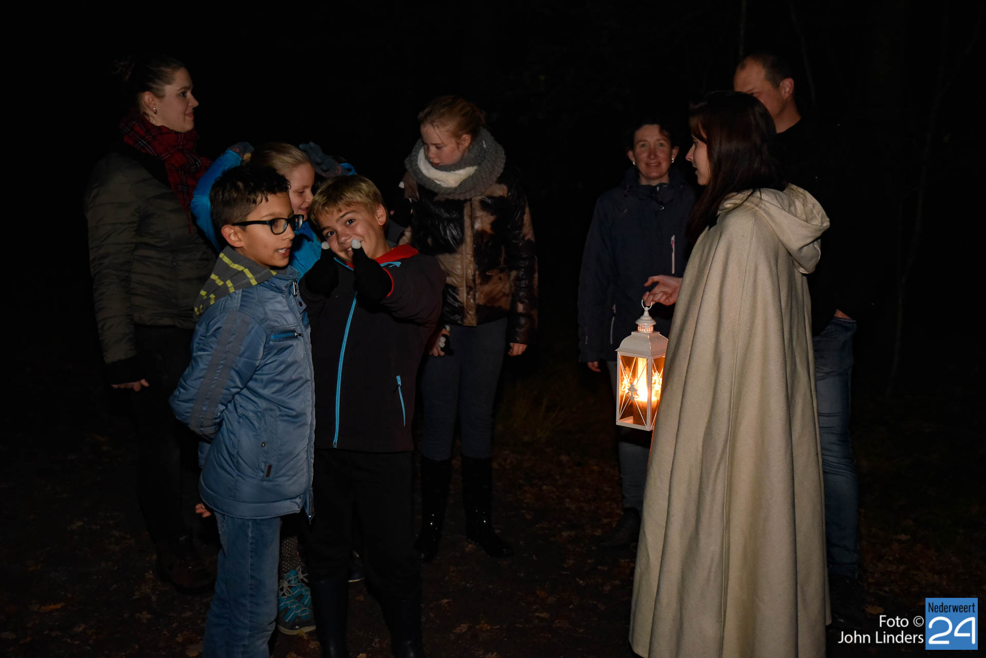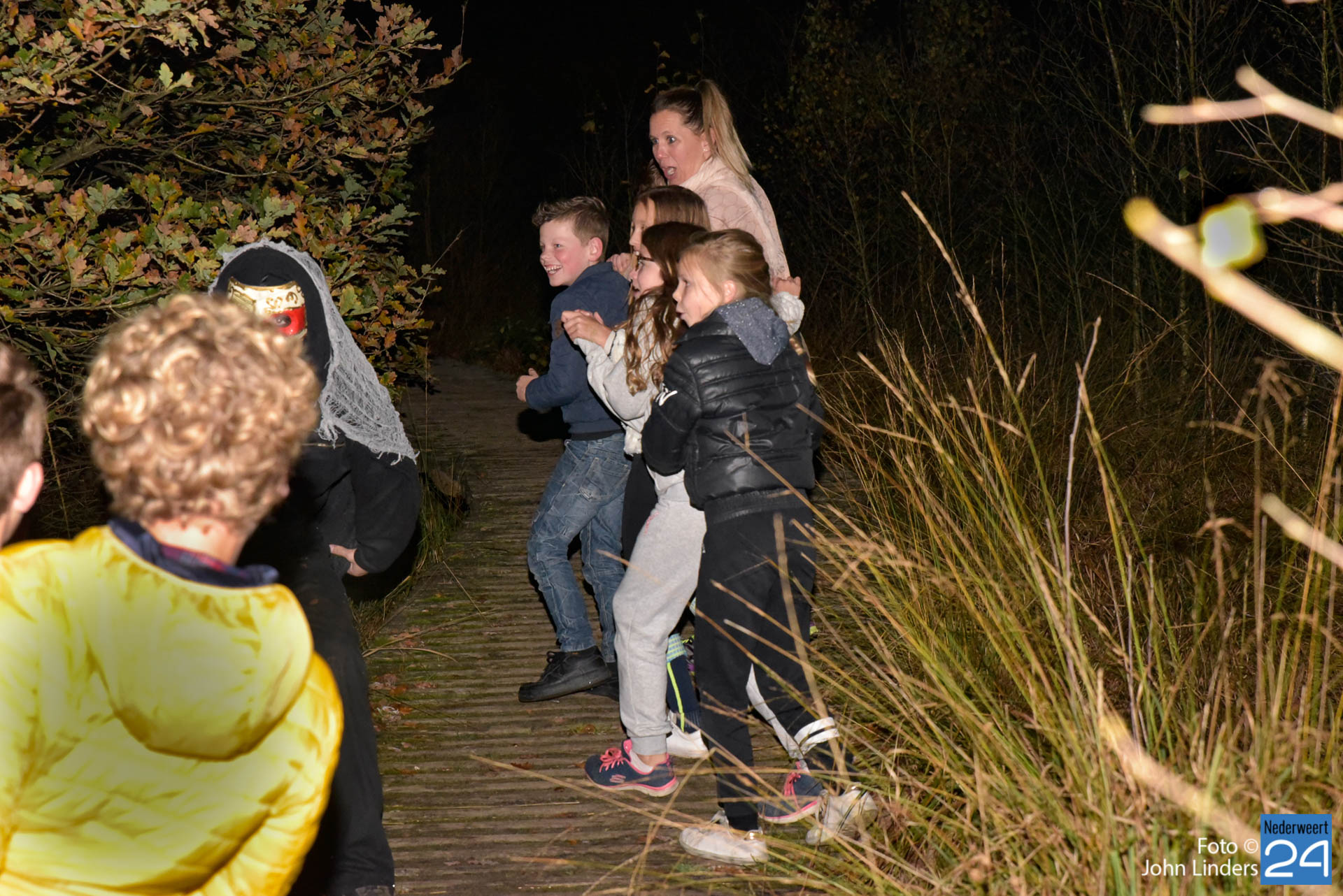 Deze woorden waren het einde van het verhaal en de start van een spannende Halloweentocht vrijdagavond in De Groote Peel. Verhalenvertelster Lisette Oosterbosch (vertelclub Verve uit Veldhoven) kreeg de deelnemers op het puntje van hun stoel. Zelfs de stoerste jongens vonden het toch wel spannend toen ze buiten bij het Buitencentrum werden opgewacht door twee donkere schimmen die hun het donker in stuurden. Sommige deelnemers besloten zelfs liever veilig binnen te blijven. Jammer, want ze hebben een mooie tocht gemist.