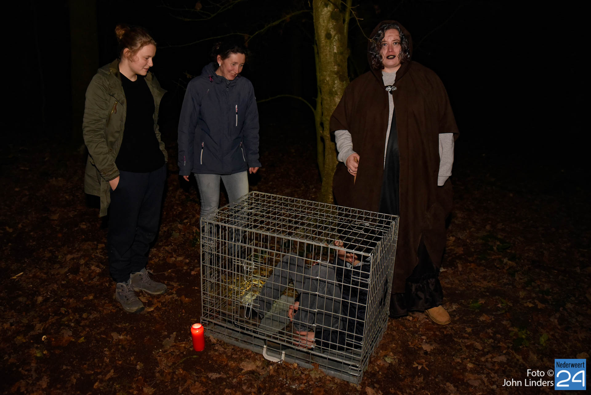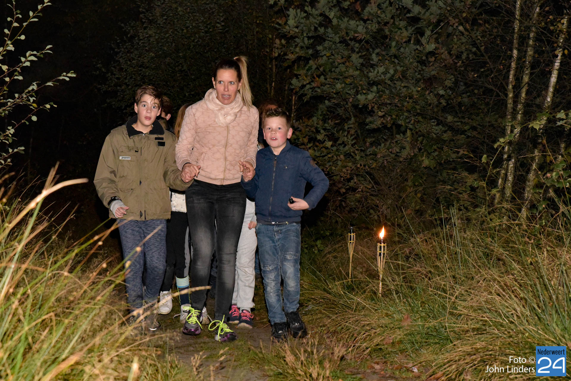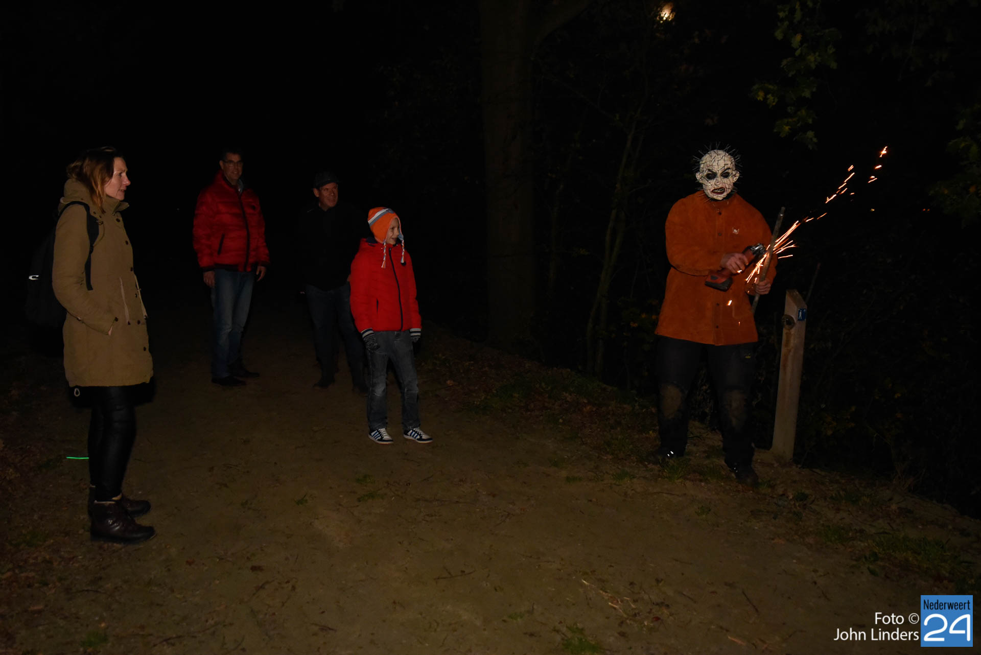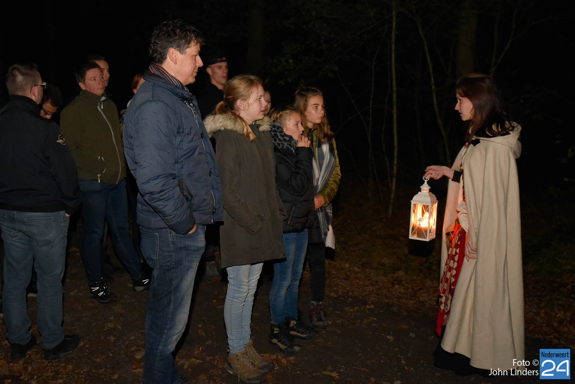 Deze woorden waren het einde van het verhaal en de start van een spannende Halloweentocht vrijdagavond in De Groote Peel. Verhalenvertelster Lisette Oosterbosch (vertelclub Verve uit Veldhoven) kreeg de deelnemers op het puntje van hun stoel. Zelfs de stoerste jongens vonden het toch wel spannend toen ze buiten bij het Buitencentrum werden opgewacht door twee donkere schimmen die hun het donker in stuurden. Sommige deelnemers besloten zelfs liever veilig binnen te blijven. Jammer, want ze hebben een mooie tocht gemist.