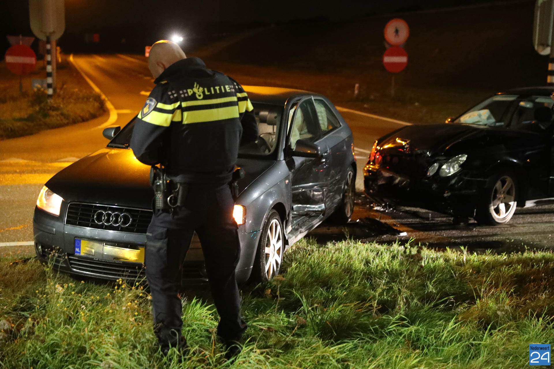 Zondagavond zijn twee auto’s met elkaar in botsing gekomen op de kruising Ringbaan Noord met de afrit van de A2 bij Nederweert.