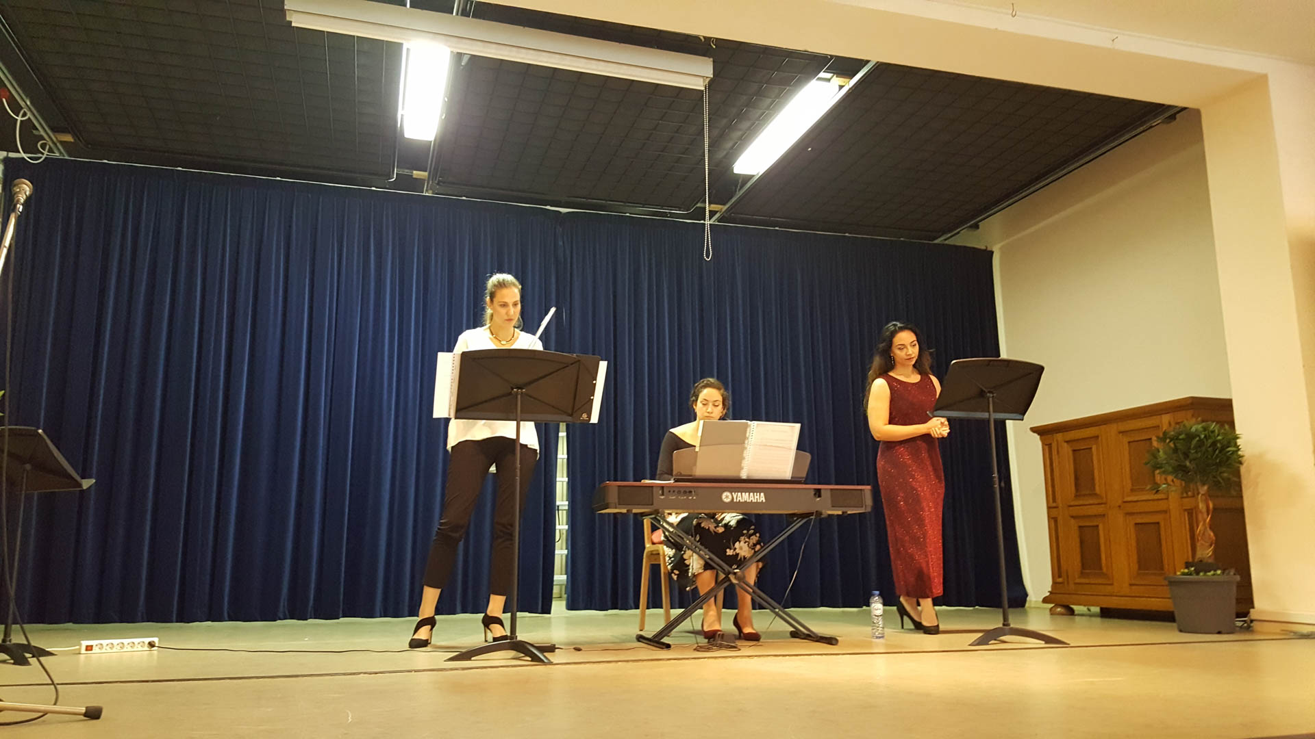 Voor de pauze was het de beurt aan een internationaal gezelschap, bestaande uit de Griekse sopraan Nina Basdras, fluitiste Vicky Sapouna en de Spaanse pianiste Pilar Solsona Sanches. Het trio heeft zich gespecialiseerd in een verscheidenheid van muziek van de Barok, dit langs de Romantische Franse componisten tot beroemde opera melodieën en wereldmuziek.