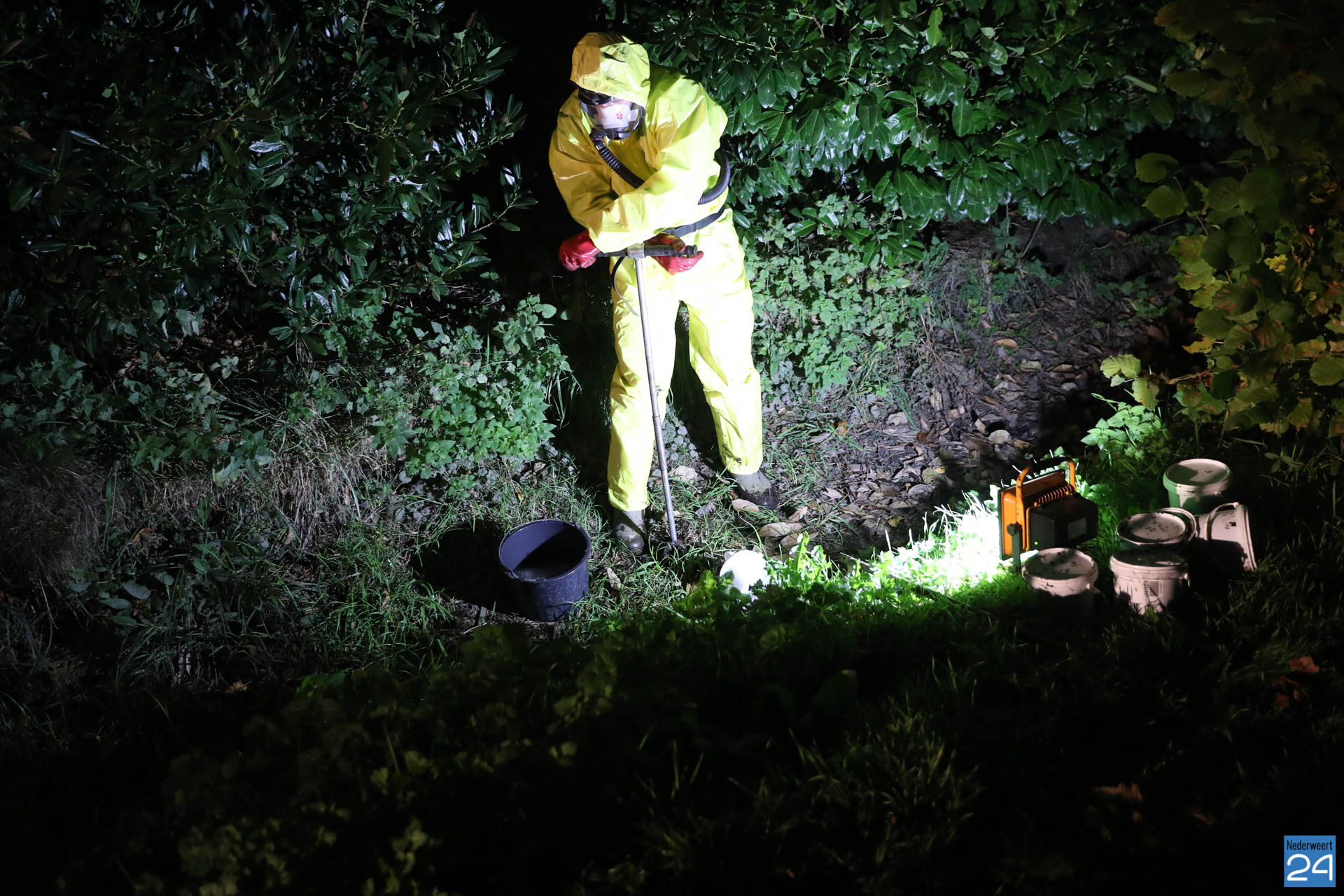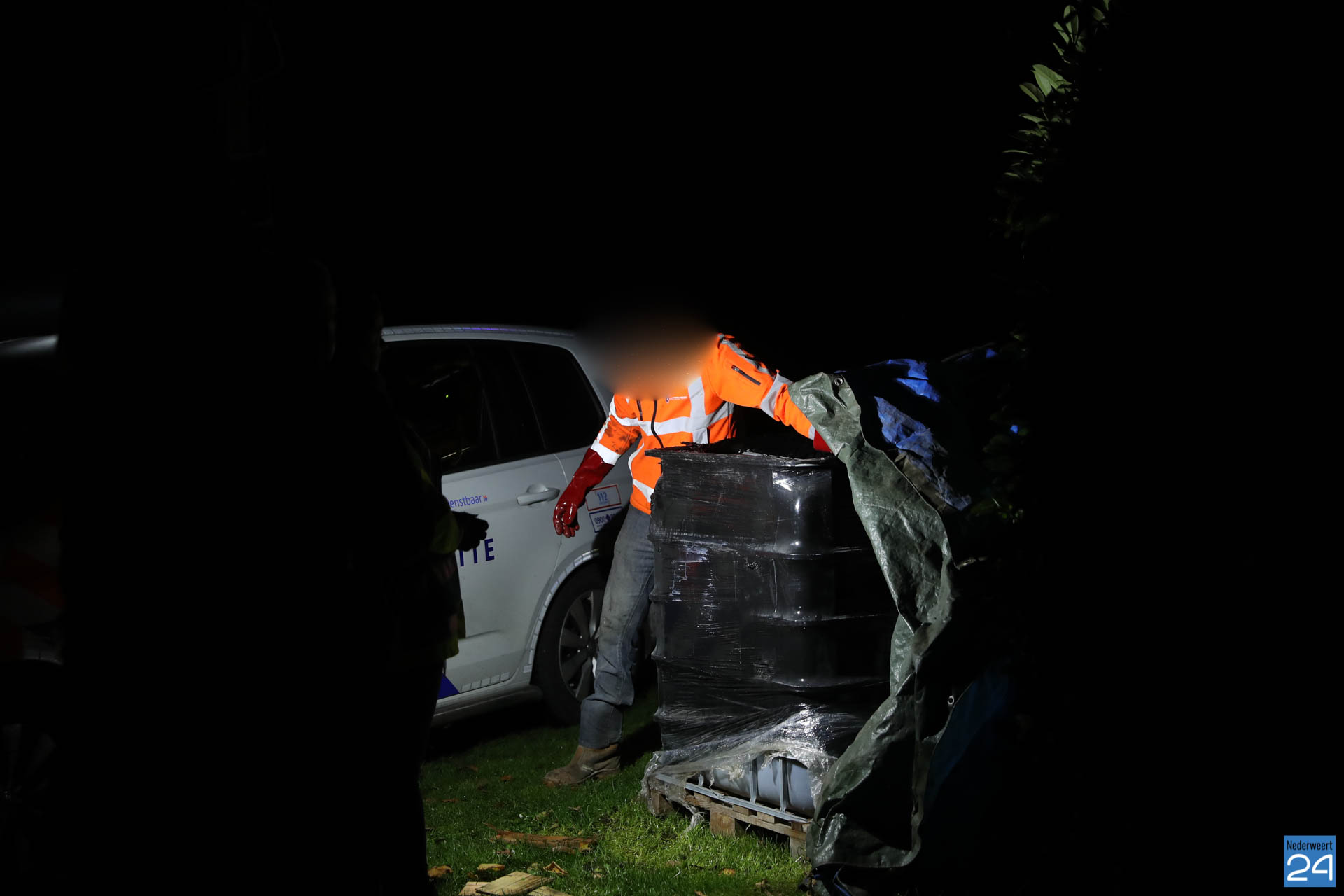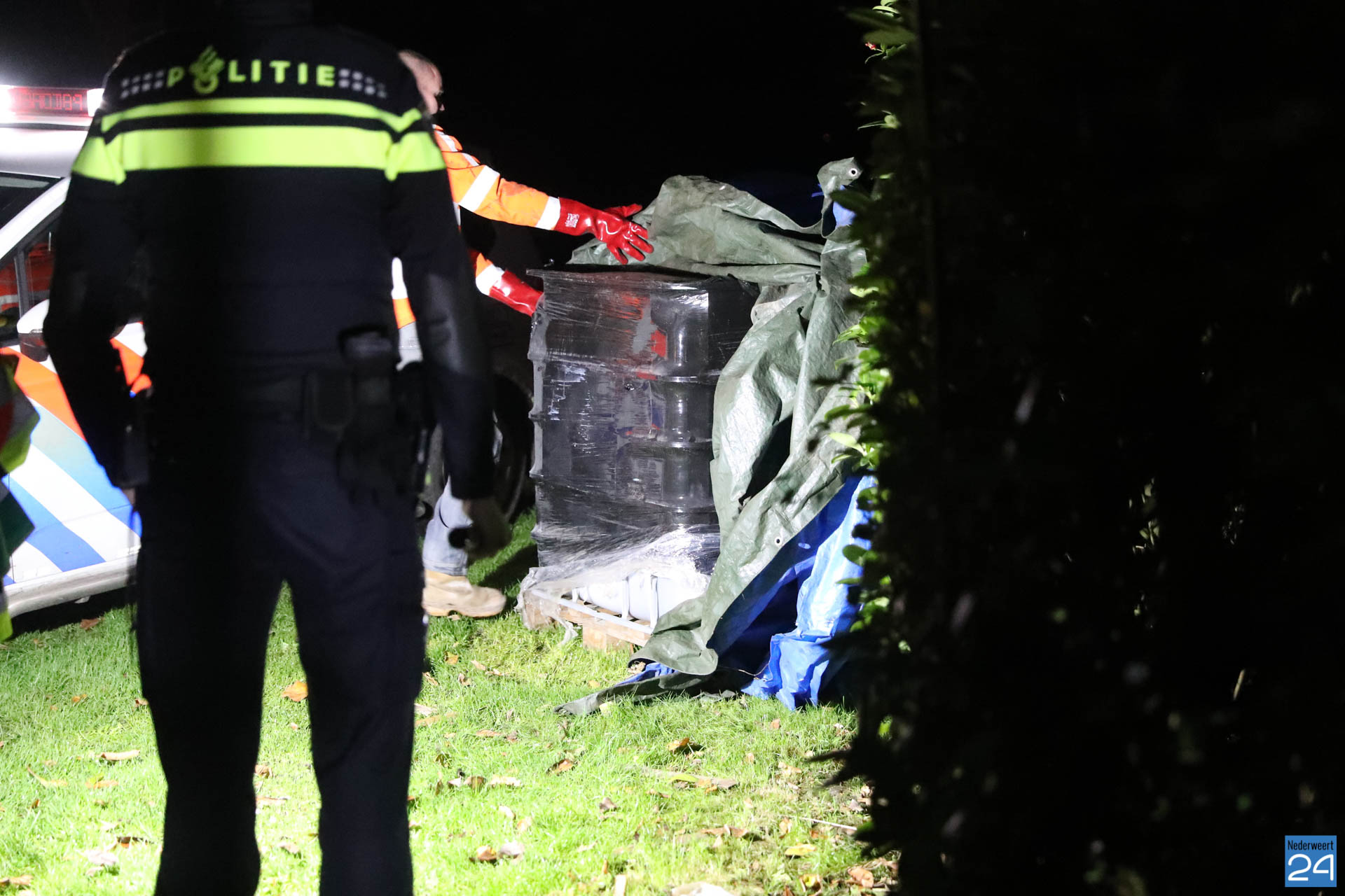 Bij de politie was even voor twee uur een tip over de verdachte locatie binnengekomen. Samen met een medewerker van de gemeente zijn ze gaan kijken naar de plek. Op het terrein werden drie verdachte vaten aangetroffen en een pomp met slang waar een penetrante geur vanaf kwam.