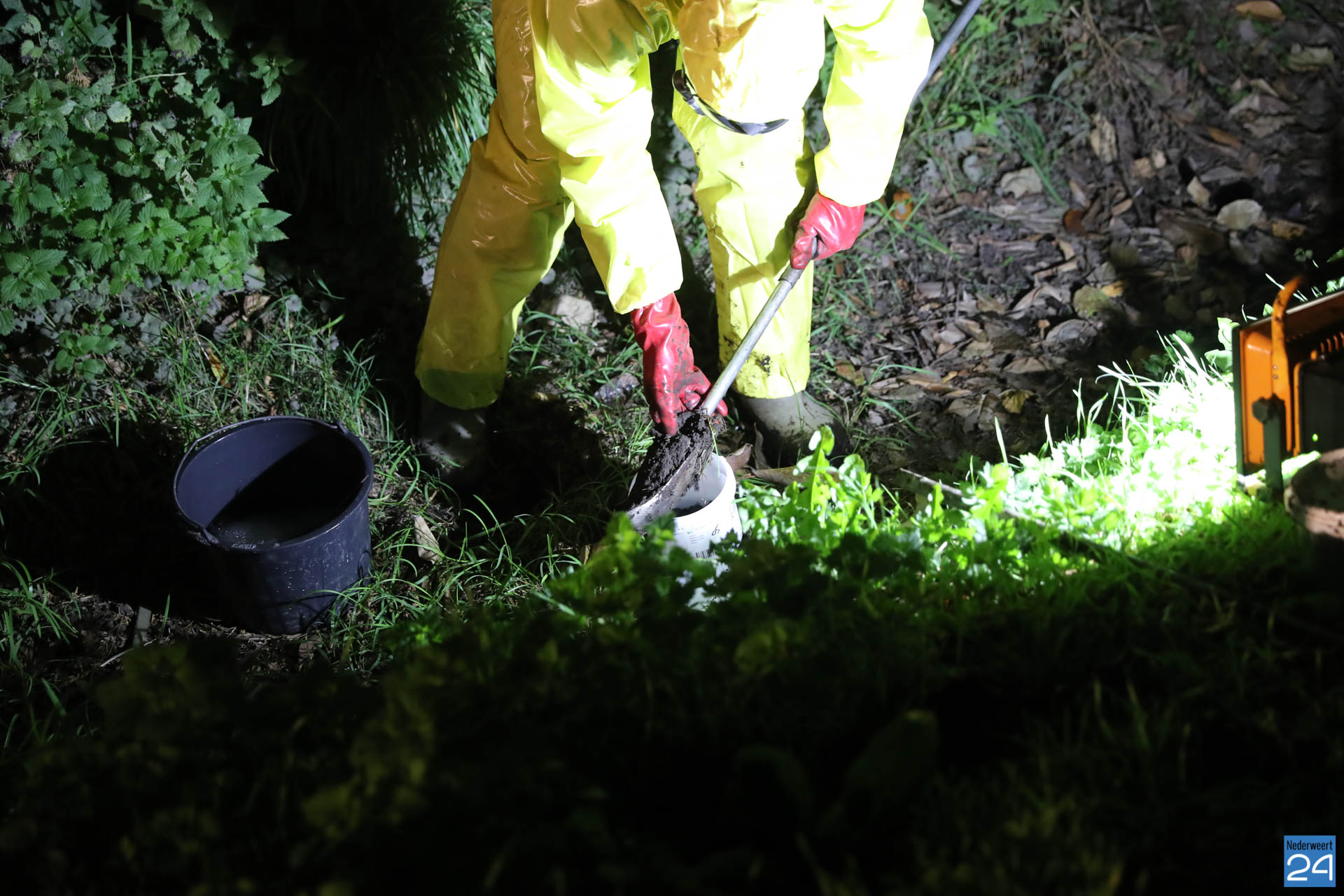 Omdat in de naast gelegen sloot een paar dode varens stonden, werd een bedrijf ingeschakeld om monsters uit te sloot te nemen om vast te kunnen stellen of er mogelijk ook afval in de sloot zou zijn gedumpt. De vaten zijn daarna veiliggesteld en afgevoerd.