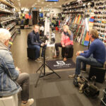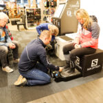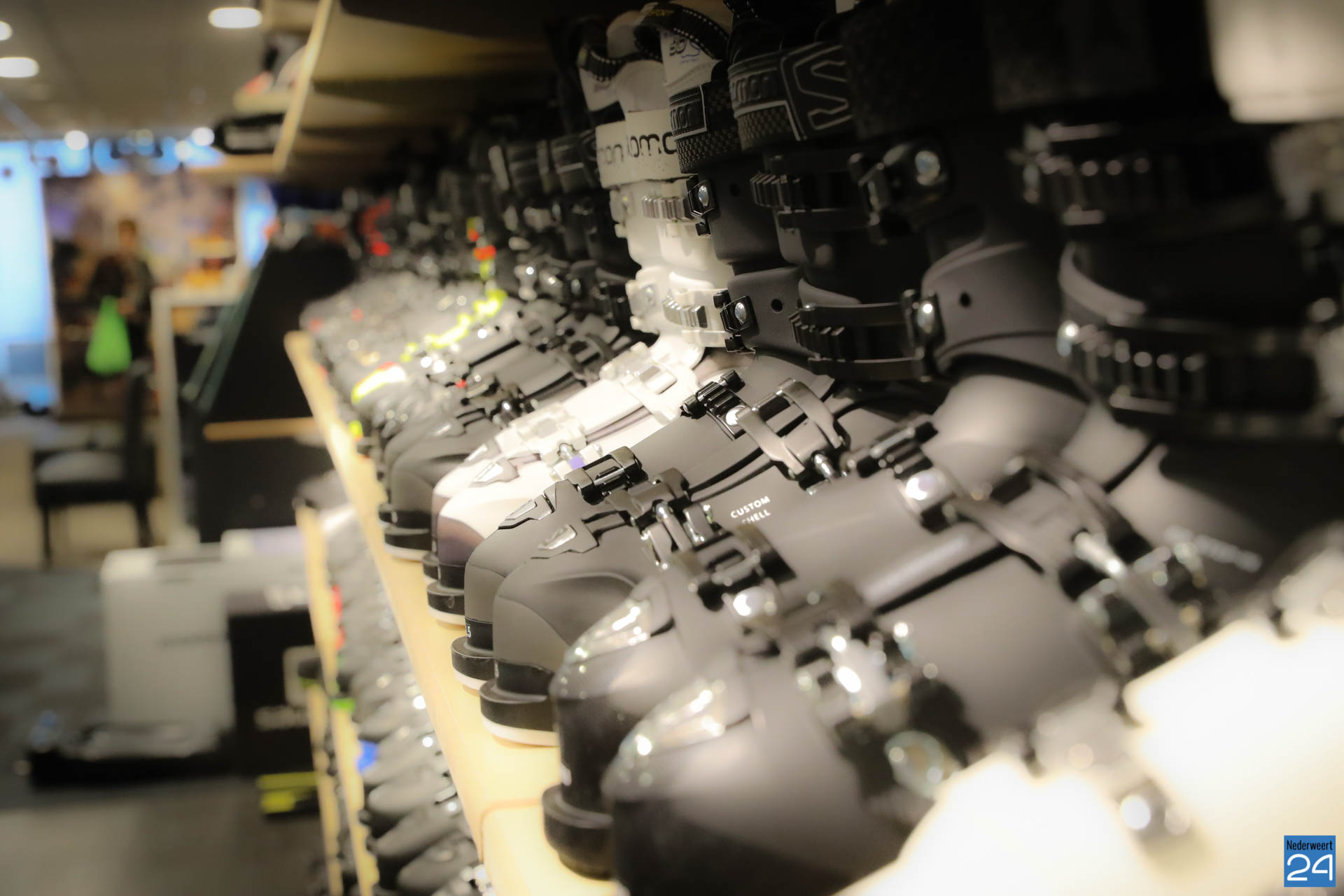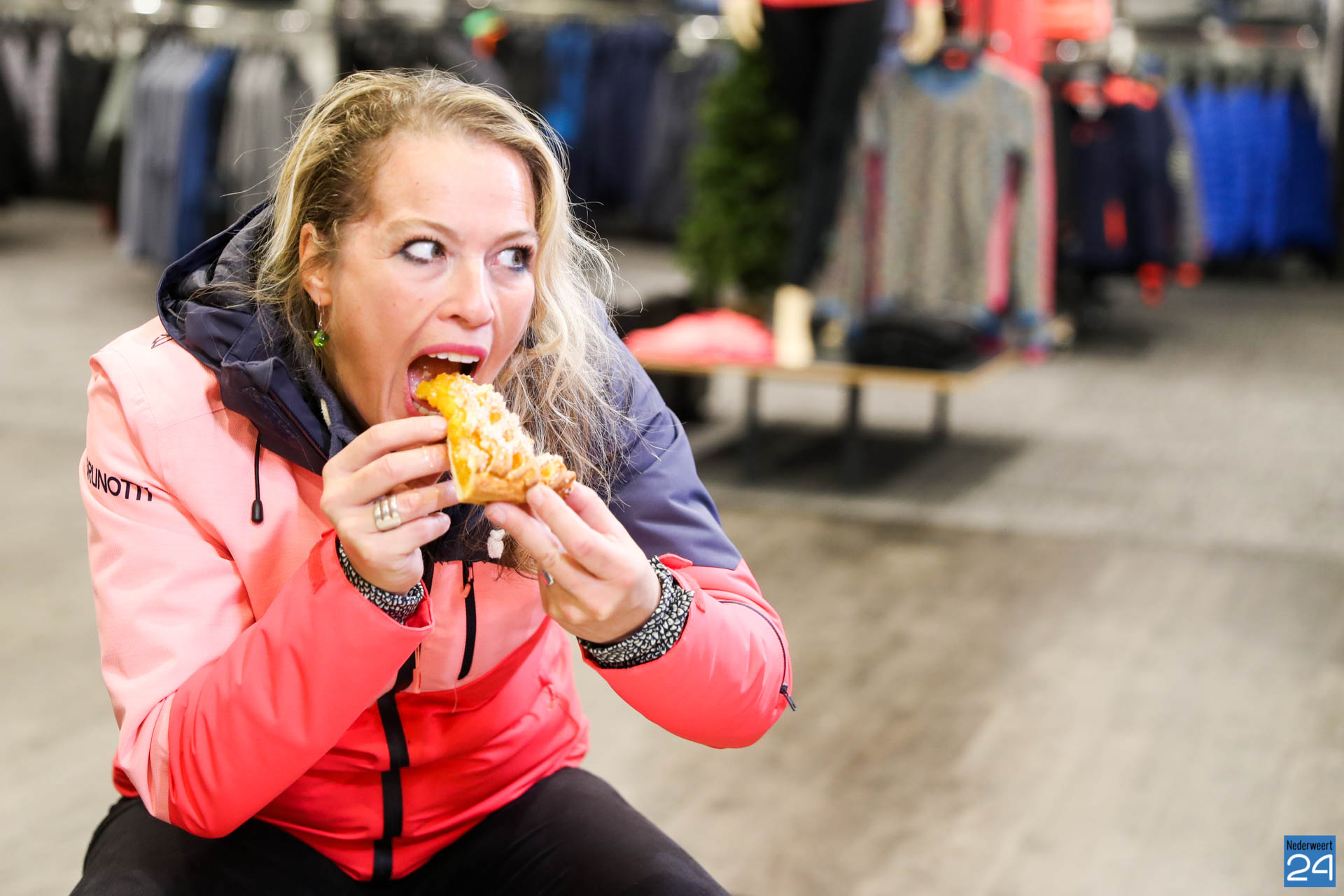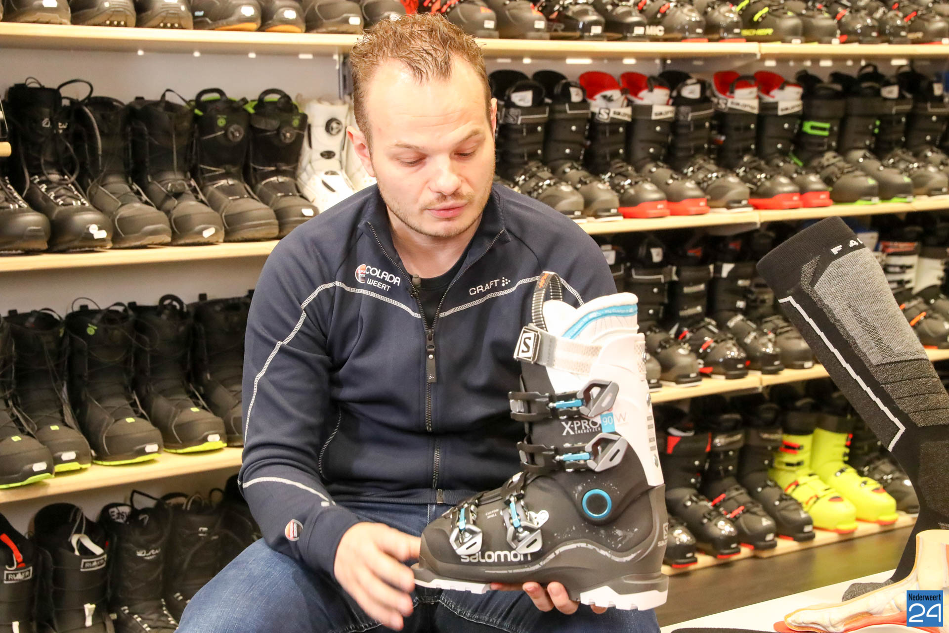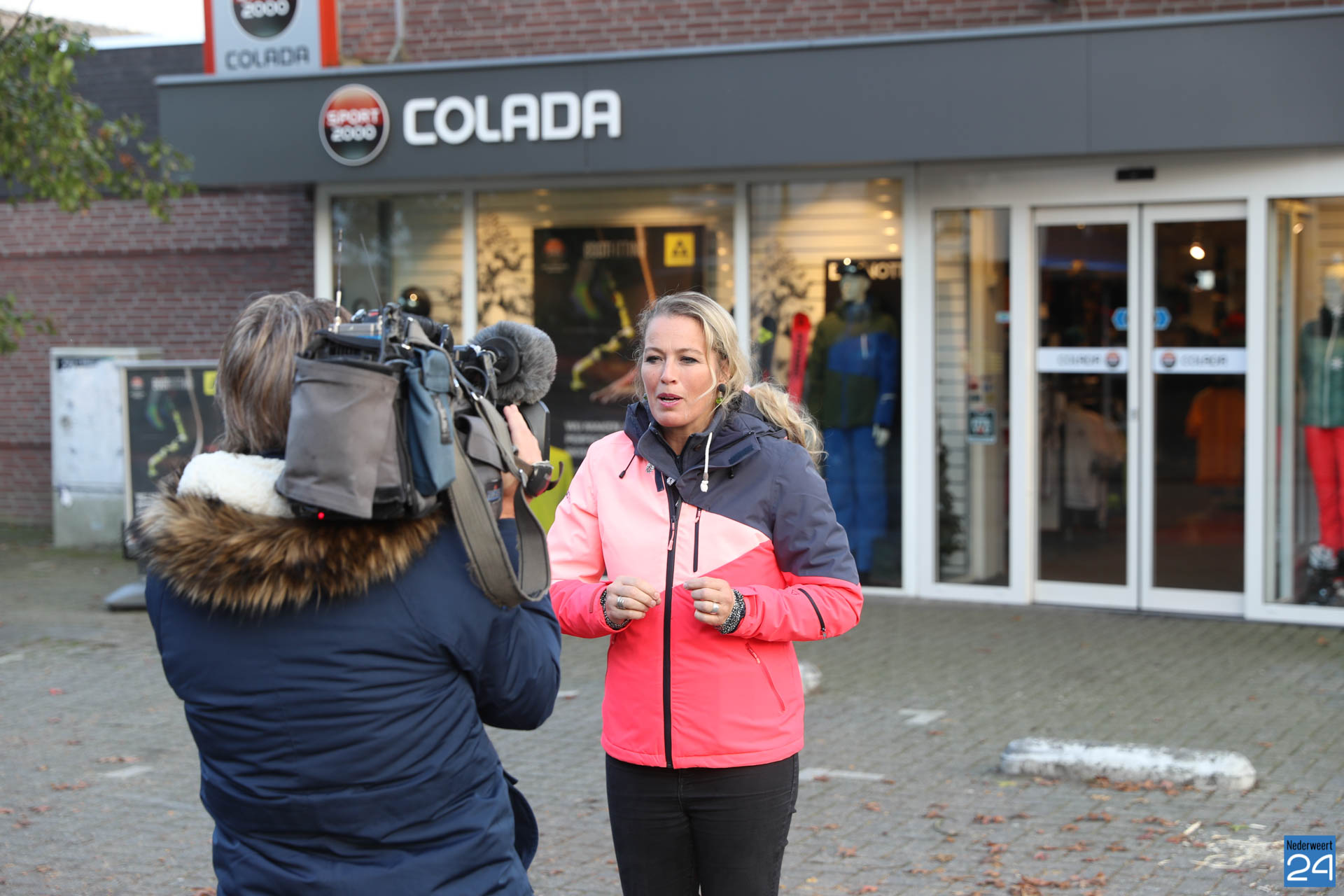 Sophie van Hoytema met het team van RTL SnowMagazine bezocht wintersportspecialist Colada in Weert voor de opname van een item over de laatste ontwikkelingen op het gebied van wintersport.