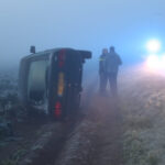 De bestuurster reed vanuit Kelpen-Oler richting de Rijksweg (N280) Door de zeer dichte mist zag ze een bocht over het hoofd en is in de slip geraakt. De auto kwam op zijn kant, achterstevoren tot stilstand.