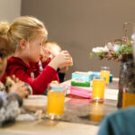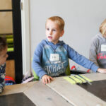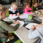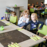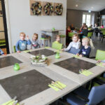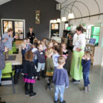 Vandaag gingen ze met de huifkar van Minicamping De Riet naar Ons Boerenerf in Nederweert. Ze werden eerst netjes ontvangen door de eigenaressen van het restaurant, Saskia. Daarna gingen ze samen in de keuken verse broodjes maken voor de directeuren van Meerdeweert die daar ‘toevallig‘ een vergadering met lunch hadden. Natuurlijk werd de tafel eerst netjes gedekt met servetten, messen, vorken en lepels. Als afsluiting mochten de leerlingen hun eigen ‘koksmuts‘ maken.