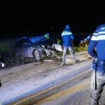 De weg is afgesloten voor het verkeer. Een team van de Verkeers Ongevallenanalyse komt ter plaatse om de oorzaak van het ongeval te onderzoeken.