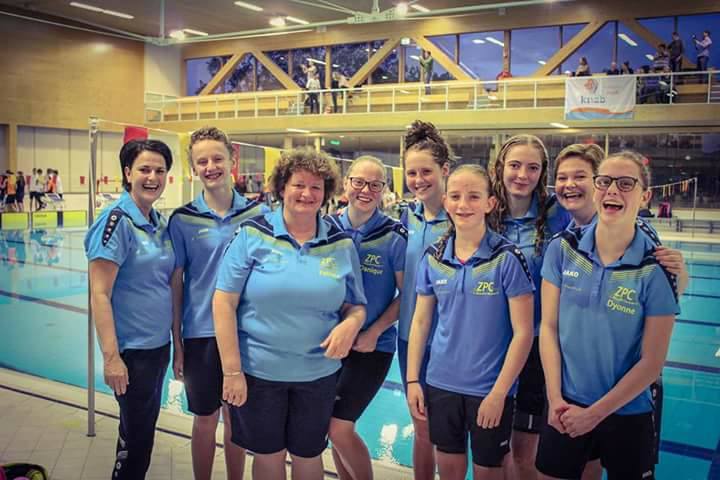 Het toernooi werd afgesloten met de 4x 100 meter wisselslag estafette. De dames Danique, Solenn, Rachelle en Dyonne wisten er een prachtige race van te maken waarbij ze nog één keer al hun energie gaven. Een spetterend einde van een zeer succesvol toernooi waar alle deelnemers met veel trots op terug mogen kijken.