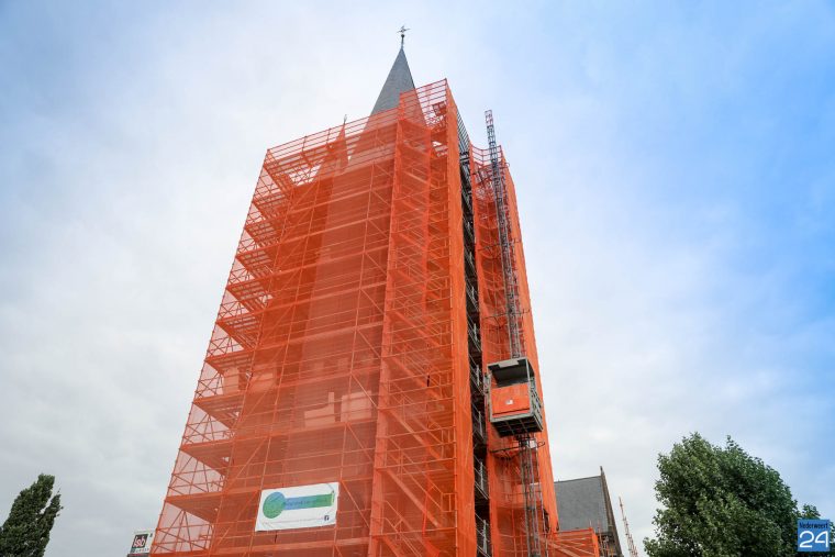 Het ziet er naar uit dat vanaf woensdag 13 december het steiger rond de kerktoren afgebroken wordt. Eerst worden nog enkele loodslabben aangebracht, de wijzers en wijzerplaten van de kerkklok teruggeplaatst en duivenwering aangebracht voor de galmgaten en op enkele mergelranden. En na het slopen van het steiger dient het voegwerk bij de kerkingang nog te gebeuren.