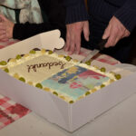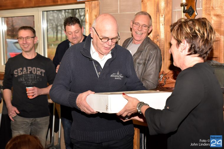 Een nieuwe outfit vond Henk dan wel op zijn plaats en dat was dan ook zijn voorwaarde. “Henk na 45 jaar geef je het stokje, de staf over aan iemand anders. Namens alle kinderen, tieners, twintigers, dertigers, veertigers, vijftigers en alle inwoners en oud inwoners van Ospeldijk een heel dikke MERCI voor al die geweldige jaren dat je er voor ons was.” Vanmiddag werd stil gestaan bij dit afscheid. Leden van het comité en vele oud leden kwamen Henk begroeten. Mirjan las een toepasselijk gedicht voor waarna er een overheerlijke taart werd overhandigd.