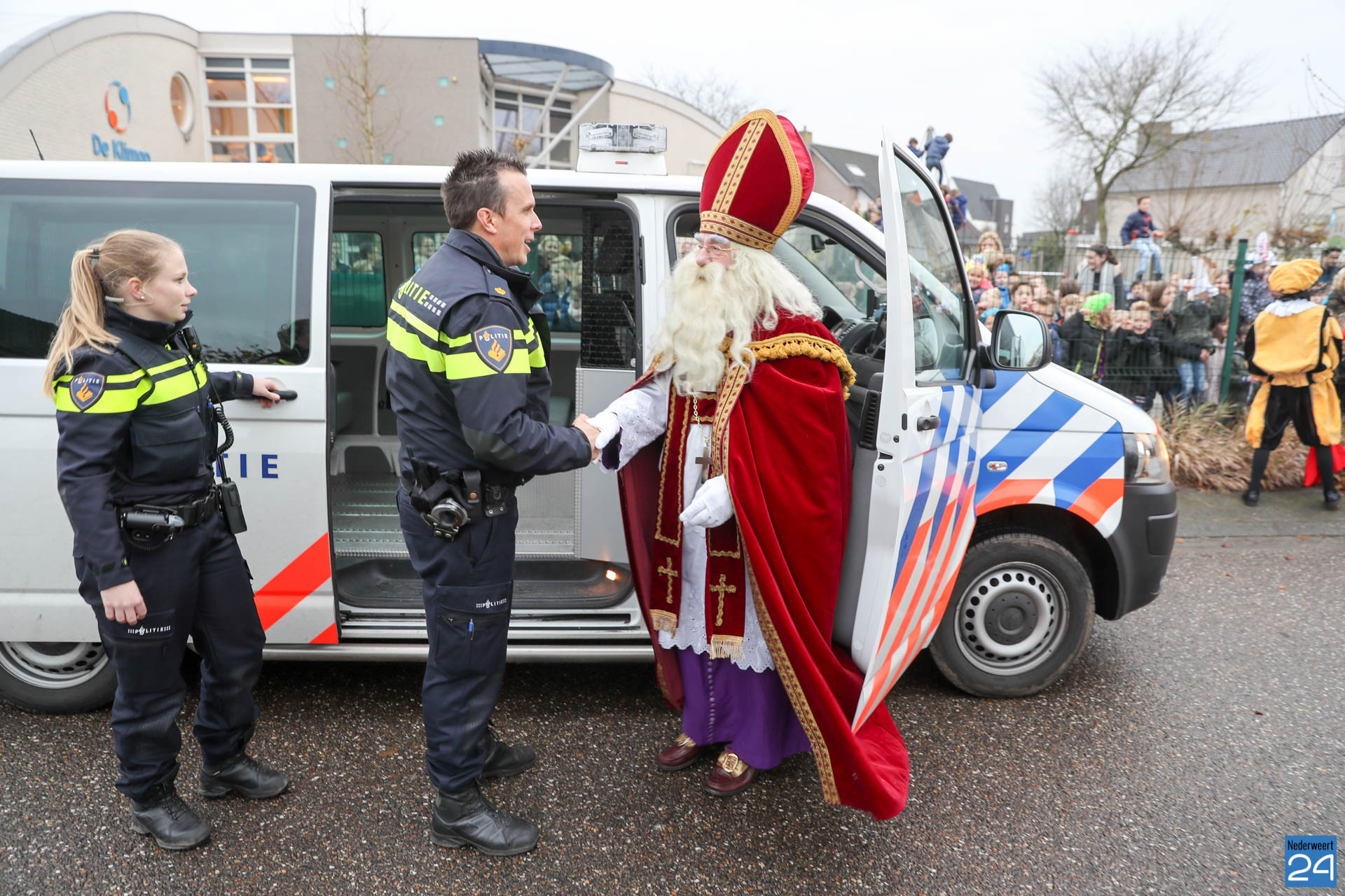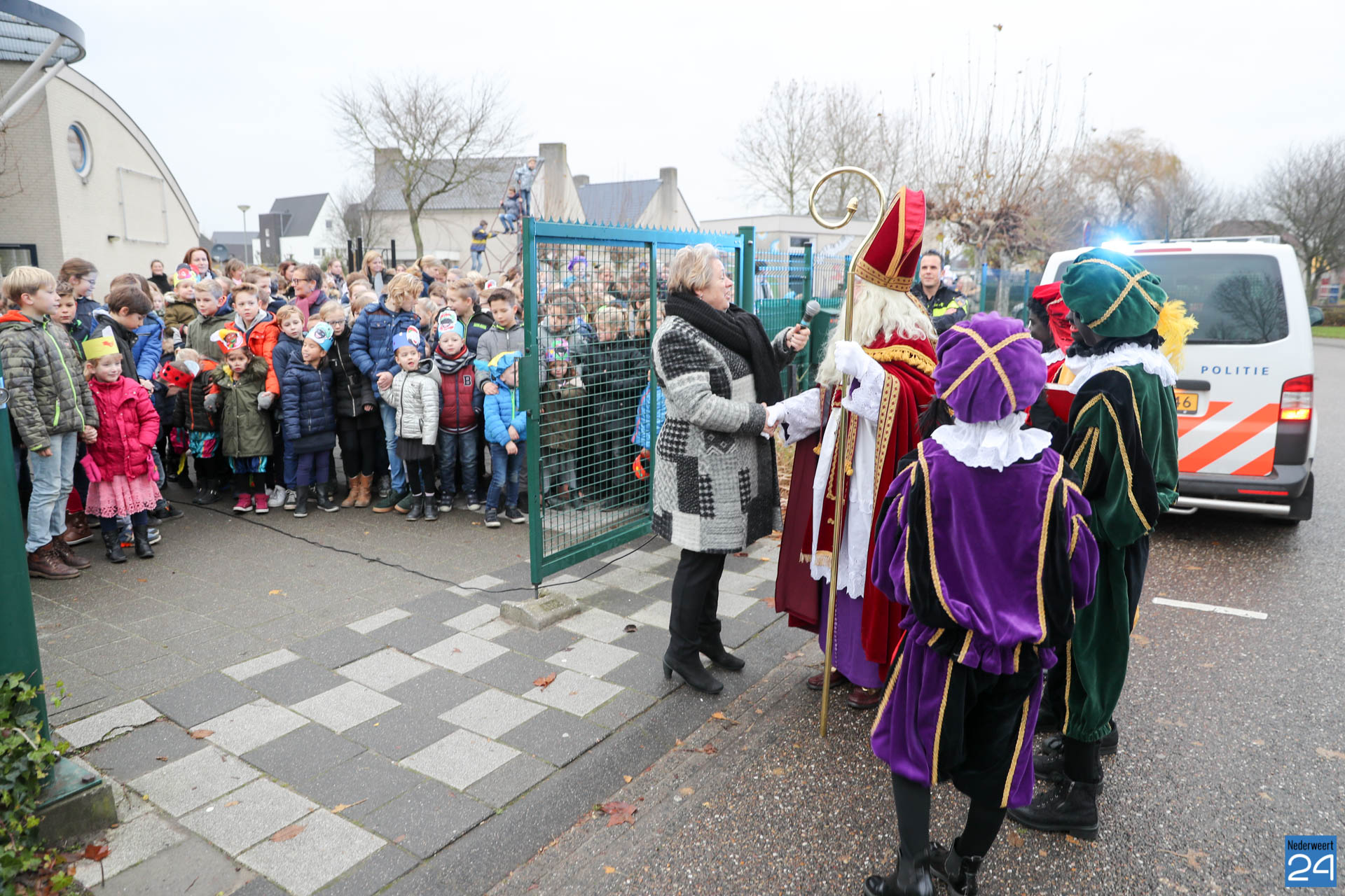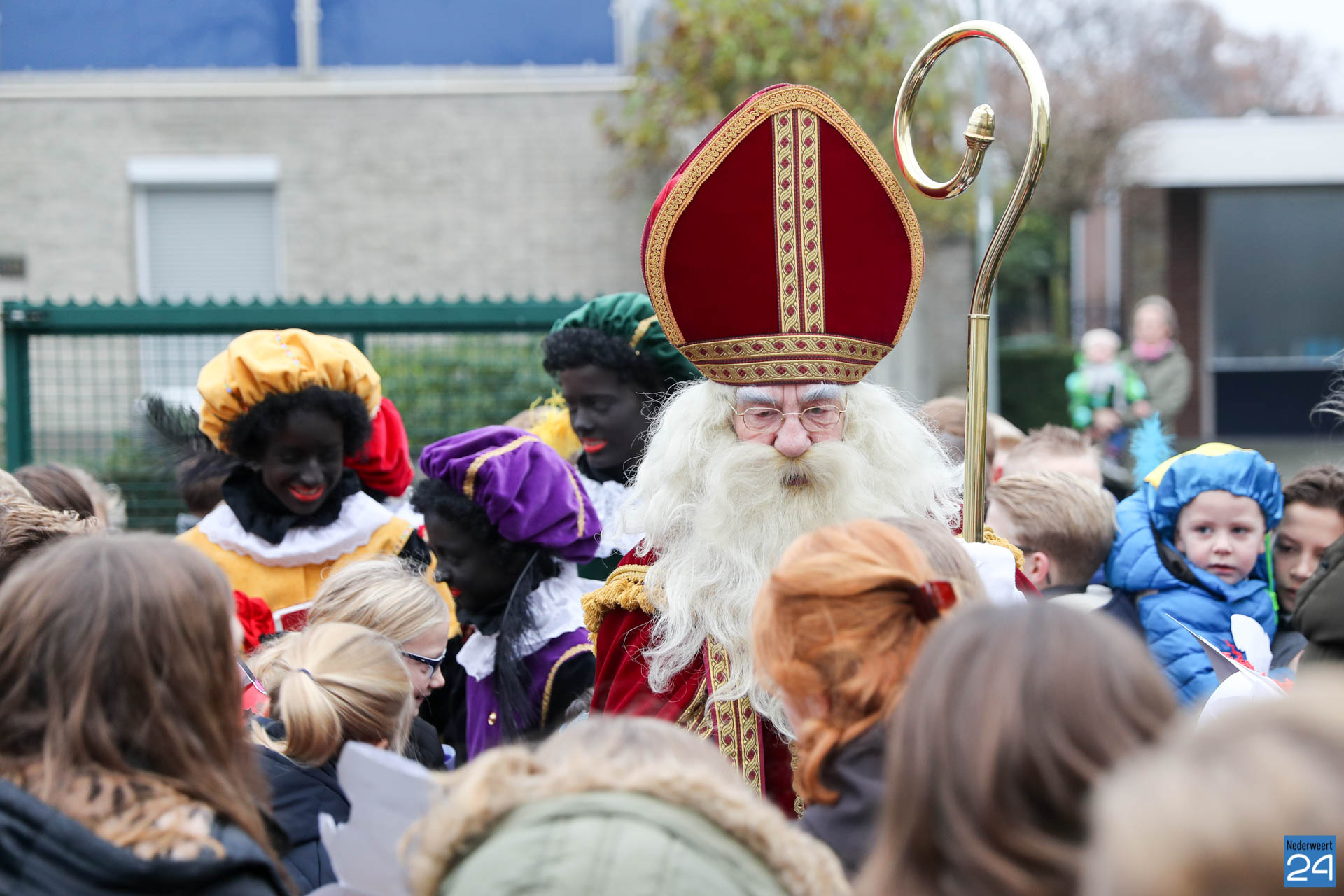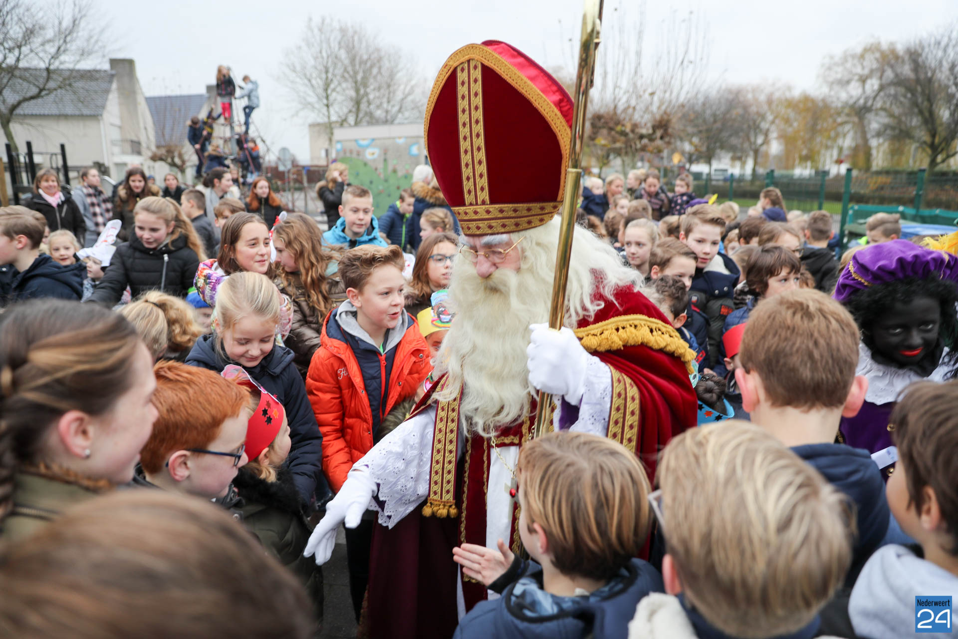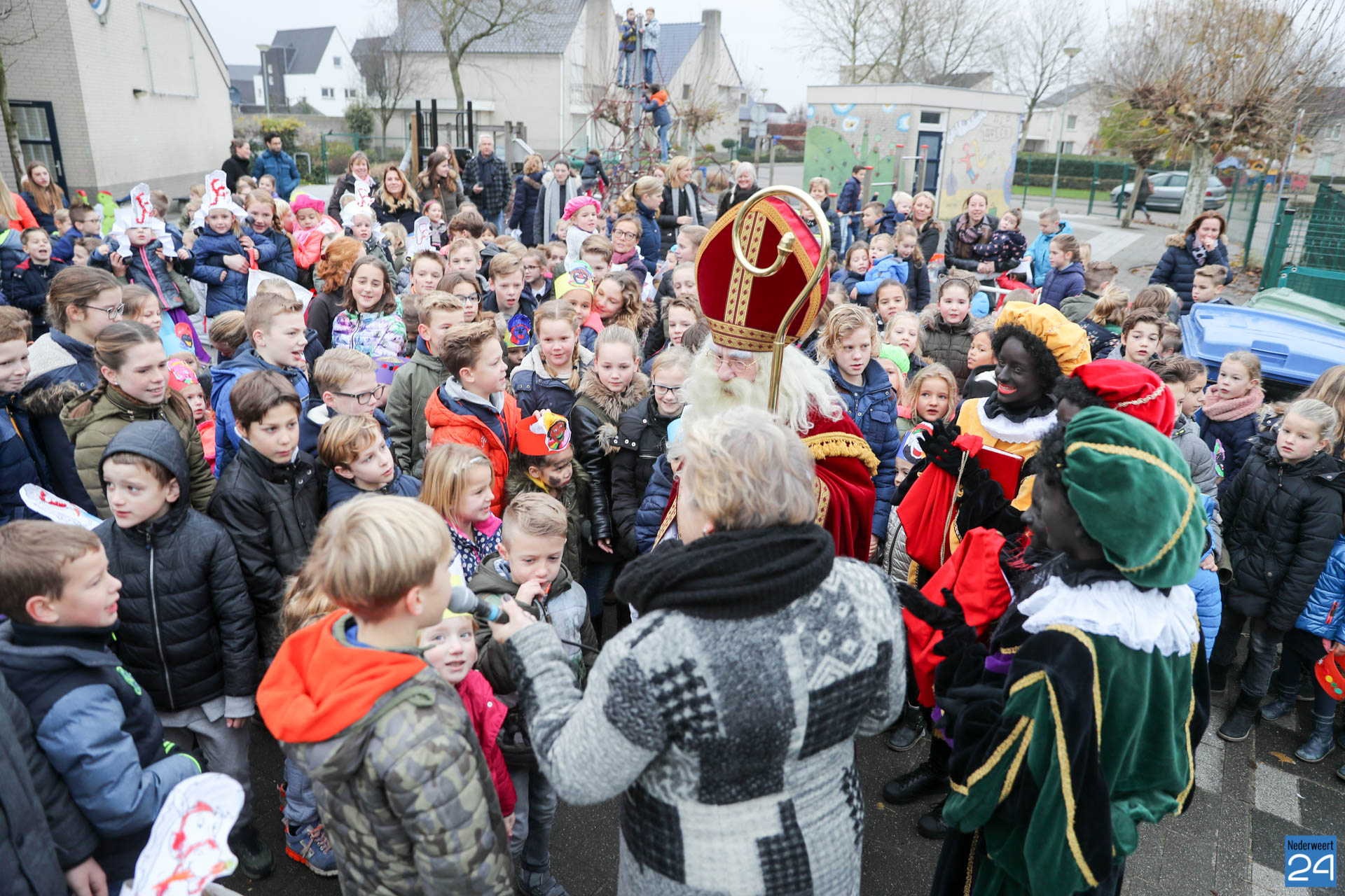 Vandaag kwam Sinterklaas op bezoek bij de kinderen van OBS de Klimop en Ik Ook in Nederweert. ’s Morgens vroeg verzamelden alle kinderen zich op de speelplaats om Sinterklaas en de pieten welkom te heten.