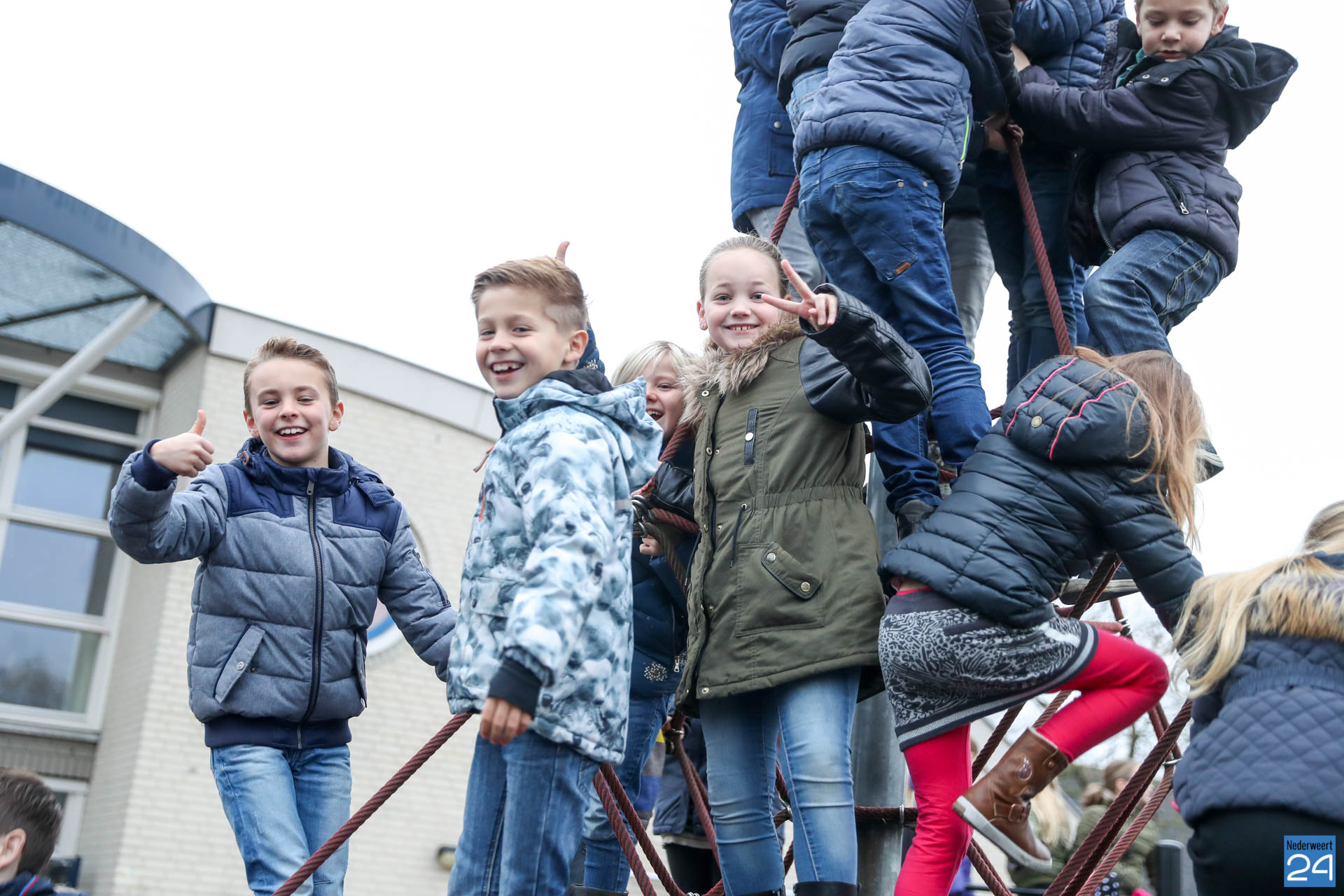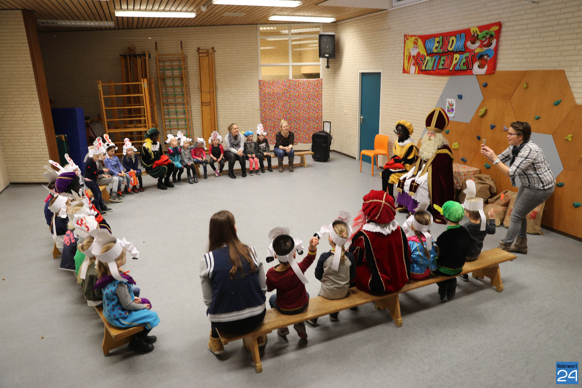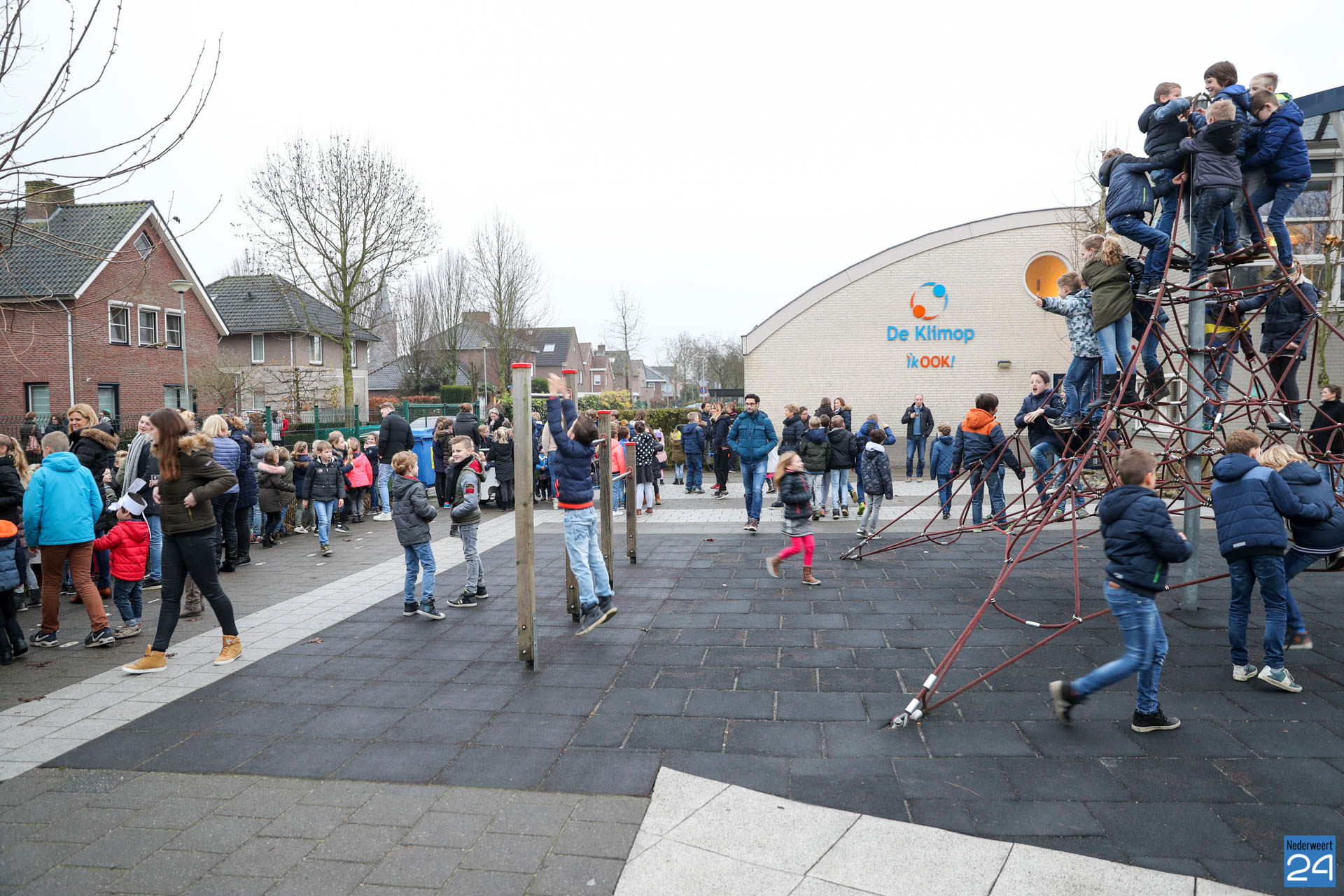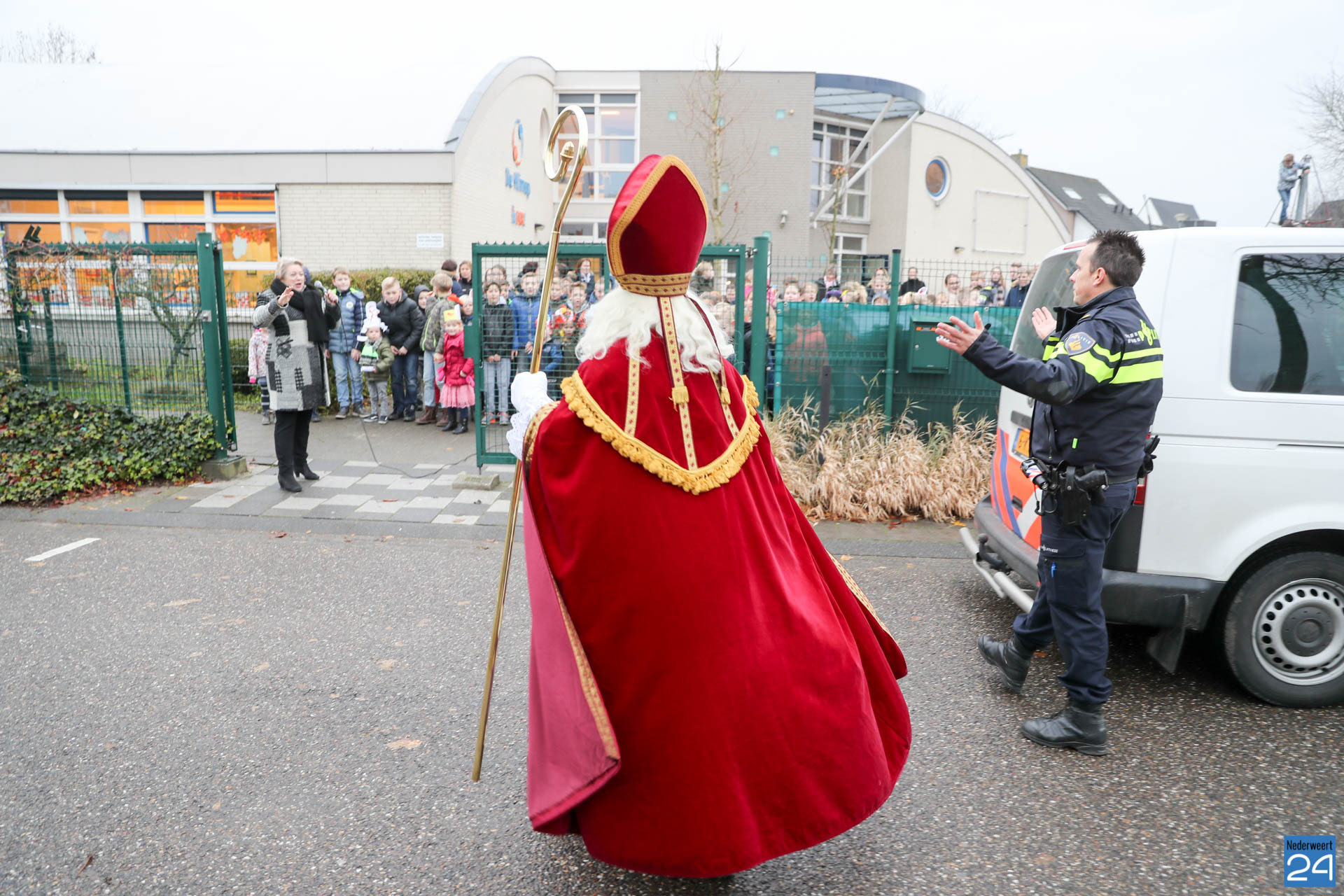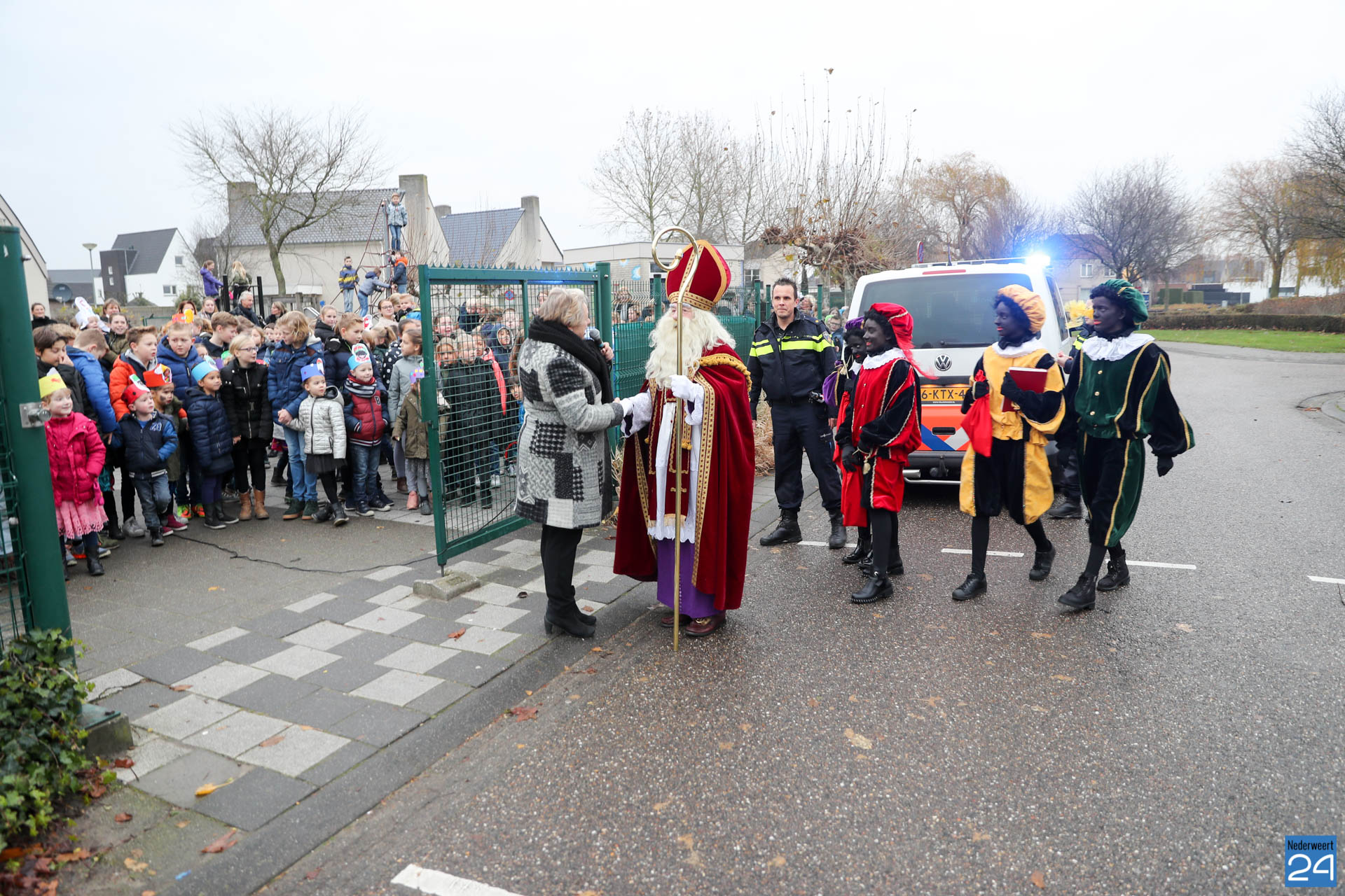 Vandaag kwam Sinterklaas op bezoek bij de kinderen van OBS de Klimop en Ik Ook in Nederweert. ’s Morgens vroeg verzamelden alle kinderen zich op de speelplaats om Sinterklaas en de pieten welkom te heten.