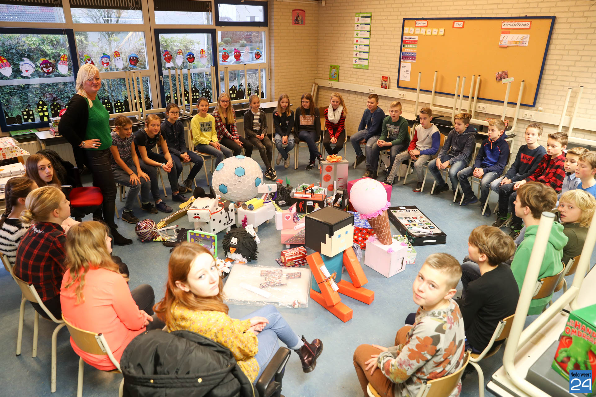 De pieten hadden een week eerder namelijk een brief achter gelaten in alle groepen waarin stond dat ze dit jaar zouden komen op een scooter onder luid getoeter. Er kwam inderdaad een scooter voorbij, maar dat was niet zwarte piet. Waar blijven ze nou toch? Uiteindelijk hoorden we niet het luid getoeter van een scooter, maar de sirene van de politie!