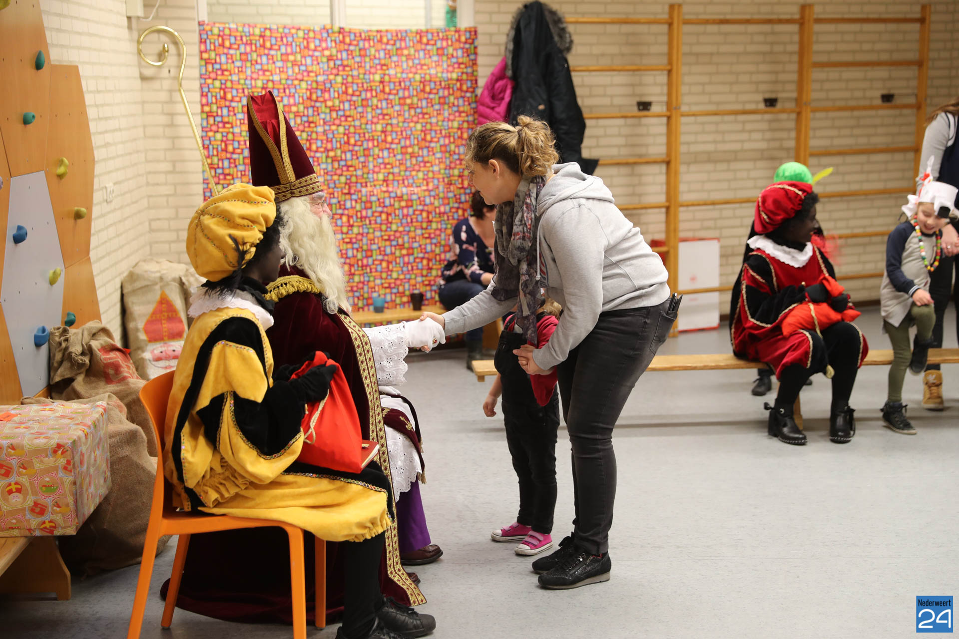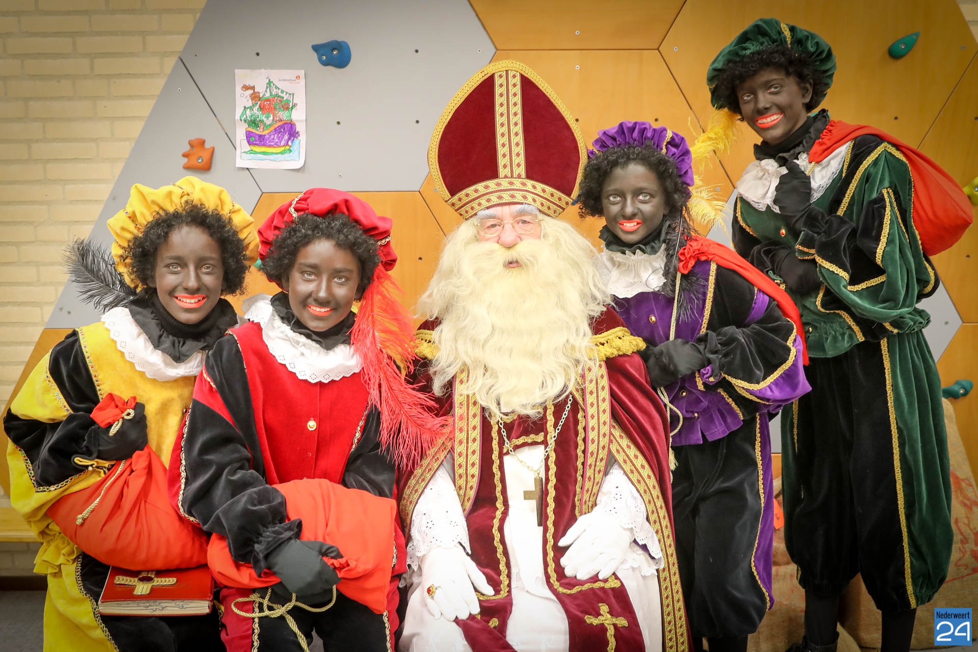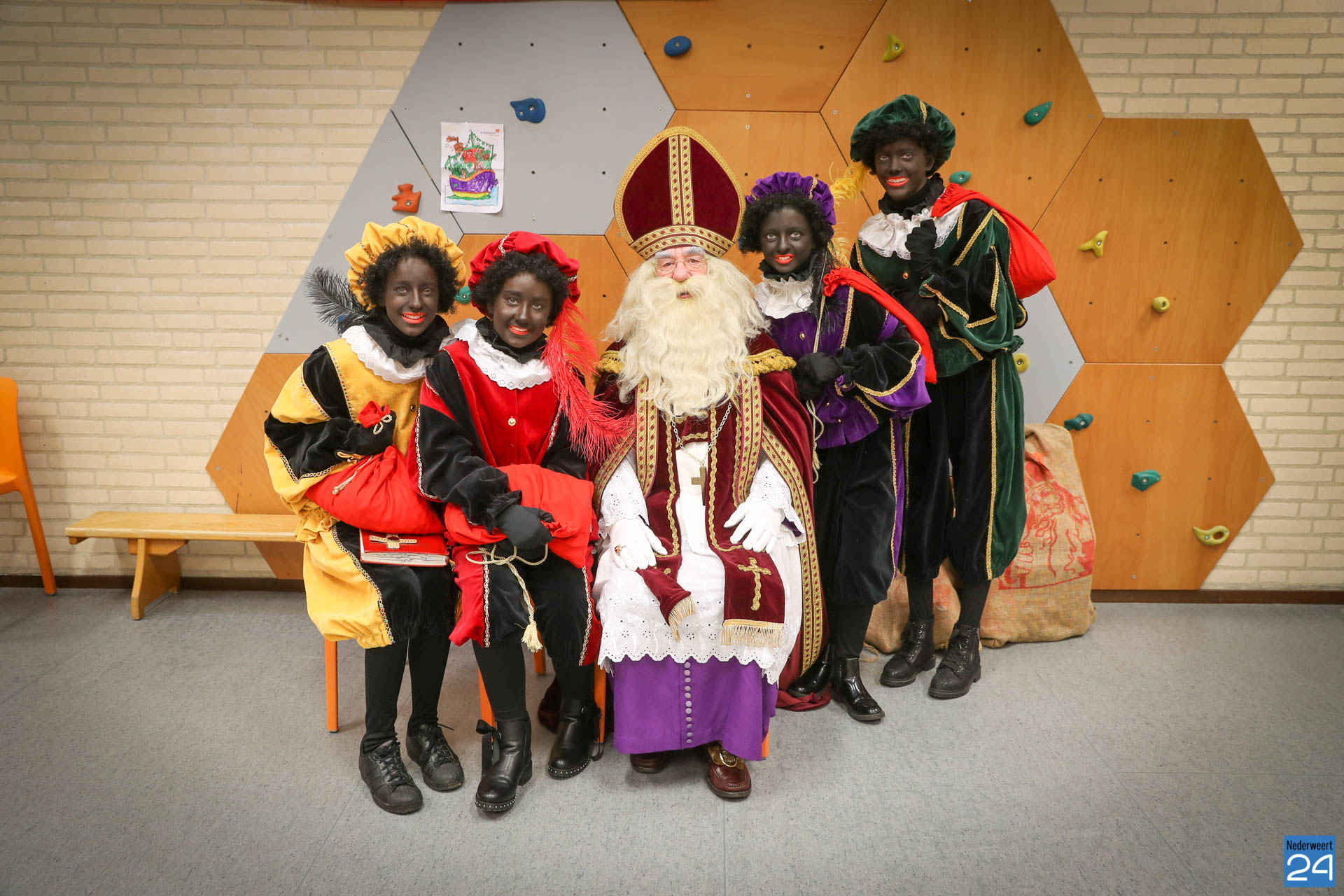 Sinterklaas en zwarte pieten bezoeken de Klimop